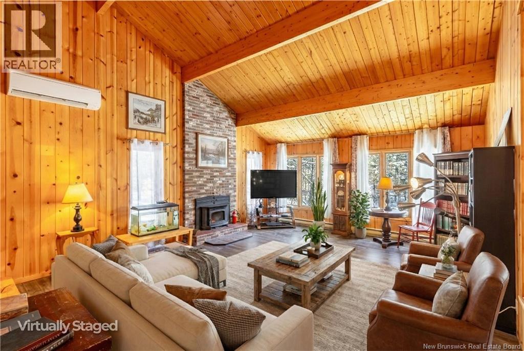 Want Privacy, double lot and lots of mature trees but conveniently located only 10-12 from uptown Shopping district? This Executive ""Heritage"" cedar home is nestled on a nearly 2 acre treed private lot with a circular driveway and an attached Double garage. This home has cathedral ceilings throughout, spacious dining room, sunken living room and a great TV/reading room, two woodstoves, perfect for enjoying on those crisp evenings or really cold nights! Ground floor has an office space and a 6x9 deck off of it to enjoy during those study or reading books breaks. The large kitchen with ample countertop space has a laundry room off to the side and a very large pantry. There is also a half bath off of the main floor/entryway to complete the main floor of the home. The upper level has a master bedroom with a complete full bath and a walk-in closet along with another full bathroom upstairs and three good sized bedrooms complete the upstairs level of this rare home. This HOME is screaming for an outdoor enthusiest to enjoy all of the homes natural wood & coziness and take in and appreciate all of the scenery and tranquility found in this beautiful area. Could this be YOU & your family! New metal roof 2 years ago and complete new paint job on outside of home 4+ years ago. Three heat pumps in total in the home to help with heating & cooling & two woodstoves. Some photos have been virtually staged. (29437460)