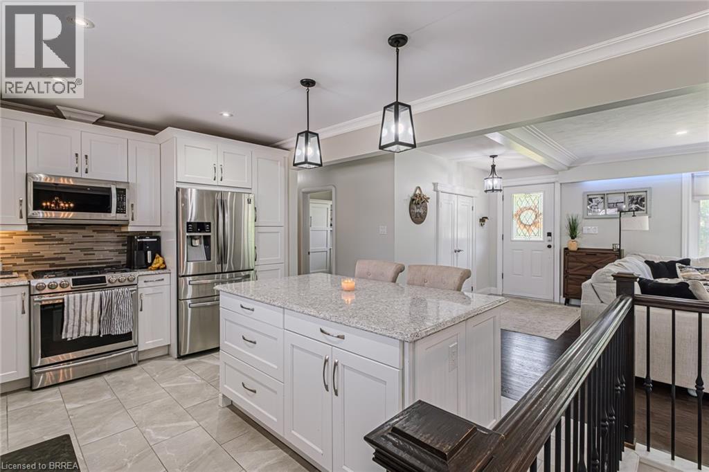 Set on nearly two acres of picturesque pastoral land, this beautifully renovated 4+1 bedroom ranch bungalow offers the perfect balance of modern luxury and serene country charm. The heart of the home is a bright, open-concept living, dining, and kitchen space and flooded with natural light. Designed for both everyday living and entertaining, this inviting area features a gourmet kitchen with a large island and generous prep space, while the stunning dual-sided fireplace creates warmth and ambiance for both the main living area and the primary suite. The redesigned primary retreat is a true sanctuary, complete with a massive walk-in closet, a spa-inspired ensuite featuring a luxurious walk-in shower, and a private walkout to the expansive deck —your own private escape at the end of the day. Three additional bedrooms are thoughtfully positioned on the opposite side of the home, offering privacy and versatility for family or guests. One bedroom features a custom-built Murphy bed, adding both style and functionality. The fully finished lower level expands the living space even further, offering a spacious recreation room, full kitchen, 3-piece bathroom, laundry room, additional bedroom, and ample storage—ideal for in-laws, extended family, or excellent rental potential. A standout feature of the property is the oversized, attached garage, offering abundant space for multiple vehicles, tools, and recreational equipment. Whether you’re a car enthusiast, hobbyist, or simply need extra storage, this garage delivers exceptional functionality with room to spare—perfectly suited for country living. Outside, experience the unmatched peace of wide-open space and lush greenery that only true country living can provide. Whether entertaining, gardening, relaxing by the pool, or taking in stunning sunsets from the rear deck, this property offers a lifestyle that’s increasingly rare—and incredibly hard to leave. (70106288)