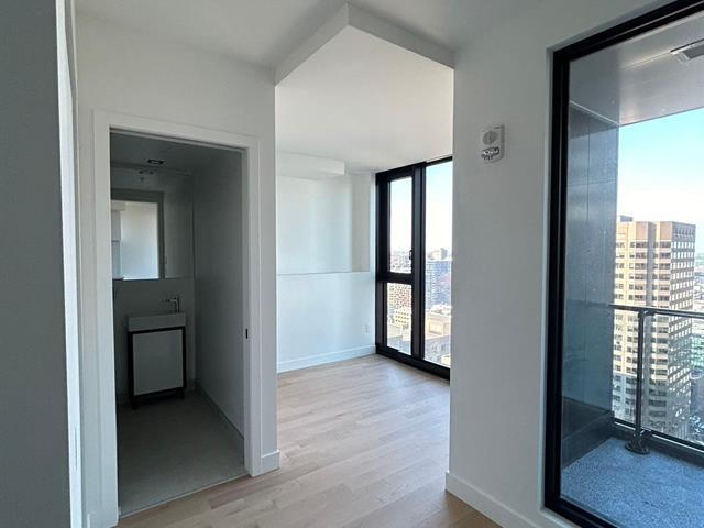 A Luxurious new sunny studio condo in the heart of Montreal Downtown Area- fascinating Maestria unit close to 31/2 in a Newly Constructed 61 Storey Twin-Tower in the cultural hub of Montreal City! Large safety pocket-window presenting panoramic view of Montreal City, Old-Port, Saint-Lawrence River, New Champlain bridge. Its dream location, at the foot of the vibrant Place des Festivals near the metro, universities, shops, REM and the underground city and Chinatown restaurants. Exclusive Access to Prestigious Common area amenities and skybridge: Discover over 40,000 sq ft of exceptional spaces designed for your well-being and entertainment. (41735325)