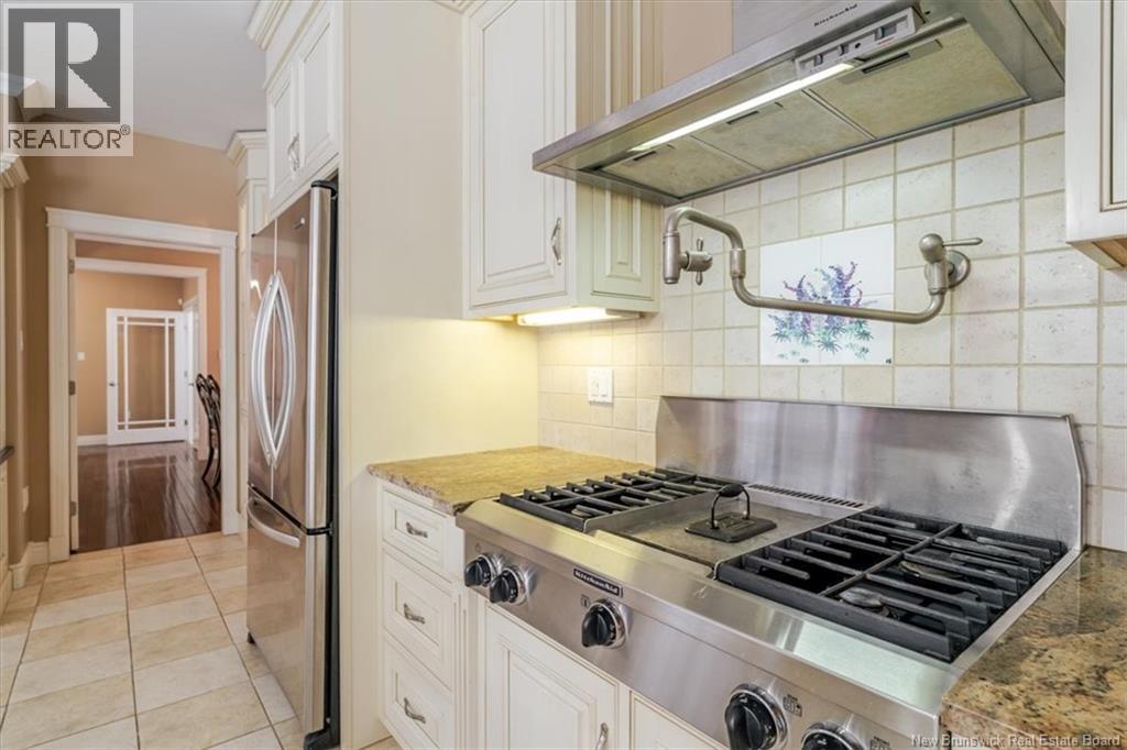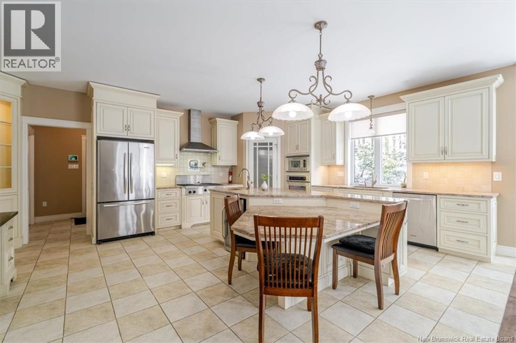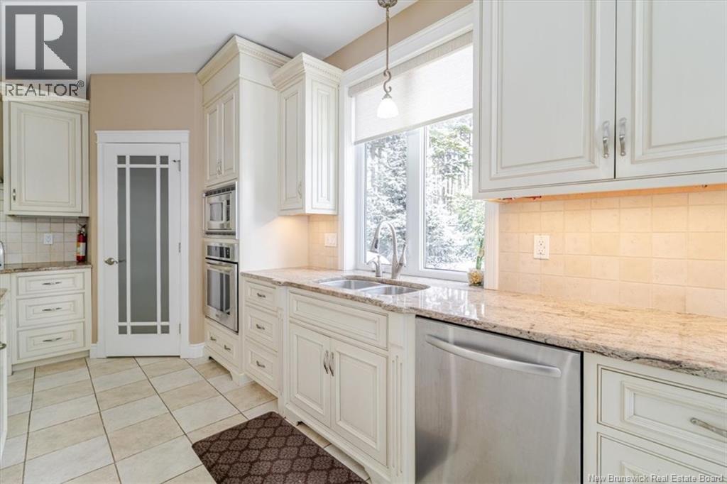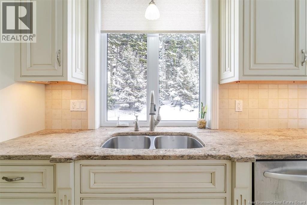 Located in the prestigious Highlands of Rothesay, 1 McMackin Lane offers refined executive living with privacy, comfort, and impressive upgrades. This elegant bungalow features a circular driveway, double garage, and bright open-concept layout centered around a striking three-sided propane fireplace. The chef-inspired kitchen boasts high-end appliances, a large island with prep sink and bar fridge, pantry, and stylish finishes, complemented by a formal dining room ideal for entertaining. The main level includes a spacious primary suite with walk-in closet and spa-like ensuite, plus a second bedroom, full bath, laundry, and mudroom. The fully finished walk-out basement adds exceptional versatility with an additional bedroom, 3Pc bath, family and rec rooms, bonus space, and ample storage. Perfect for guests or multi-generational living. Recent updates include a new roof, heat pump/motorized blinds and upgraded exterior siding. Surrounded by mature trees, the landscaped lot offers a private deck and fenced backyard. Minutes from schools, cafés, trails, and amenities. Executive living at its finest - Welcome home to 1 McMackin Lane. (29438248)