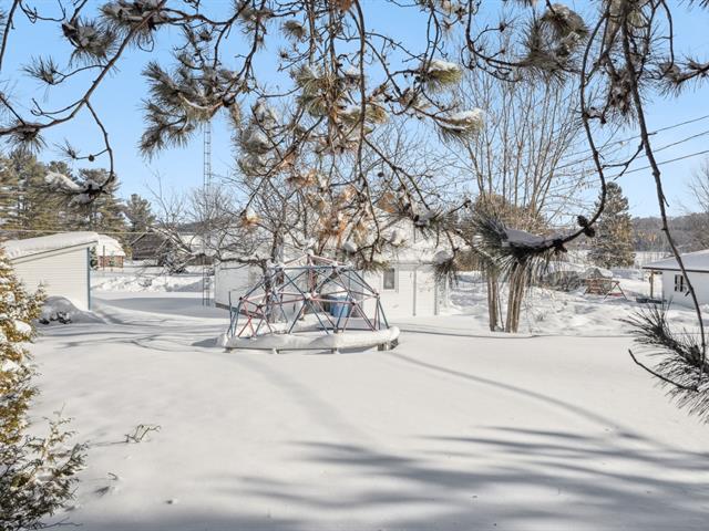 On the shores of the prestigious LAC-SIMON! Located on a large flat lot of 25,888 sqft, this 4-season country house offers the possibility of 2 bdrms, a basement with a concrete floor and a wood stove. Several activities are at your fingertips: the waterfront allows you to have your dock and boat, located in a bay, you can enjoy canoeing, kayaking or paddle boarding, you can leave the house by ATV or snowmobile... Easy access year-round, paved road, only 5 min from the village (grocery store, restaurants, gas...), 8 min from the golf course, 45 min from Tremblant and 60 min from Gatineau/Ottawa. Fiber internet (47069475)