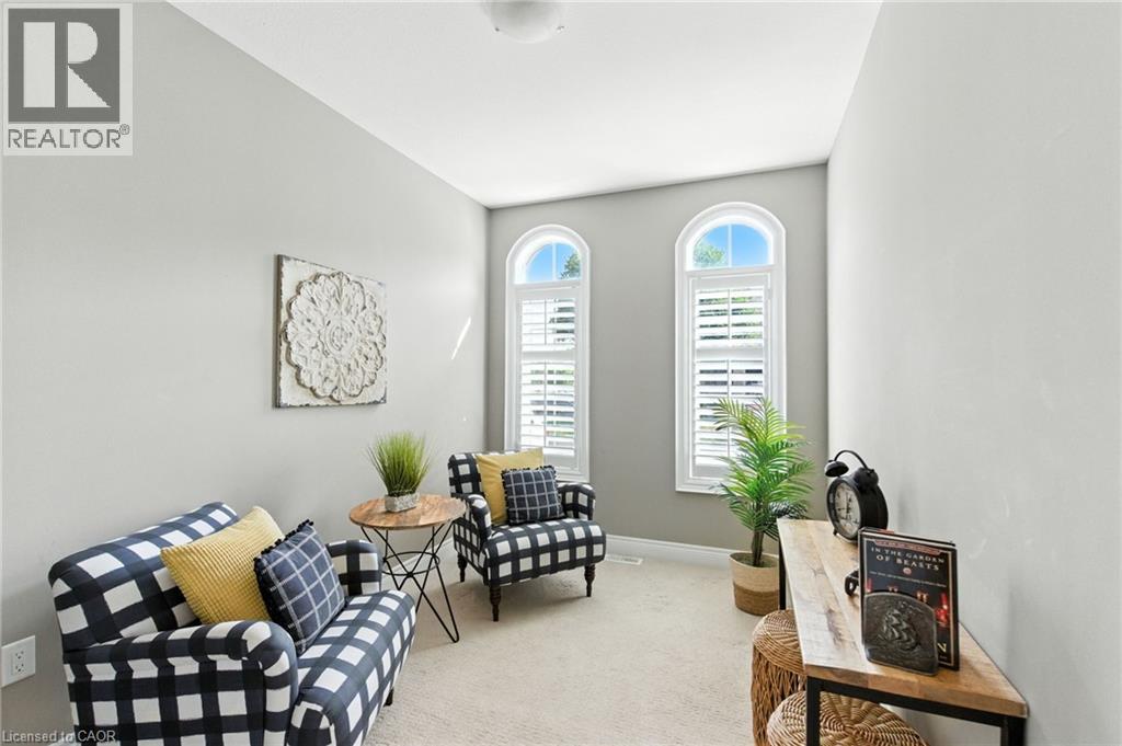 Welcome to 4 Burgundy Grove, an executive-style bungaloft designed for those looking to downsize without compromise. With exterior maintenance taken care of, you can relax and enjoy almost 1,700 sq ft of elegant living space paired with a finished lower level for added versatility. The main floor offers a thoughtful layout with a primary suite featuring two closets and a spacious five-piece ensuite, ensuring comfort and convenience. At the front of the home, a bright office/den or sitting room and a two-piece powder room create the perfect work-from-home or guest-friendly space. The open-concept kitchen, dining and living area is ideal for entertaining, flowing seamlessly onto a private patio with wrought iron fencing overlooking peaceful greenspace. Upstairs, the loft level presents a large family room and a second generously sized bedroom with its own ensuite, perfect for guests or extended family. The finished basement extends the living space with a second family room, two additional bedrooms, a full bathroom and plenty of storage. Located in Ancaster’s sought-after Meadowlands community, this home is close to shopping, dining, and everyday conveniences, with easy highway access for commuters. Don’t be TOO LATE*! *REG TM. RSA. (70107598)
