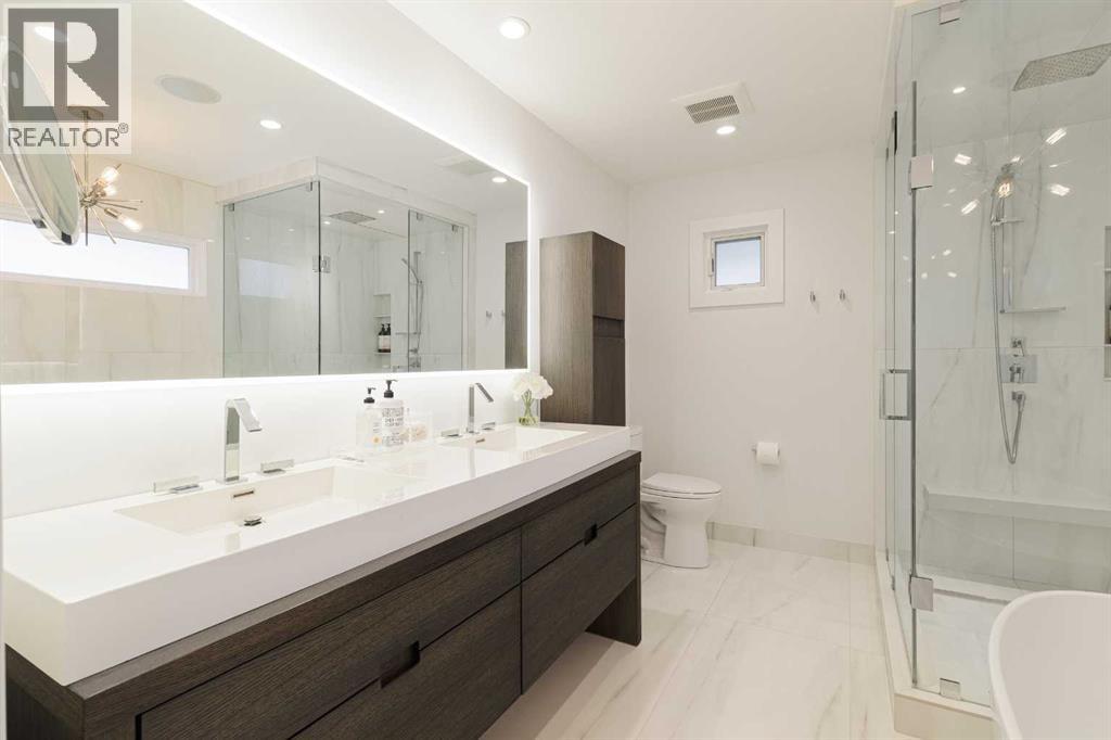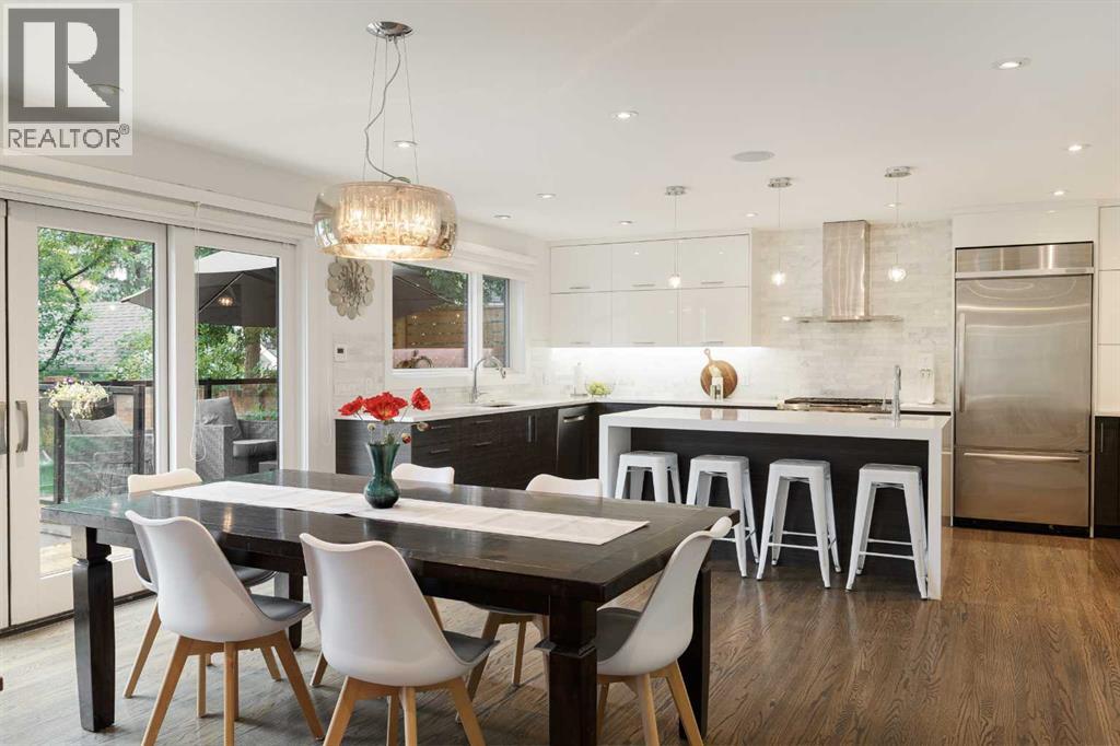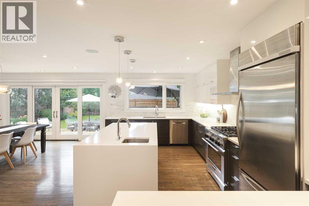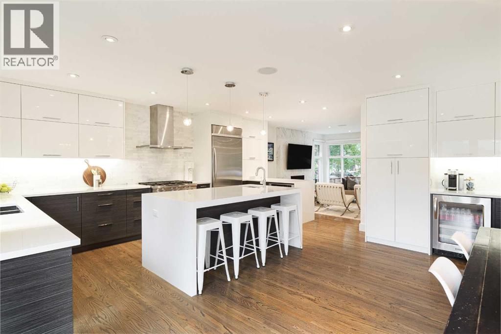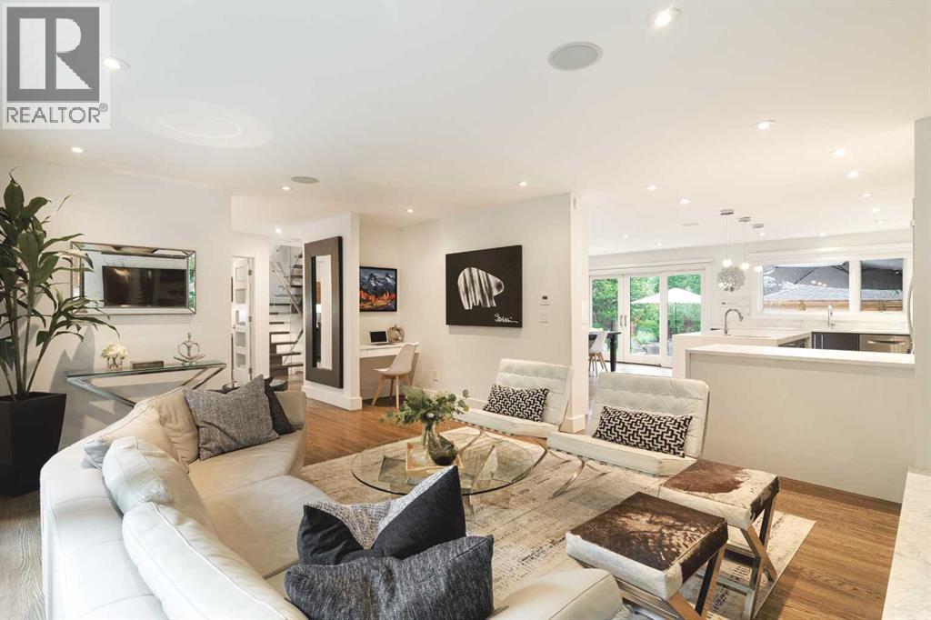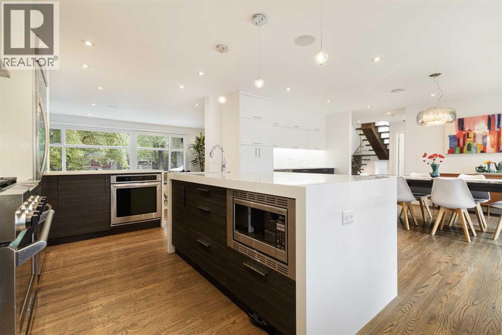 Welcome to 236 38 Avenue SW - a rare and exceptional opportunity on a 50 x 125-foot lot in prestigious East Elbow Park. Nestled on a quiet, tree-lined street just steps from the Elbow River, this beautifully renovated home offers an ideal blend of timeless elegance, modern functionality and a thoughtfully designed, family-friendly layout. Completely transformed in 2018 with a top-to-bottom renovation and offering over 3,600 sq ft of exquisitely developed living space, every detail was carefully considered to create a warm, inviting home designed for real living. One of the few homes in the area with 4 bedrooms on the upper level, this layout is perfectly suited to growing families who value both space and style. The serene primary suite spans the full width of the home and overlooks the lush, private, professionally landscaped backyard, supported by fully automated in-ground irrigation system. It features a spacious, meticulously designed walk-in closet and a spa-inspired 5-pc ensuite with heated floors.A striking, architecturally designed floating open rise glass staircase connects the levels and sets the tone for the main floor, which strikes a perfect balance between open-concept flow and defined, functional spaces. The sun-drenched front living room showcases south-facing floor to ceiling windows, gleaming hardwood floors, and an exceptional masonry wood burning fireplace. Just off the spacious front foyer - finished with heated limestone tile - is a dedicated home office with custom walnut built-ins, offering an ideal work-from-home setup. At the heart of the home, the dream kitchen and dining area are both stunning and highly functional. Highlights include a waterfall island with prep sink, a premium appliance package with a built-in counter depth fridge, 2 convection ovens and a 36” six-burner gas cooktop, and a cleverly designed 10-foot built-in sideboard offering extensive custom pantry storage, a beverage fridge, and a coffee bar. Large sliding d oors open directly onto a massive tiered back deck - perfect for entertaining or simply enjoying the outdoors while children play in the large, landscaped yard. The thoughtful floor plan continues with a 1/2 bath and an exceptional mudroom with heated limestone floors, a skylight, featuring five custom lockers, a dedicated shoe closet, and abundant smart storage, along with a separate laundry room complete with a utility sink, generous counter space, and ample room for folding, hanging, and organization. Downstairs, the fully developed basement offers a cozy family room, a 5th bedroom, a 3-pc bathroom, space for a home gym, a well-sized walk-in storage closet, and a custom workshop area - ideal for hobbies or DIY projects. Set on a beautifully landscaped lot with detached double garage, this home is just minutes from downtown and walking distance to Calgary’s most beloved amenities, including top-rated schools, scenic pathways, Stanley Park Britannia Plaza and the shops and restaurants of Mission. (31588156)