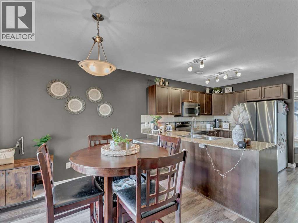 162 Northlands Point NE. Welcome to this beautifully updated 3-bedroom, 2-bathroom two-storey condo offering modern finishes, functional living, and unobstructed prairie views from your private covered deck. Thoughtfully refreshed throughout, this home is move-in ready and filled with natural light. The main floor features durable vinyl flooring and a spacious front living room, highlighted by a large window that floods the space with sunshine. The updated kitchen is both stylish and practical, showcasing upgraded cabinetry, granite countertops, and newer stainless steel appliances (2024) Flowing seamlessly into the generous dining area, this space opens directly onto your private covered deck—perfect for morning coffee, outdoor dining, or simply relaxing while enjoying the wide-open views. A 2-piece bathroom completes the main level. Upstairs, you’ll find three well-sized bedrooms, including a comfortable primary suite with a walk-in closet. A full 4-piece bathroom and the added convenience of upstairs laundry (also new 2024) make daily living easy and efficient. This unit includes two parking stalls plus additional storage located off the deck. Condo fees of $308.16/month include all utilities except electricity, offering excellent value. The furnace and central air conditioning were professionally serviced this summer, providing added peace of mind. Ideally located in a family-friendly neighbourhood close to the Big Marble Go Centre, parks, schools, shopping, and public transit, this home delivers comfort, convenience, and outstanding value in a great location. (31588308)