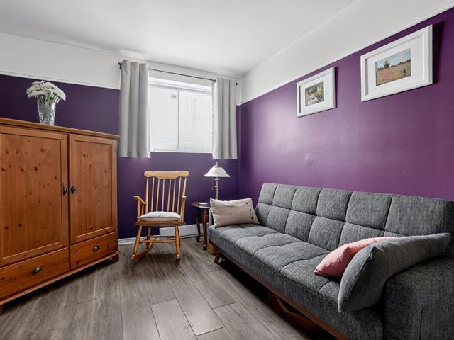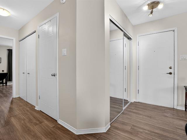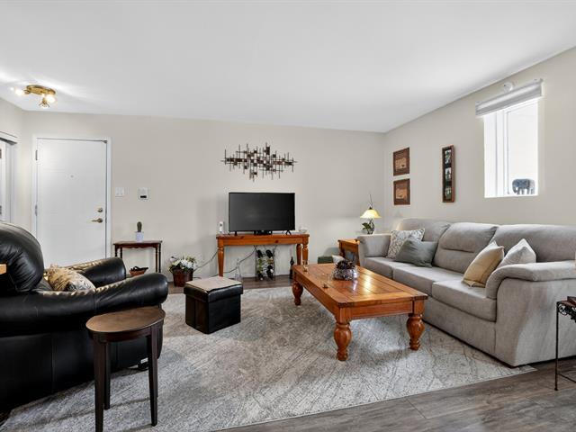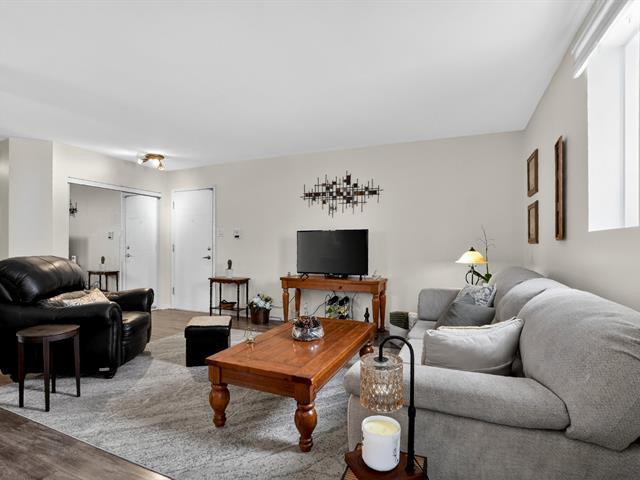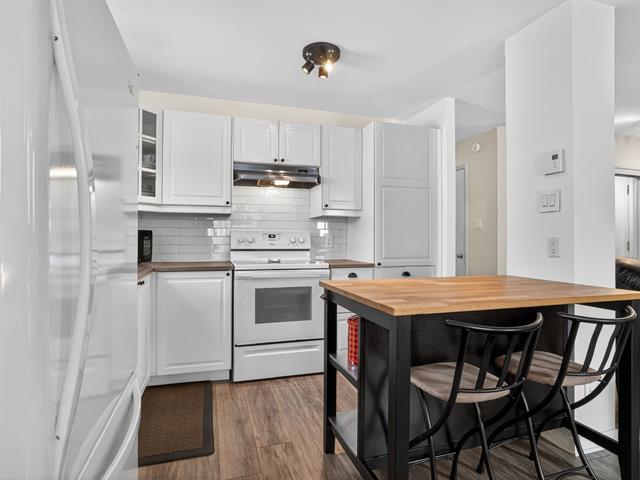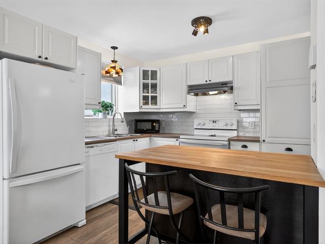 Bright, fully renovated terrasse level,corner condo,move-in ready!Located in an extremely sought-after yet peaceful area,just steps from all amenities, including the train.This ultra-spacious unit offers 924 sq. ft. of living space and features extensive upgrades throughout: renovated kitchen cabinets, countertops, backsplash, flooring, bathroom and baseboards.The Master bedroom includes a generous 7' x 5' walk-in closet.An additional outdoor parking space is available for $30/month. Exceptionally well-managed building with a strong and healthy syndicate.A rare find! (57033222)