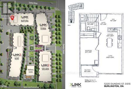 Welcome to Link Condos, ideally situated in one of Burlington's most sought-after neighbourhoods. You will love this bright and spacious 1 BR + Den unit; originally a builder model with all the bells and whistles, including built-in stainless steel appliances. A large kitchen island with quartz countertops, stunning dark hardwood flooring throughout, potlights and upgraded tile in the bathroom. The open balcony has unobstructed south/west views of Lake Ontario and the Niagara Escarpment with no one directly above, adding to the private feel, and gives tons of natural sunlight in the unit and for the exterior living space. Trails and parks at your doorstep, including amazing schools, shopping, public transit, and easy highway access. Tons of visitor parking and one owned space in the secured underground lot. An ideal location for young professionals, or if you're looking to downsize but don't want to compromise on location. The amenities include 24/7 concierge, a full gym, plus sauna, steamroom, plunge tubs, games room, and party room with full kitchen and common courtyard with BBQ. (42049050)