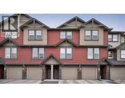 Low maintenance lifestyle living here, w/ quick access to outdoor active living. Entrance way spacious and plus amazing thick newer carpet starting on the stairs. Main floor is perfect for entertaining, being open concept, w/ an abundance of natural lighting. Cozy living room w/ large windows and electric fireplace plus brand new ceiling fan. Massive eat up island, space for all to gather around, w/ granite countertops. Modern pendulum lighting & newer luxury vinyl planking throughout this level. Convenient powder room. Dining room has plenty of space for entertaining, & an unobstructed view of the courtyard. Deck is good sized for enjoying those summer evenings. Laundry facilities are favorably located on the upper level. Master ensuite has double sinks, oversized walk in shower & walk in closet. Carpeting that is throughout is newer, lush and feels amazing on your feet. Tandem parking in this garage, plenty of storage space, plus parking on the driveway. Access to the small fenced yard from the garage. Heron's Crossing Elementary School is just a walk across the street. 60 acres of protected environmental reserve, parks, ponds, playground, bridge, plus miles of trails along Nose Creek are a stones throw away. (31588391)