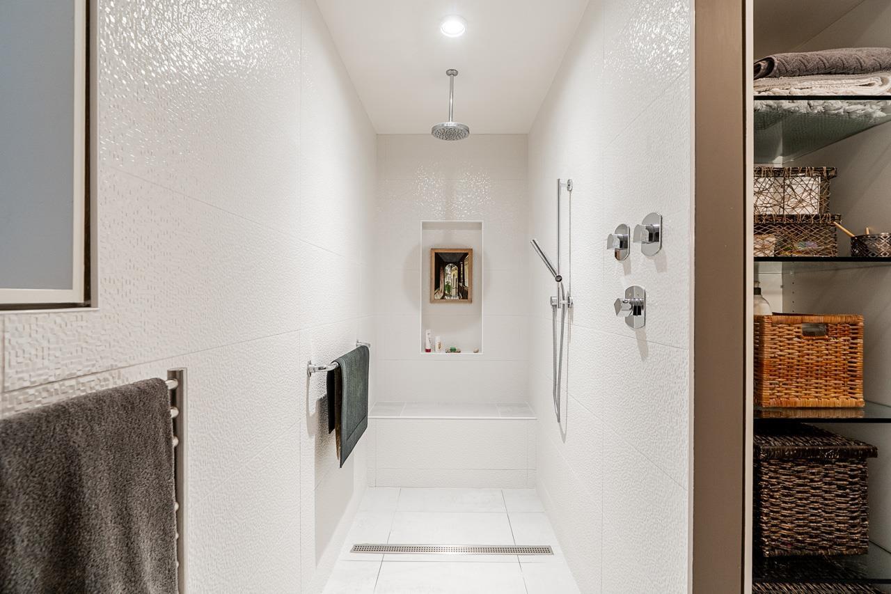 Sophisticated coastal living in custom-built executive townhouse with ocean views. Designed for elegant daily living & effortless entertaining, this 3 level home offers a private elevator & radiant floor heat. Open concept main level features hardwood floors, gas fireplace, fresh paint, powder room & covered patio ideal for sunset cocktails. Chef's kitchen showcases high end appliances, large island, spacious walk-in pantry & ample cabinetry. Ground-level offers 2nd patio plus bedroom with Murphy Bed & private en-suite. Serene Primary Suite retreat with large walk-in closet & spa-inspired en-suite with level-entry shower. 2 parking spots, EV charging, workshop & storage locker. Pets allowed. Quiet street, fenced yard, steps to Marine Dr dining, shops, White Rock Pier & Promenade. (32391373)