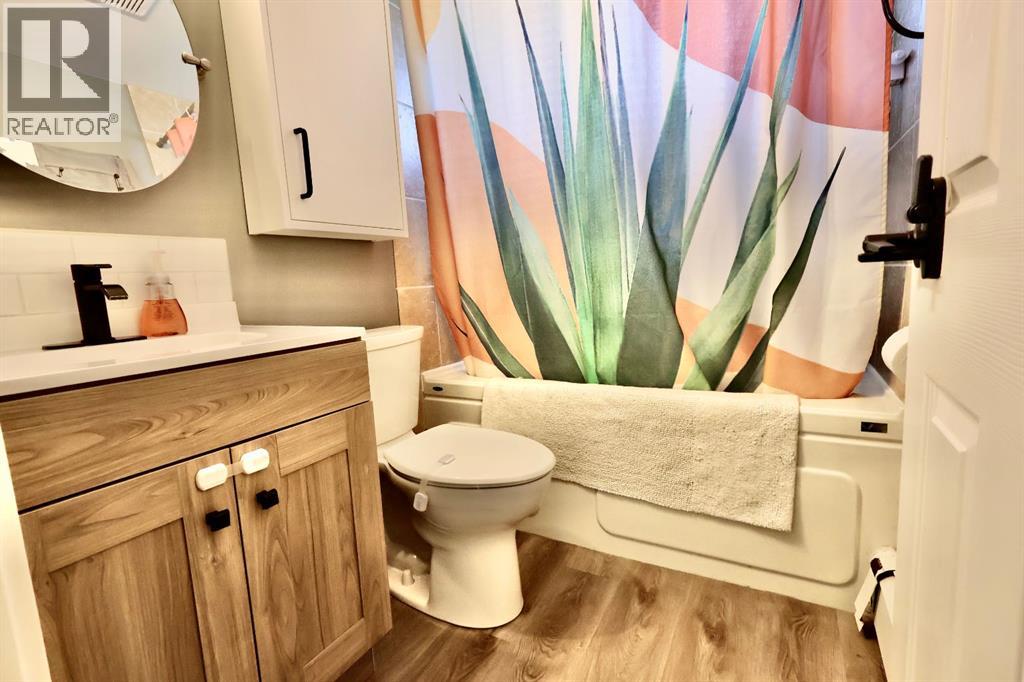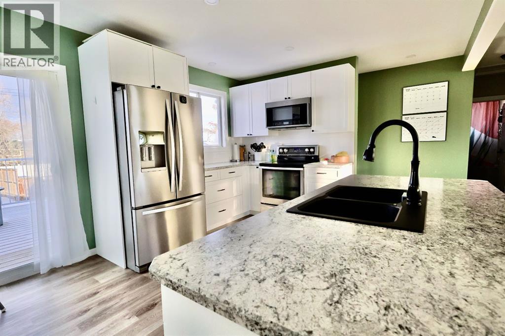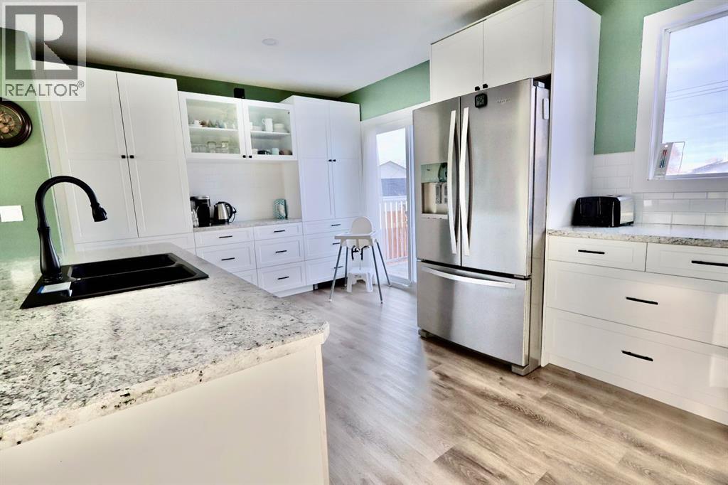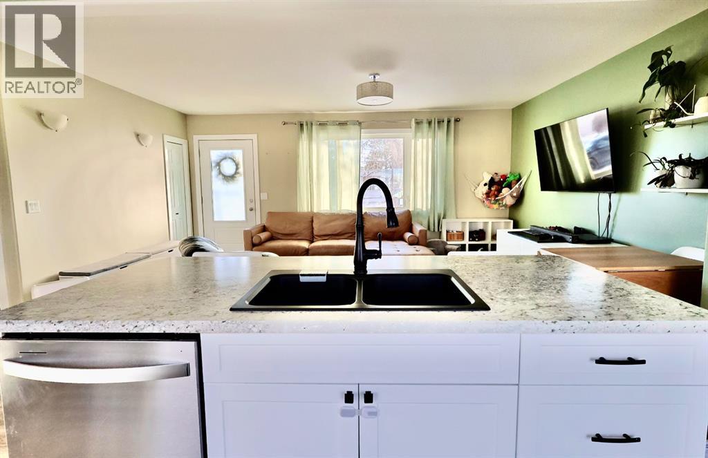 Welcome to this fresh 3 bed, 2 bath bungalow located on a family friendly street in Oyen, AB. Custom updates and well maintained, this 884 sq ft home offers comfortable living and excellent functionality.The bright, open main level features a welcoming living area with a large south facing window, filling the space with natural light. The newly renovated custom kitchen is a standout, complete with island seating, stainless steel appliances, and updated vinyl plank flooring that flows seamlessly through the main level. The main bathroom has been refreshed with a new vanity and wall mounted cabinet.Downstairs, the fully finished basement includes brand new flooring, a centralized family room, and a bonus room ideal for a home office or hobby space. You’ll also find a dedicated laundry room with under stair storage, a spacious utility room offering ample storage, and a second bathroom with a completed water main repair and added storage area.Outside, enjoy a fully fenced backyard with patio door access to the deck, perfect for entertaining with a view to the entire backyard. The deck is equipped with a gas hookup for a BBQ or fire table. The property also features a single insulated detached garage with a new garage door opener, plus additional rear parking.Additional upgrades include a boiler heating system with a new boiler (2024), an IBC 50-gallon hot water tank (2016), and an updated electrical panel (2024).Contact your local Realtor to schedule a showing today! (31589345)