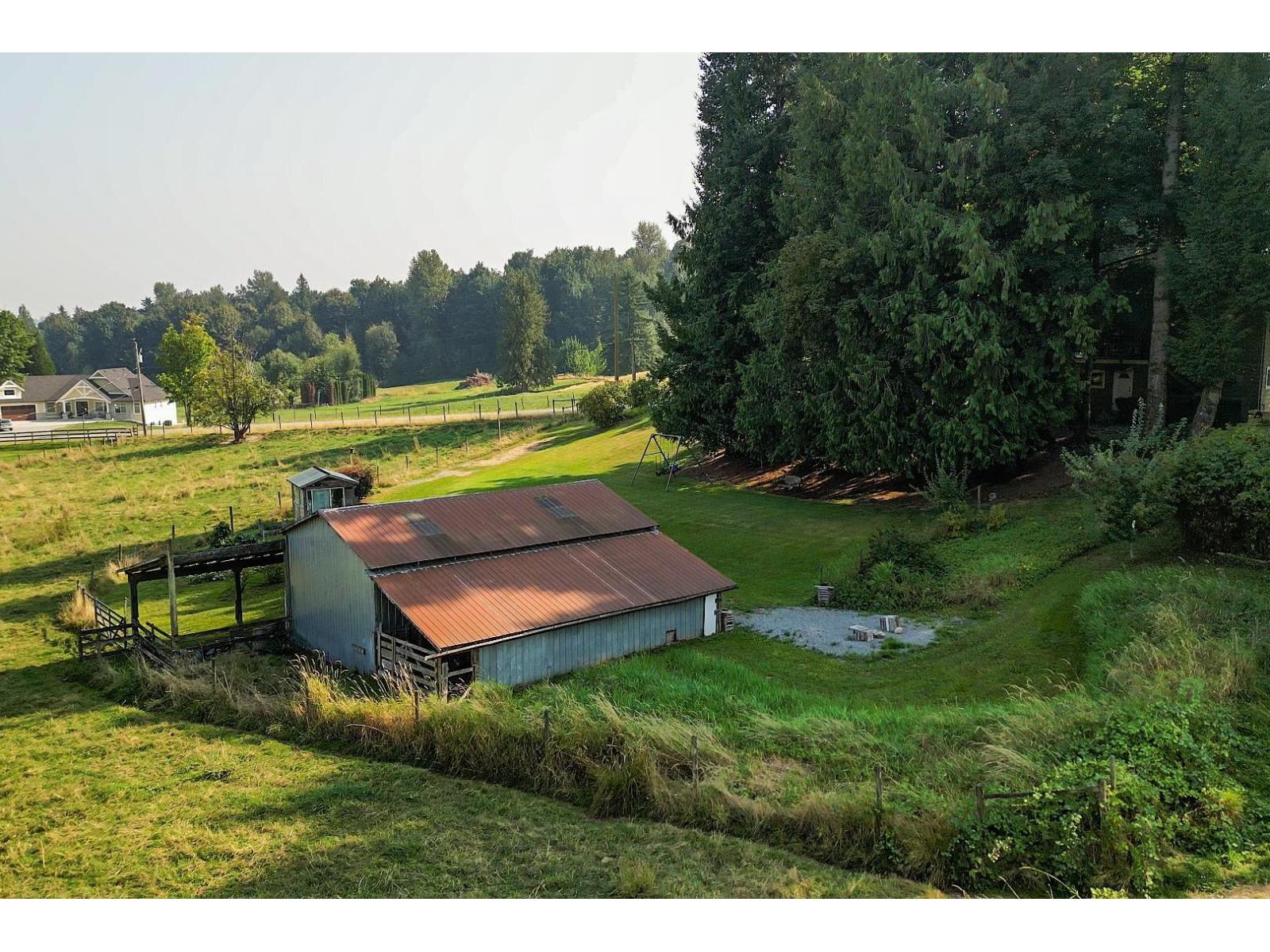 Fabulous 5- acre property on one of Bradner/Mt.Lehman's most desirable dead end streets. Just 5 minutes to Highstreet mall, this charming basement entry home features 4 bedrooms, 3 bathrooms, a spacious living room, large family room and an updated kitchen with gas range and stainless appliances. Enjoy stunning views from the wrap around deck with access from the kitchen. Cozy private deck at side yard with great firepit to enjoy on those fall evenings. Extras include a barn with twin lean-to shelters, detached storage shed and hobby greenhouse. A rare opportunity to live, invest or build your dream home on this prime location. Hay fields are fenced and could be a great home for livestock or horses. (32391442)