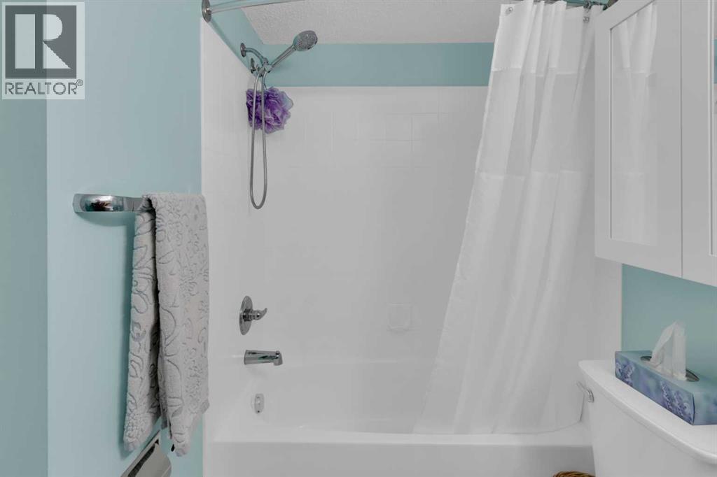 Welcome to MacKenzie Pointe, a well-maintained condo complex ideally located in the heart of Airdrie. This updated top-floor corner, 2-bedroom, 1-bathroom unit offers exceptional privacy with no neighbours above and only one shared wall. Enjoy a walkable lifestyle just steps from shopping, restaurants, health services, and the pathways and activities of Nose Creek Park. Inside, the bright corner layout creates an open, welcoming feel. The kitchen features contemporary coloured cabinetry and stainless steel appliances (2022), including a convection oven with air-fryer function, dishwasher, microwave with hood fan, and a refrigerator with bottom-drawer freezer. A farmhouse sink with pull-down faucet adds both style and everyday practicality. Recent updates include a new washer and dryer (2025), updated switch plates, upgraded lighting, and ceiling fans in both bedrooms. Foil-lined sunshades in the kitchen and living room improve year-round comfort, while mirrored closet doors enhance light and storage. The bathroom features a professionally refinished bathtub that's easier to clean. Step outside to a large two-sided balcony, perfect for relaxing or enjoying evening sunsets. The unit includes titled, heated underground parking located near the elevator, complete with a lockable storage area. Condo fees conveniently cover electricity, heat, water, sewer, and waste removal. A rare combination of location, privacy, and thoughtful updates within MacKenzie Pointe — this is condo living done right. (31589257)