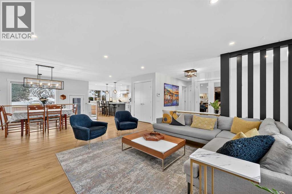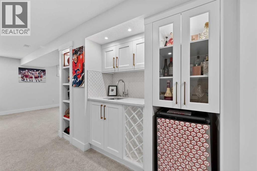 Tucked along a quiet street in the heart of Glendale, this beautifully renovated bungalow tells a story of thoughtful design, comfort, and effortless inner-city living, just minutes from Downtown, yet surrounded by one of Calgary’s most established and long-standing communities. From the moment you arrive, the modern farmhouse exterior, aggregate walkways and welcoming covered front porch set the tone. This is a home where neighbours stay, families grow, and down-sizers rediscover how easy life can be in a walkable, park-filled inner-city neighbourhood. Inside, the home unfolds into bright, open living spaces framed by large triple-pane windows and finished with durable, scratch- and waterproof LVT flooring perfect for busy family life and everyday comfort. The heart of the home is a stunning, custom-designed kitchen, anchored by a statement island, feature walls and thoughtfully built-in storage, creating a space that feels equally suited for morning coffee, family dinners and entertaining friends. The main level offers two generous bedrooms, including an oversized and private primary retreat. Here, a feature wall, patio door leading to the backyard and a spa-inspired five-piece ensuite with heated floors and a steam shower create a peaceful escape at the end of the day. Downstairs, the story continues with a fully developed lower level designed for connection and flexibility. A spacious recreation room with rough-ins for a home theatre, a stylish wet bar complete with wine cooler and wine rack, two additional bedrooms, a full bathroom and abundant storage make this level ideal for growing families, guests or multi-generational living. Every chapter of this renovation was carefully considered, with major upgrades already complete, including a new roof, furnace, hot water tank, electrical and landscaping, along with countless additional improvements throughout. And then there is the backyard, your own quiet retreat, located next to a park and within a playground zo ne. Mature trees, a large patio with gas BBQ hookup, and a double oversized detached garage create the perfect setting for summer evenings, family gatherings and relaxed weekends at home. In a community known for its long-term residents, easy access to Downtown and true inner-city convenience, this Glendale bungalow offers more than just a place to live; it offers a place to belong. Whether you are a young family putting down roots or looking to downsize without giving up space, style or location, this is a home where your next chapter can begin. (31587702)