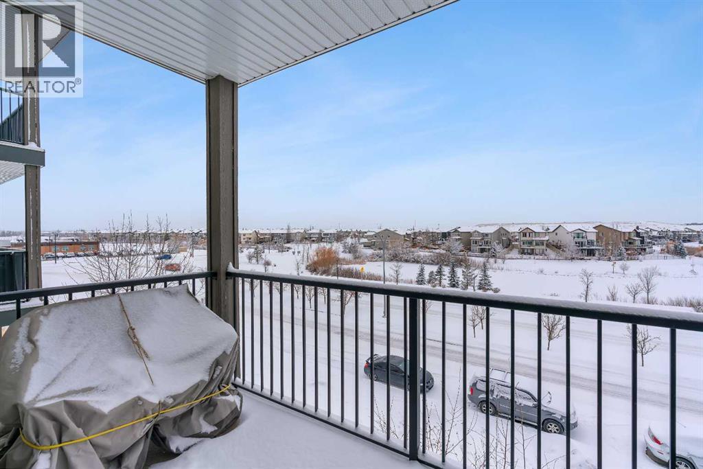 Welcome to this light-filled and beautifully designed 2-bedroom, 2-bathroom condo in the highly sought-after community of New Brighton. Offering a fantastic layout with 9-foot ceilings and triple-pane windows, this bright and airy unit is filled with natural light and designed for comfortable, modern living. The open-concept kitchen is a true standout, featuring a spacious 7-foot island with quartz countertops, stylish tile backsplash, stainless steel appliances, and ample cabinetry—perfect for cooking, entertaining, or casual dining. The kitchen flows seamlessly into the dining and living areas, creating an inviting space to relax or host guests. Step out onto your private balcony and enjoy peaceful pond and mountain views, stunning sunsets, and the convenience of a BBQ gas hookup—an ideal outdoor retreat. Inside, durable laminate flooring enhances the main living areas, while both generously sized bedrooms offer plush comfort. The primary suite is complete with twin closets and a large ensuite featuring an oversized walk-in shower. A second spacious bedroom and full bathroom make this home ideal for guests, roommates, or a home office.Additional features include in-suite laundry with full-size machines and extra storage, along with additional storage conveniently located by the heated underground parking. Central air conditioning ensures year-round comfort. Beyond the home itself, residents enjoy access to the incredible New Brighton Community Centre, which offers a waterpark, two outdoor skating rinks, and tennis/pickleball courts. Ideally located close to South Trail Crossing, South Health Campus, schools, playgrounds, and scenic walking paths, with easy access to Deerfoot and Stoney Trail, this home delivers the perfect balance of convenience, lifestyle, and community. Don’t miss your opportunity to call this beautiful home your own. Schedule your showing today! (31587188)
