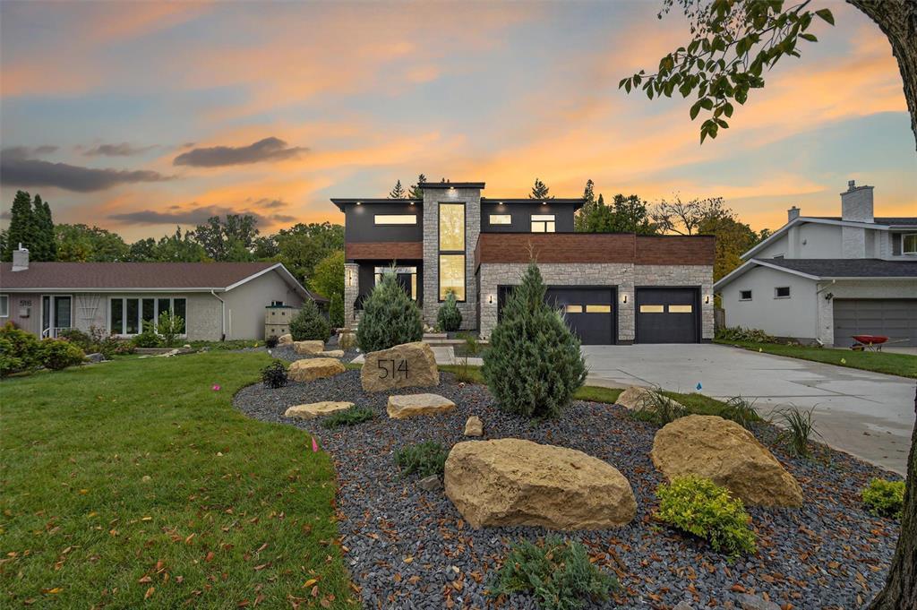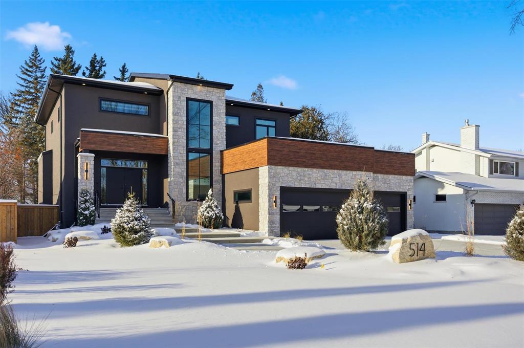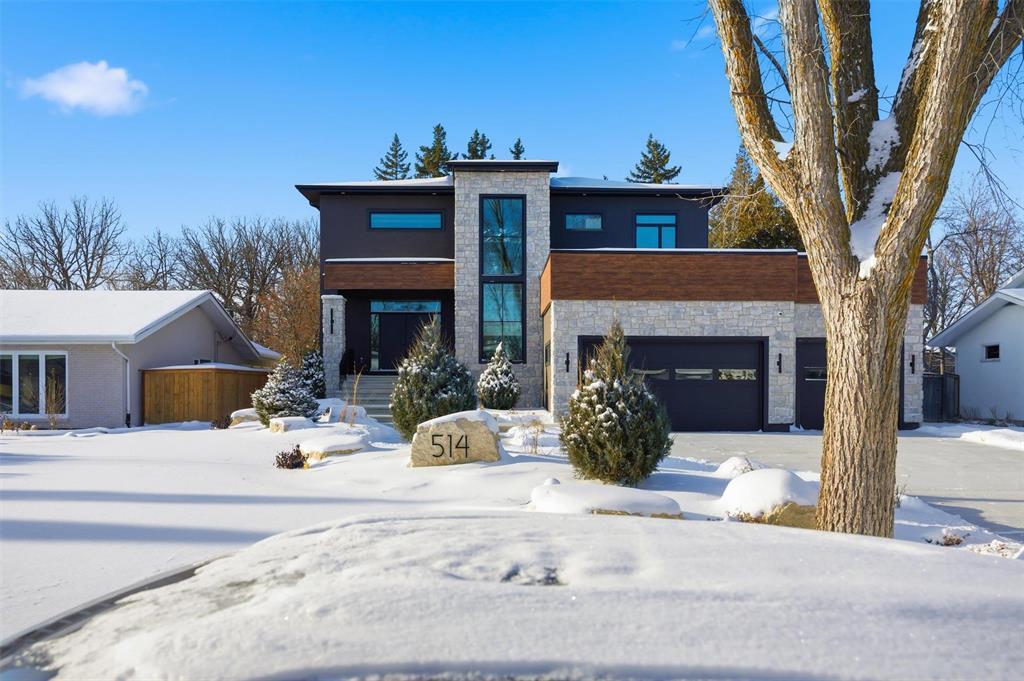 1E//Winnipeg/SHOWINGS NOW! OFFERS ANYTIME! | **PRESS LINK FOR VIRTUAL VIDEO TOUR!** | Welcome to 514 Bower in prestigious Tuxedo, a stunning 3,141 sq. ft. custom-built two-story home by KDR Homes with ZERO EXPENSES SPARED! This luxury residence features a golf simulator, fully landscaped yard, Delta-wrapped piled foundation, soaring 10 & 9 ft. ceilings, a massive 32x22 triple garage, and a wood-structural walkout basement and SO MUCH MORE. Inside, you'll find a basement bar, multiple fireplaces, custom cabinetry throughout, and so much more. Unique highlights include a see-through floor to the basement on the main level and a breathtaking open-to-above chandelier. The chef s kitchen seamlessly flows into the dining and living areas, with a butler s pantry and a gigantic mudroom for ultimate convenience. Upstairs, the primary suite boasts a spa-like ensuite, plus two additional bedrooms with walk-in closets, a kids bath, and an upper-level balcony. The walkout basement is an entertainer s dream, featuring a golf simulator, games area, rec space, bedroom, bathroom, and storage room! The peak of luxury and craftsmanship on a 75x130 lot! (231909211)
