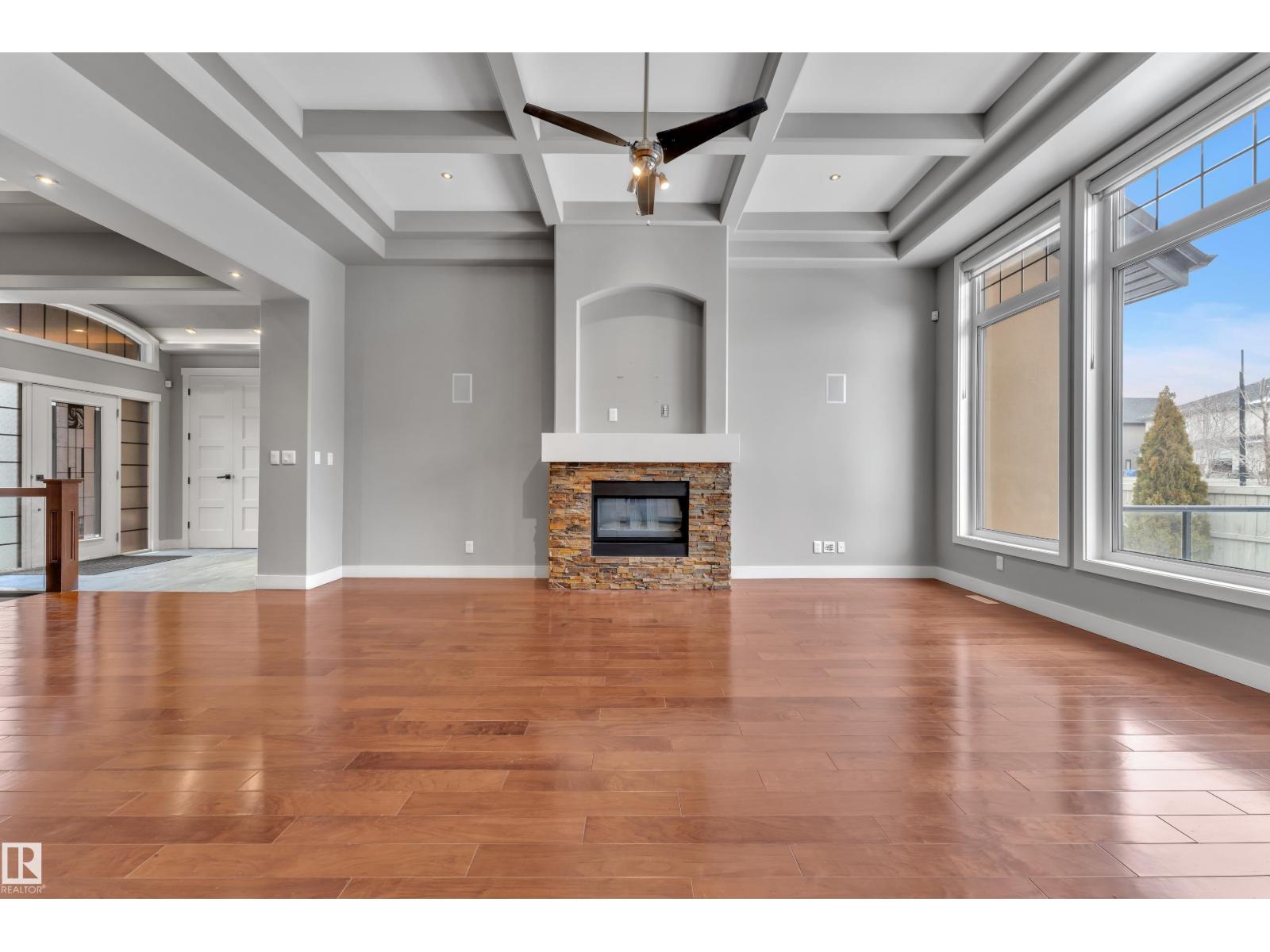 This beautifully maintained home offers 4 BEDROOMS and 3 FULL BATHROOMS with a bright, open-concept main floor featuring coffered ceilings, large windows, and a gas fireplace. The chef’s kitchen includes granite countertops, gas cooktop, walk-through pantry, and ample cabinetry, flowing into the dining area. The main floor also offers an additional bedroom and full bathroom, ideal for guests or a home office. The primary suite features a walk-in closet and a 5-piece ensuite with IN-FLOOR HEATING. The FULLY FINISHED BASEMENT includes IN-FLOOR HEATED FLOORING, LARGE REC ROOM, WET BAR, FLEX SPACE, and A THEATRE ROOM WITH PROJECTOR and SPEAKERS included, plus TWO BEDROOMS with walk-in closets and a FULL BATH. Built-in speakers throughout, central A/C, and a quiet cul-de-sac location close to schools, parks, golf, and amenities complete this exceptional home. (33779163)