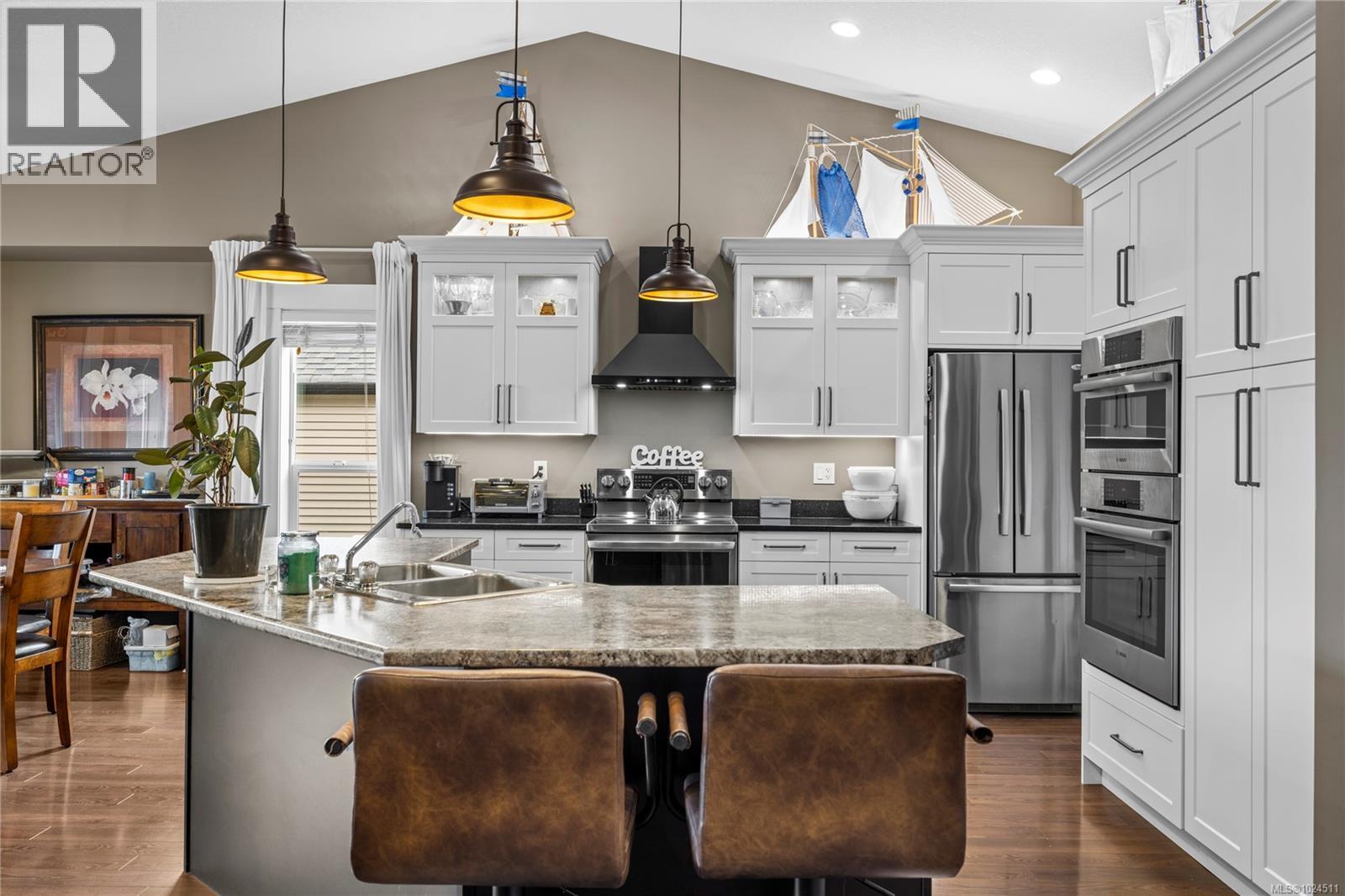 This well designed 6 bedroom, 3 bathroom Nanaimo home offers a spacious 2 bedroom suite and an excellent central location close to the university, Westwood lake, recreation and more! The upper level features a bright open plan with a generous great room, 9 ft vaulted ceilings, and a natural gas fireplace. The updated kitchen includes a functional island with eating bar and flows seamlessly into the dining area, where sliding doors open to a large covered deck ideal for indoor and outdoor entertaining. The primary suite offers a walk in closet and a skylit five piece ensuite with soaker tub and separate shower. Two additional bedrooms and a full main bath complete the main level. Downstairs includes a large rec room, fourth bedroom, full bath, and ample storage. The sellers have used this space as a successful Bed and Breakfast, bringing in additional income. With a separate entrance, the fully self contained legal 2 bedroom, 1 bathroom suite includes its own kitchen, laundry, and covered patio, perfect for extended family or rental income. Set on a 0.19 acre lot with garden space, RV parking, and a quiet cul de sac location, this home is close to Westwood and Cathers Lake trails, local parks, the harbour, and Old Town Nanaimo. For more information contact BJ Estes at 250-755-6106. (30332113)