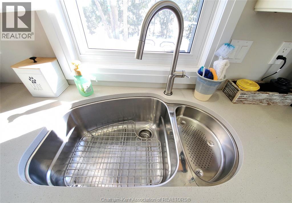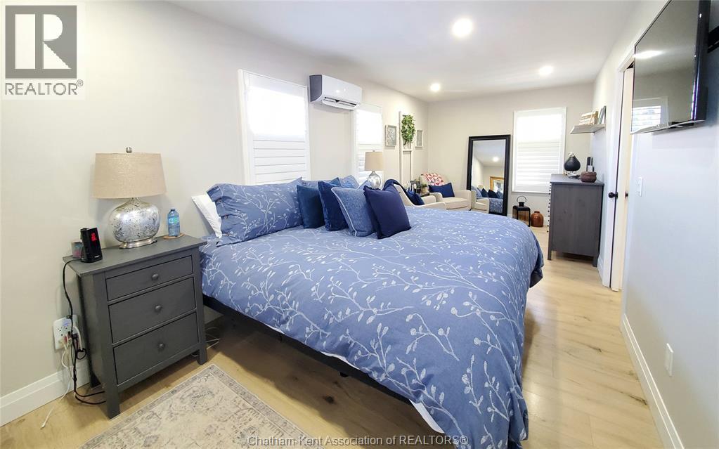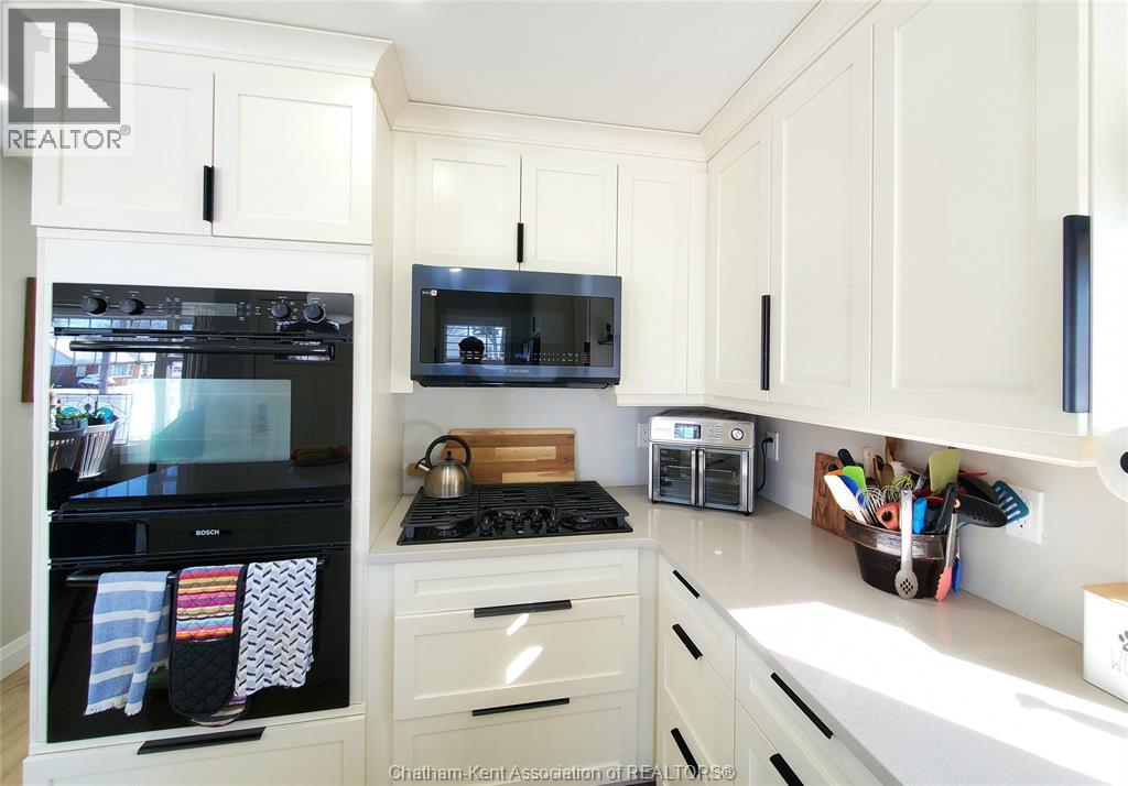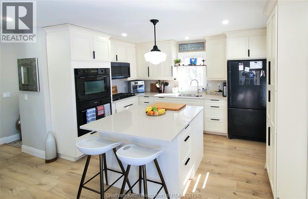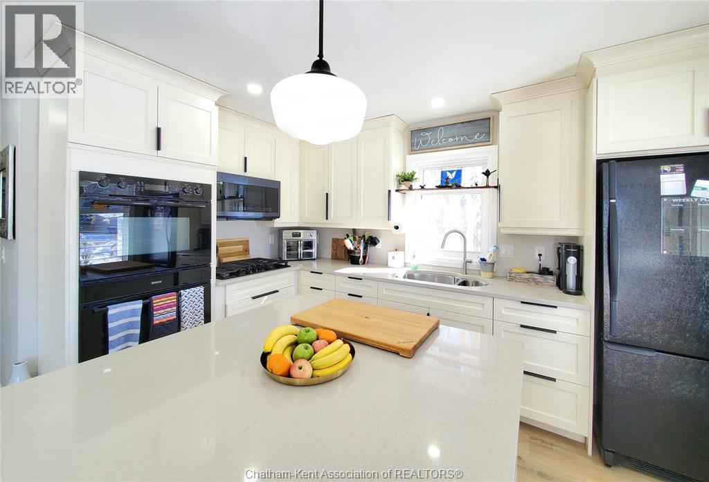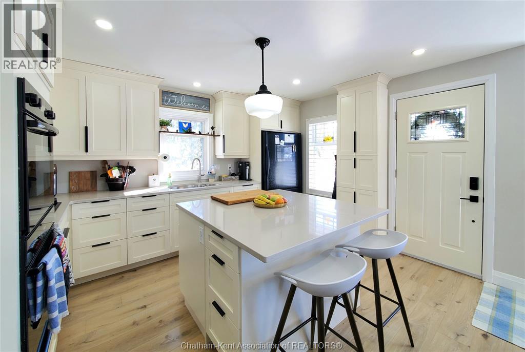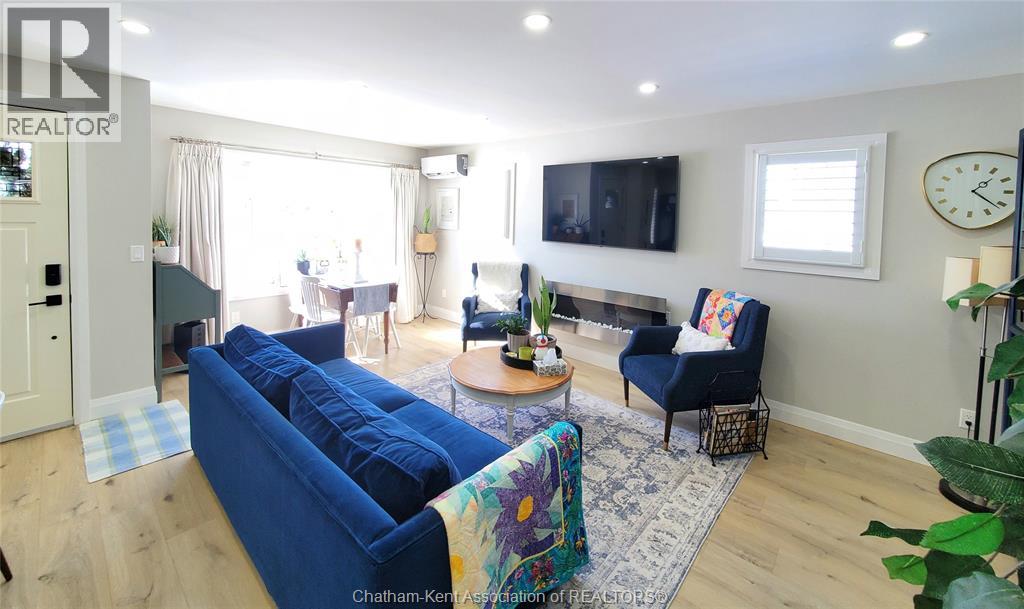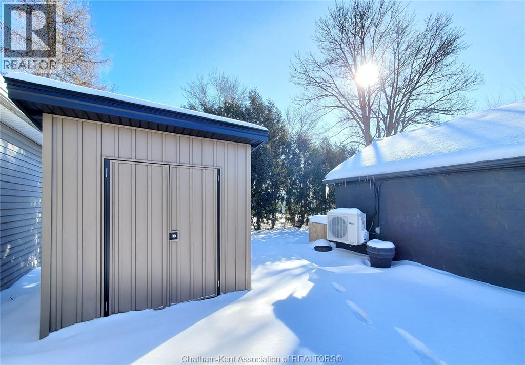 Wonderful opportunity! This beautifully renovated two-bedroom brick rancher offers convenient one-floor living with a spacious open-concept layout. The bright living room flows seamlessly into the dining area and a chef-inspired kitchen featuring two full sized ovens, a gas cooktop, built-in dishwasher, and custom cabinetry. A large principal bedroom and quality finishes throughout reflect the home’s thoughtful design, while abundant natural light adds warmth and character. The outdoor spaces are ideal for entertaining, with a pressure-treated deck offering a dedicated dining area, a relaxing hot tub, and a private backyard perfect for gatherings or quiet evenings around a campfire. A detached garage with workshop space provides added versatility. The separate studio guest suite offers excellent income or lifestyle potential, complete with a kitchenette, four-piece bathroom, independent HVAC system, and flexibility for Airbnb use, multigenerational living, or a private studio retreat. There are two driveways which offer plenty of room for additional parking or recreational vehicle parking. Energy efficiency is enhanced with new high-efficiency ductless HVAC systems. Located on a quiet dead-end street in Thamesville offering a safe, welcoming small town atmosphere and a wonderful place to call home. Don’t delay book your showing today. (55309828)