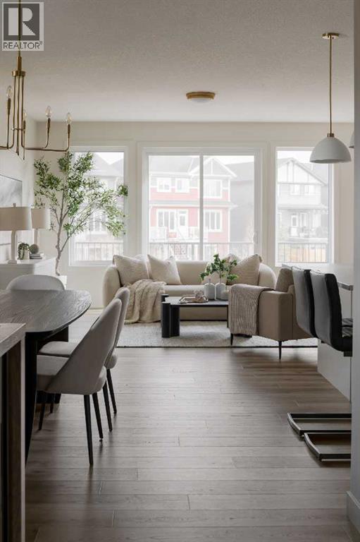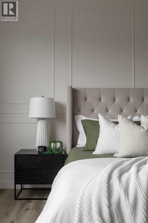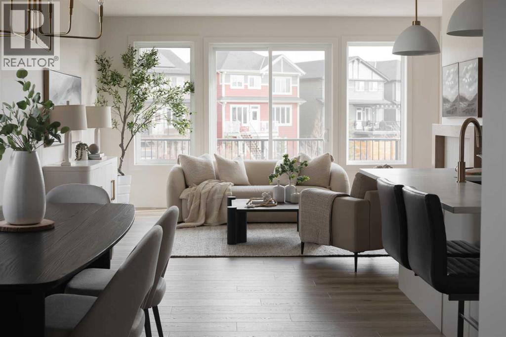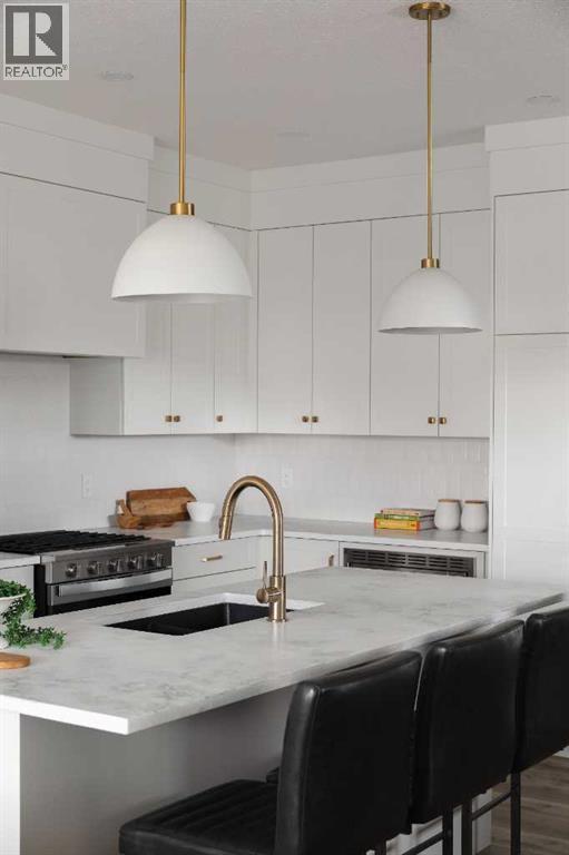 Experience the ideal mix of location, luxury, and lifestyle in this fully developed walkout bungalow in the family-friendly community of Sunset Ridge. Situated on a pie-shaped lot backing onto a green-space pathway and playground, this move-in-ready home is built by award-winning Aspen Creek Designer Homes and features the popular Ethan model. The open-concept main floor offers a beautiful kitchen with quartz countertops, large island, custom cabinetry, and stainless steel appliances, flowing into a bright living room with a cozy fireplace and access to a 17x10 deck. The primary suite is a private retreat with elegant wainscoting, soaker tub, glass shower, dual vanities, and a custom walk-in closet with direct access to the laundry room. The walkout lower level includes a spacious family/games area, wet bar, two bedrooms, 4-piece bath, and ample storage. Enjoy the east-facing, fully sodded backyard. Close to schools, parks, pathways, and minutes from downtown Cochrane and the Bow River. (31590623)