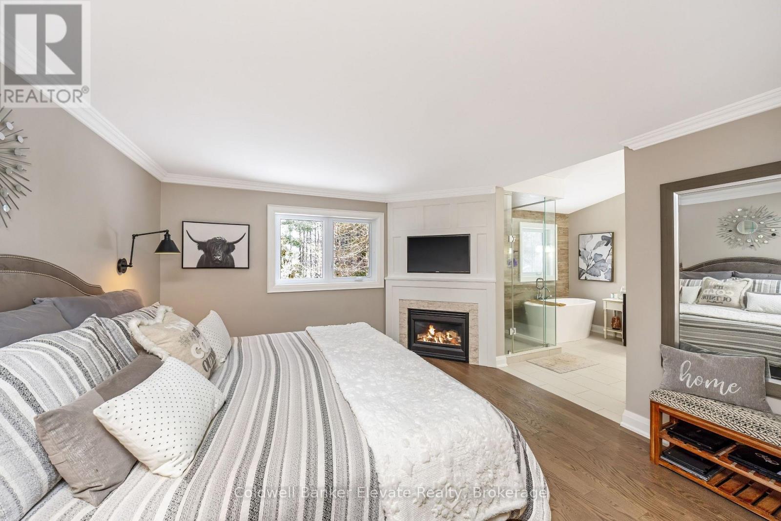 Welcome to Newman Place, a quiet cul-de-sac just minutes from downtown Georgetown, offering a stunning detached bungalow set on a private ravine lot with an inground pool. A landscaped front yard and stone walkway lead to a bright, inviting foyer highlighted by soaring ceilings, an arched transom window, and full-height sidelights. The main level features hardwood flooring throughout and a seamless open-concept layout ideal for both everyday living and entertaining. The living and dining areas are accented by crown moulding, expansive windows, and a striking feature wall with an electric fireplace. The kitchen showcases white shaker-style cabinetry, quartz countertops, tile backsplash, a centre island with breakfast bar seating, and stainless steel appliances. The adjoining breakfast area offers a walkout to a private composite deck with gas BBQ hookup and spiral staircase to pool area. Open to the kitchen, the family room impresses with vaulted shiplap ceilings, a gas fireplace, & large windows overlooking the ravine. The primary bedroom retreat features hardwood flooring, a walk-in closet with built-in shelving, a gas fireplace, and a spa-inspired five-piece ensuite complete with soaker tub, glass-enclosed shower, and double vanity. Two additional bedrooms, a four-piece family bathroom, and a convenient laundry room with garage access complete the main level. The finished lower-level walkout is designed for entertaining, featuring a movie room, office area, and a spacious recreation room with wet bar and gas fireplace. Two additional bedrooms & a four-piece bathroom provide excellent space for teens, guests, or in-law potential. Step outside to enjoy the private backyard oasis, perfect for hot summer days, complete with an interlocking stone patio, heated inground saltwater pool with waterfall, cabana, and the private ravine setting. All this close to Downtown, Farmer's Market & Park Public School with easy access to commuter routes. Don't miss out on this one! (42051958)