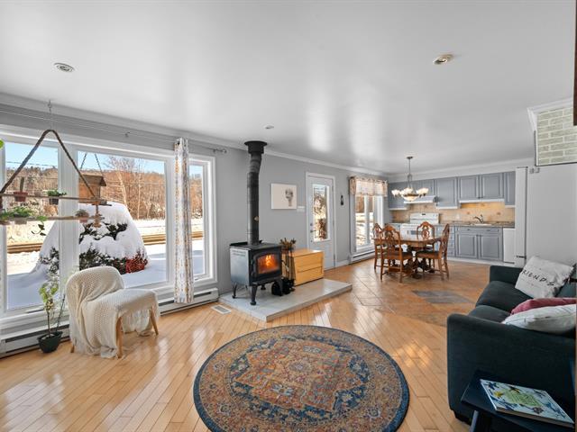 Coquette propriété impeccable et clé en main, située en pleine nature et face au lac. Elle offre une chaleureuse et lumineuse aire ouverte agrémentée d'un poêle au bois, créant une ambiance conviviale et réconfortante. La maison comprend deux chambres à coucher idéales pour une petite famille ou un couple. Une grande salle de lavage fonctionnelle avec énormément de rangement facilite le quotidien. Vous profiterez également d'un vaste garage double avec mezzanine, idéal pour le rangement de VTT, équipements et autres articles. La propriété repose sur un magnifique terrain boisé de plus de 19 000 pi², sans aucun voisin à l'arrière. (38686931)