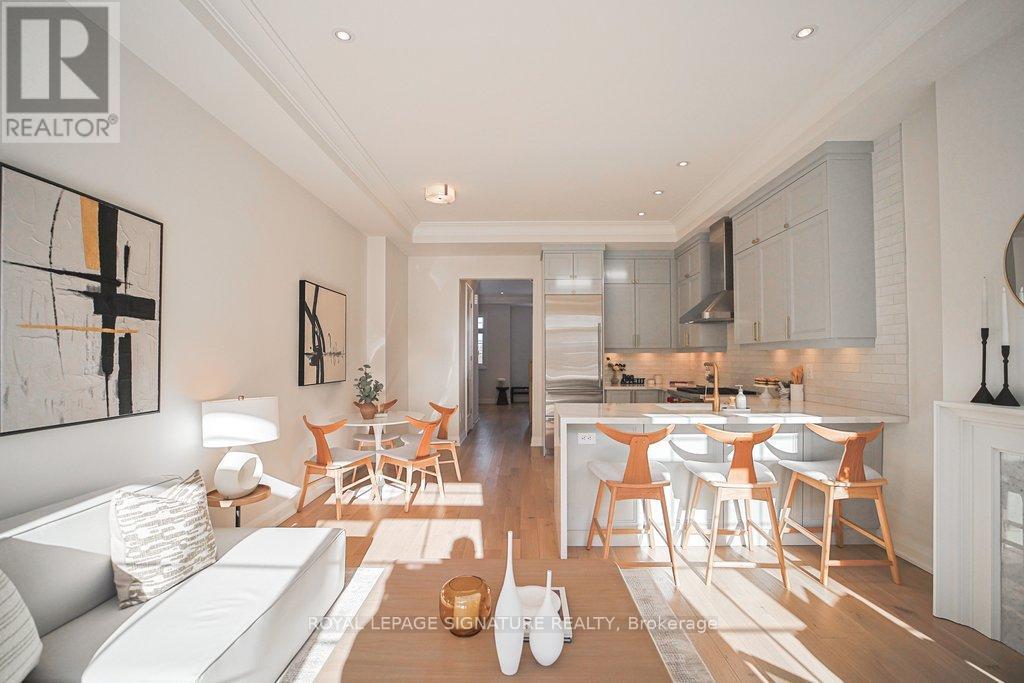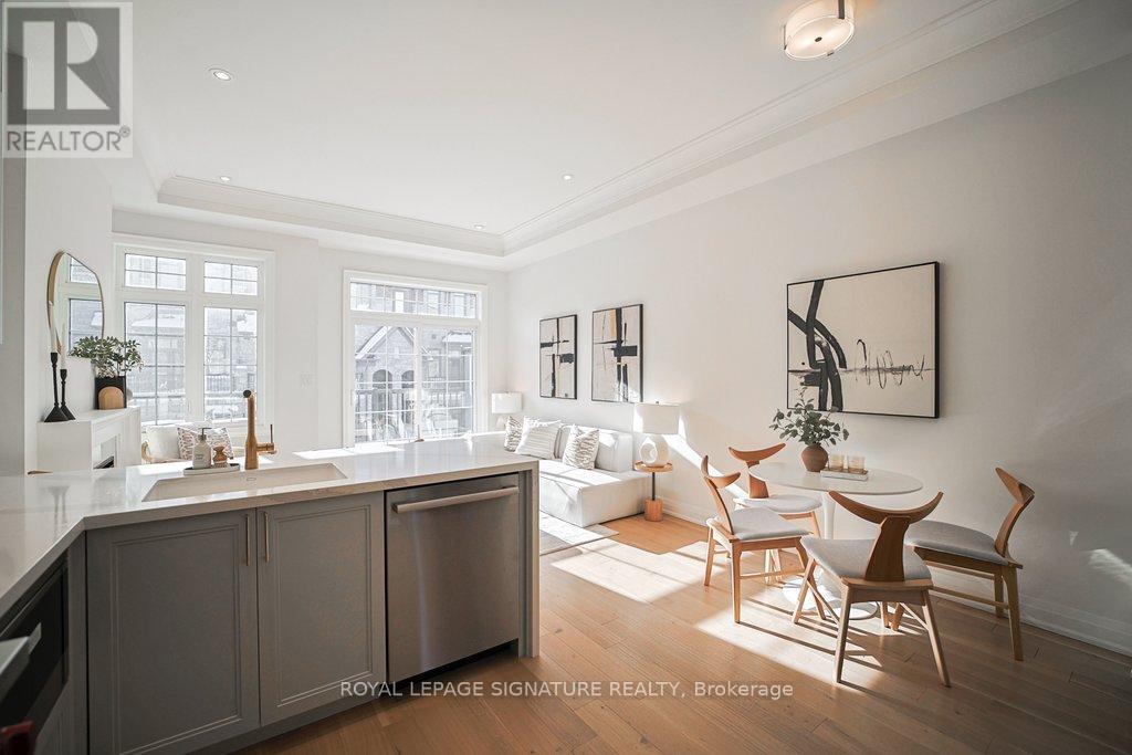 Welcome to this elegantly designed brand new 'Kylemore' town home situated the beautiful community of 'Brownstones' surrounded by forest golf course. This end unit features: 5" hardwood floors & hardwood stairs with black iron pickets and pot lights throughout. Gorgeous kitchen has pastel colored cabinets with gold hardware, subway tile backsplash, large sink with gold faucet, Sub Zero, Wolf & Bosch built in stainless steel appliances, quartz counters with waterfall feature & breakfast bar. Open concept family room features an upgraded electric fireplace and mantel, has a walk out to terrace and gas BBQ. line. Large Formal room. Extra family room/office on ground level, 3 Bedrooms, 2.5 bathrooms with upgraded tiles & faucets. Situated close to all amenities. Walking trails, Schools, Transit, Golf, Community Centre, Library, shopping & Hwy 404 (42052392)