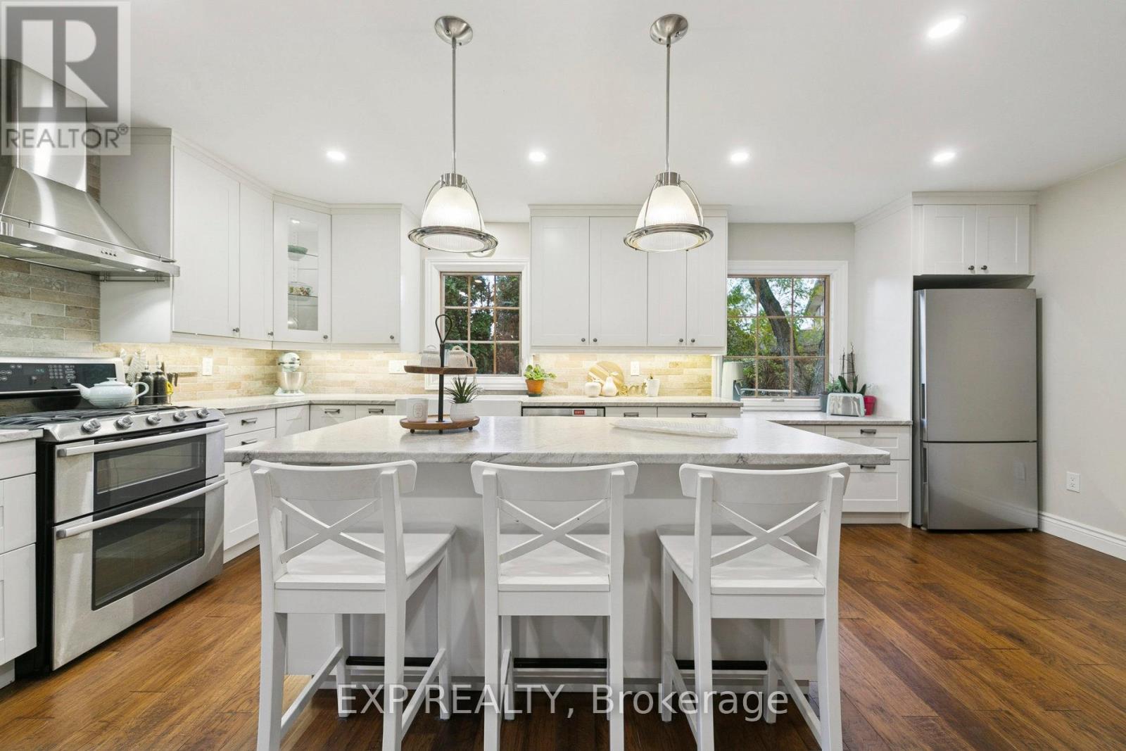 Beautifully updated home on a large corner lot in Erindale just steps from Huron Park & Erindale Park, offering bright open living spaces, 5 bedrooms, and a finished lower level with in-law potential, perfect for growing families or retirees seeking comfort and flexibility. The main floor features a sunken family room filled with natural light from a large bay window, creating a cozy and inviting space for gatherings. The updated custom kitchen was completely renovated with custom cabinetry, double oven, a gas corner fireplace, and high-end features including pot drawers, large island and undermount lighting. A bright dining area with a sun tunnel skylight and walkout to the side yard makes outdoor dining and summer BBQs effortless. Upstairs, the spacious primary bedroom includes double closet, a private 2-piece ensuite, and access to a shared 4-piece bathroom, while two additional bedrooms with hardwood flooring and large windows complete the upper level. The finished lower level offers two more bedrooms with above-grade windows, a comfortable family area with built-in shelving and wood stove, a flexible recreation space, and walk-up access to the backyard-perfect for guests or in-law suite potential. Outside, enjoy the peaceful wraparound yard with mature trees including apple tree & berry bushes, whimsical gardens, and a large concrete patio ideal for entertaining. Located in a mature, quiet community just steps from Huron Park, excellent schools, trails, recreation, and minutes from the Mississauga Hospital and major amenities. Recent updates include a kitchen renovation (2018), bathrooms (2020), and Pella windows. A wonderful opportunity to own a spacious, sun-filled home in one of Mississauga's most desirable mature family neighbourhoods. (42052536)
