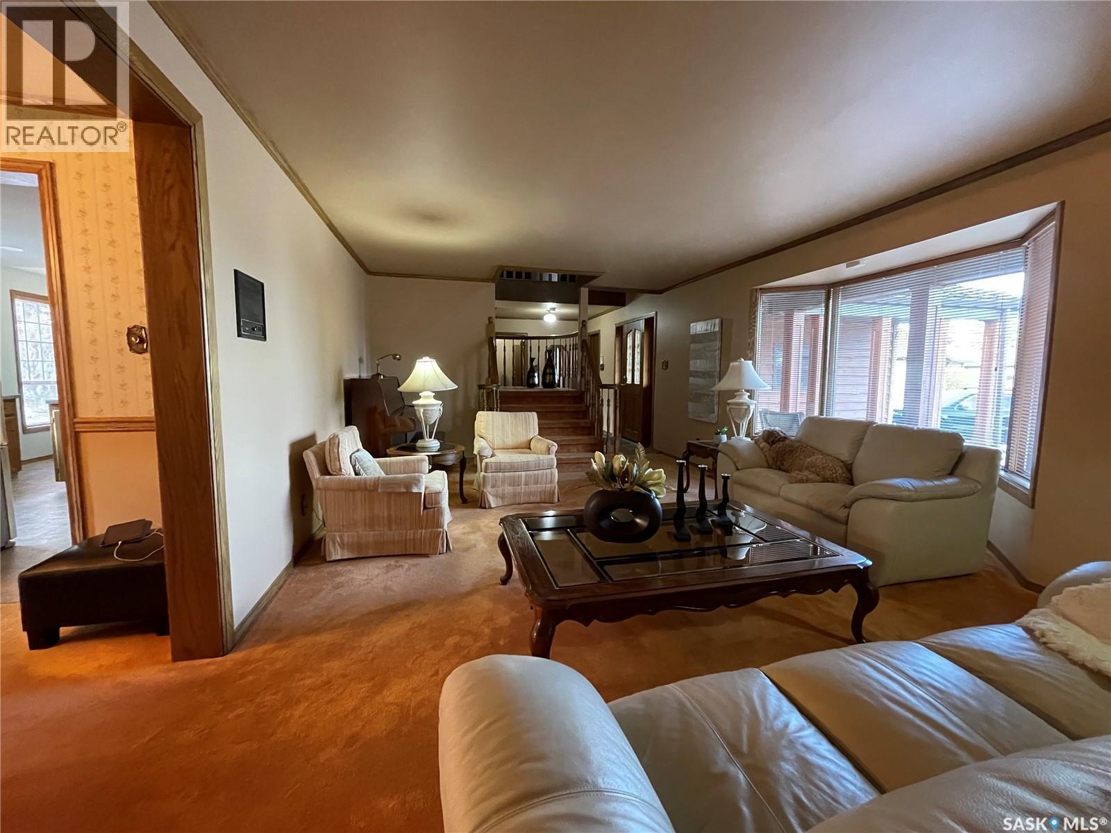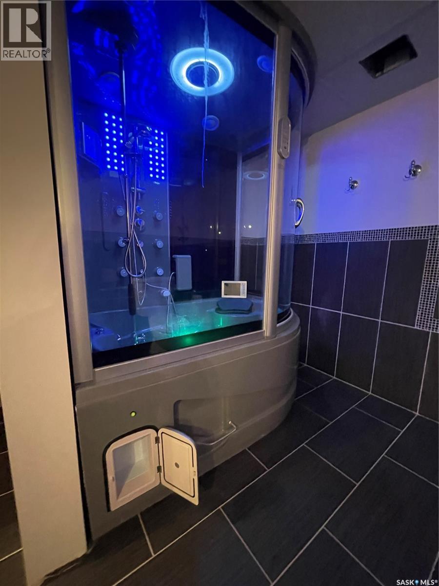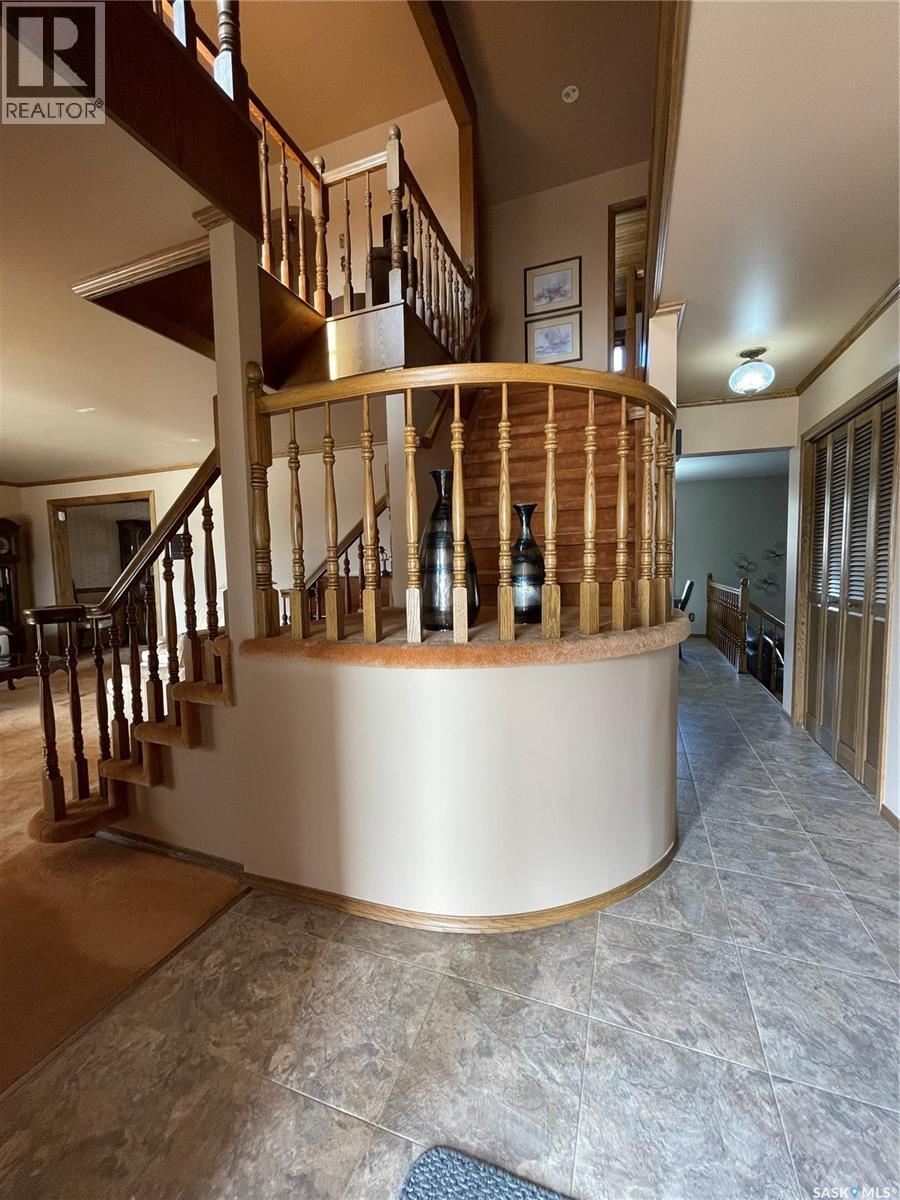 Welcome to this stunning custom-built 3000 sq ft executive 5-bedroom, 4-bathroom home, thoughtfully updated and move-in ready for its next owner. Situated on one of the largest and most beautifully landscaped lots in Yorkton—Rarely do lots like this become available, backing directly onto the natural bush with mature trees, shrubs, vibrant perennials, and gently rolling hills offering a serene, acreage-like experience. Step inside this meticulously maintained, one-owner home and immediately sense the care and attention to detail throughout. The grand staircase, highlighted by a striking chandelier, makes a memorable first impression and underscores the home’s quality craftsmanship. Off the entrance is the formal living room, while the inviting family room flows seamlessly into the spacious, open-concept kitchen—complete with updated flooring. The kitchen leads to the dining area, perfect for gatherings, and features main floor laundry in the main bathroom. Upstairs, the expansive master suite is truly one of a kind, featuring a custom-made cedar ceiling, cozy gas fireplace, a generous dressing room and spacious ensuite. The upstairs den offers an ideal space for a home office or library, and all four additional bedrooms are spacious and comfortable. Most windows on both the second and main floors have been updated for modern comfort. The second floor is equipped with electric heat and a built-in wall air conditioner, installed in 2021. The basement features an impressive spa bathroom, complete with an infrared sauna, a spa shower with jacuzzi, and a steam shower outfitted with its own sound system, TV, and built-in refrigerator—a perfect space to unwind. The rec room can also be developed into a home theatre, making it ideal for entertaining. Additional updates include a GEN-TRAN Generator panel and hot tub wiring on the concrete pad off the deck. The garage floor has new epoxy flooring. This exceptional family home is truly one of a kind and will not disappoint! (29336125)