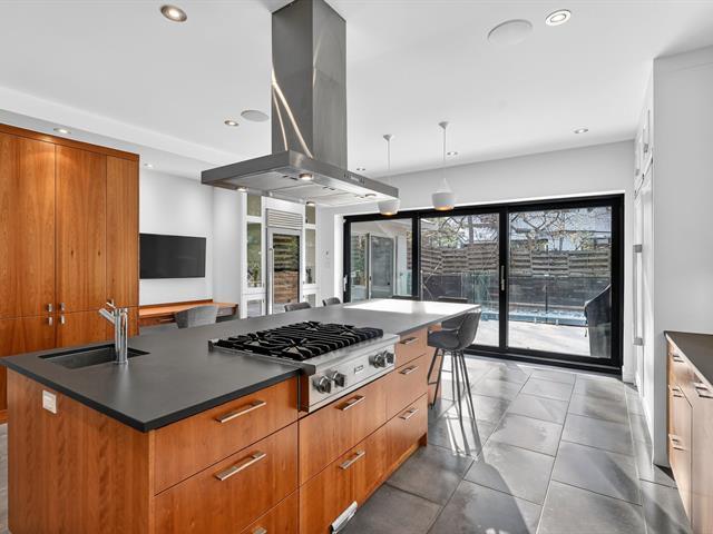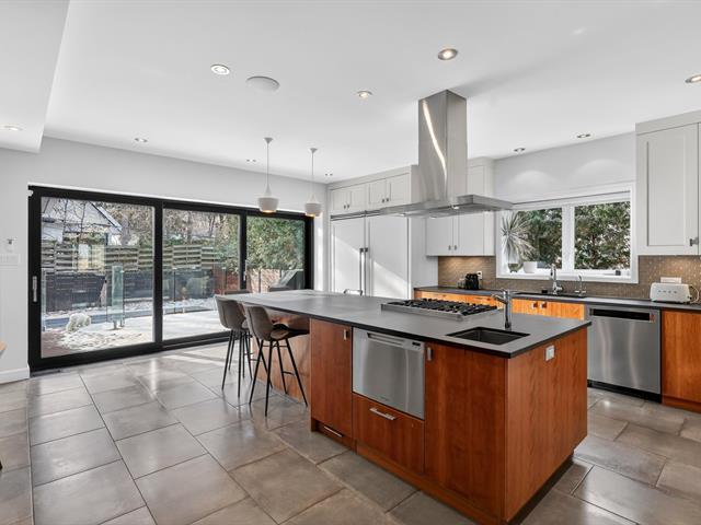 Prestigious contemporary residence offering approximately 5,500 sq. ft. of living space, ideally located facing Pratt Park in Outremont. Southwest-facing backyard providing exceptional natural light. Meticulously renovated property featuring generous volumes and a seamless layout, perfect for family living and entertaining. Spectacular kitchen, living room with gas fireplace and direct park views. In-ground heated pool, landscaped backyard and double garage. Five bedrooms, three bathrooms and one powder room, fully finished basement. Prime location near top-tier schools. (44004660)