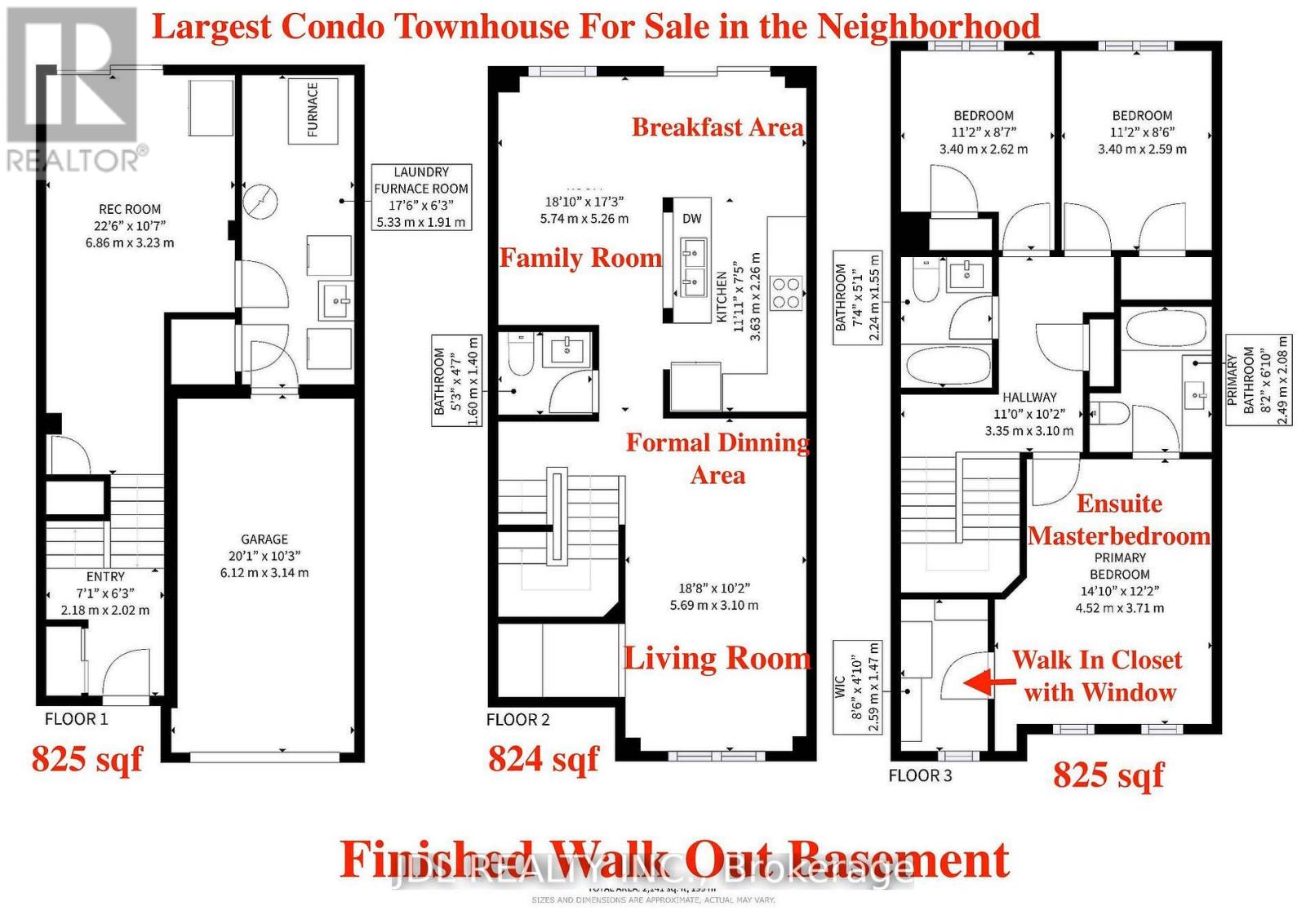 The LARGEST model currently offered in this well-maintained community, boasting over 2,400 sq.ft. of Total Finished and Renovated Living Space. This Bright South-West facing home is filled with Natural Light Throughout the Day and has been Extensively Updated in 2026 over $300K, including BRAND NEW items: Flooring, Windows, Marble Countertops, Stylish Lighting Fixtures, and New Carpet on the Stairs. BRAND NEW Kitchen Appliances (2026): Stove, Fridge, Dishwasher. The Main Level features a Spacious Living Room Combined with a Formal Dining Area, Along with a Separate Family Room Offering Additional Comfort and Flexibility. The FULLY Finished WALK - OUT BASEMENT Adds Valuable Living Space Ideal for a Recreation Room, Home Office, or Extended Family Use.Enjoy a Highly Convenient Location within Walking Distance to Parks, Trails, and Walmart Centre, and just Minutes Drive to Highway 410, Highway 407, Schools, and Everyday Amenities. A rare opportunity to own a MOVE - IN READY, Oversized Home in a Family-Friendly Brampton Neighbourhood. (42053174)