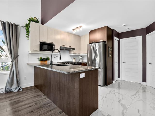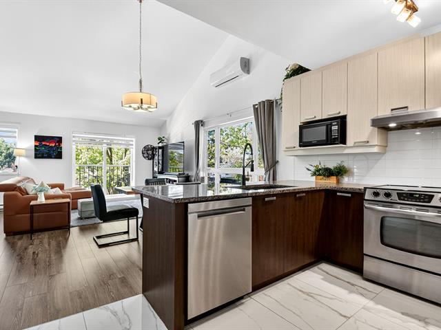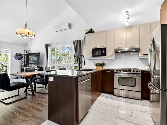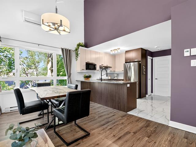 Style, comfort and lifestyle all in one!Flooded with natural light,this stunning 2-level condo boasts soaring cathedral ceilings,a sleek designer kitchen with granite counters and heated floors in both kitchen and bathroom. Upstairs,enjoy your own private retreat with spacious bedroom and ensuite.All in a quiet and peaceful setting.Rare find:an oversized balcony(only 2 in the building),2 parking spots, plus storage.An impeccably managed syndicate,fully compliant with all current regulations:Ultra-low condo fees at just $145/month! Steps from Concorde metro, parks, and amenities. The perfect blend of elegance, convenience and modern living! (44588315)