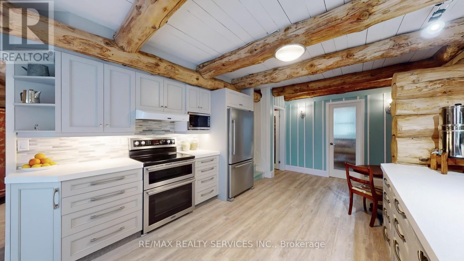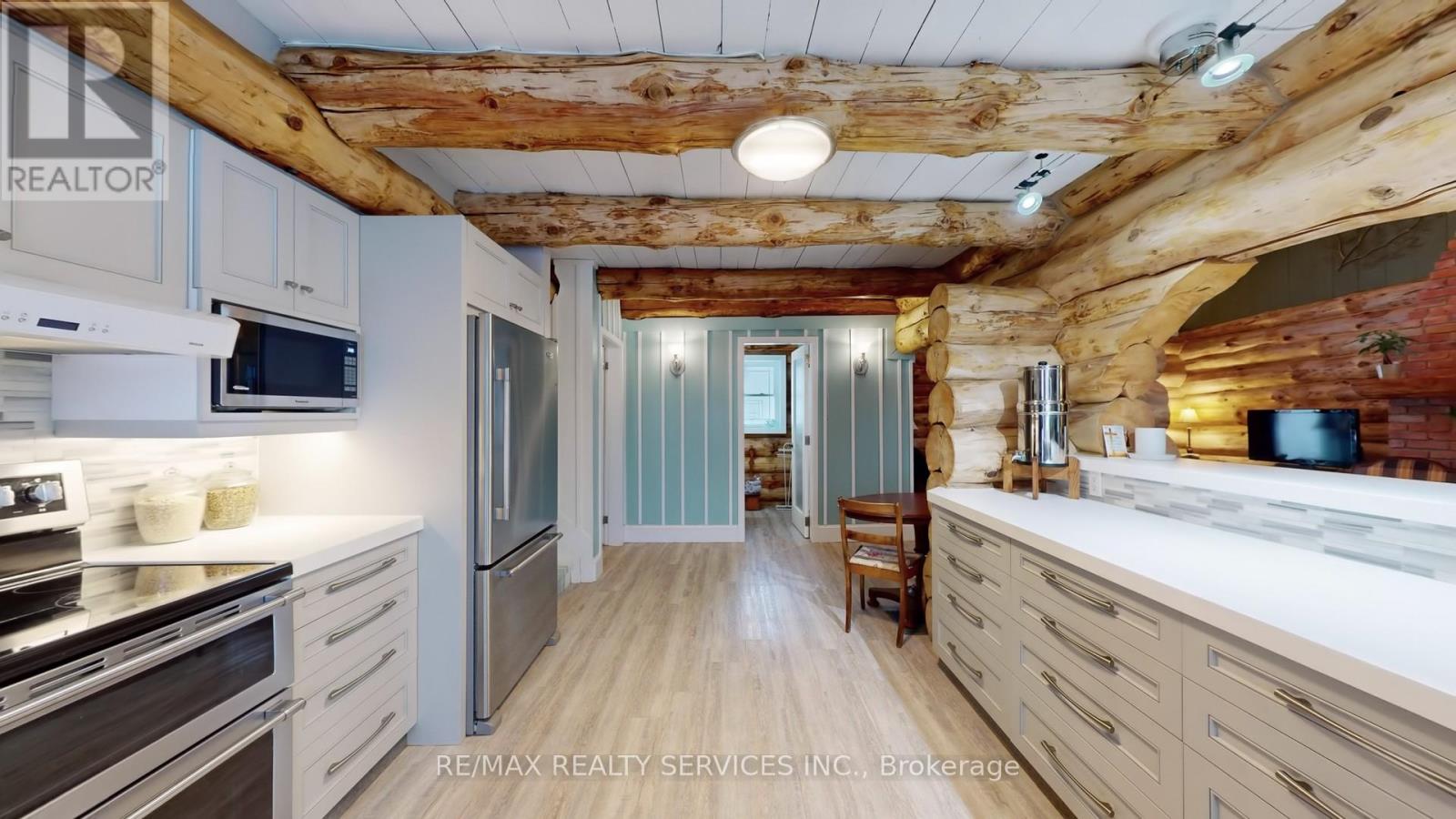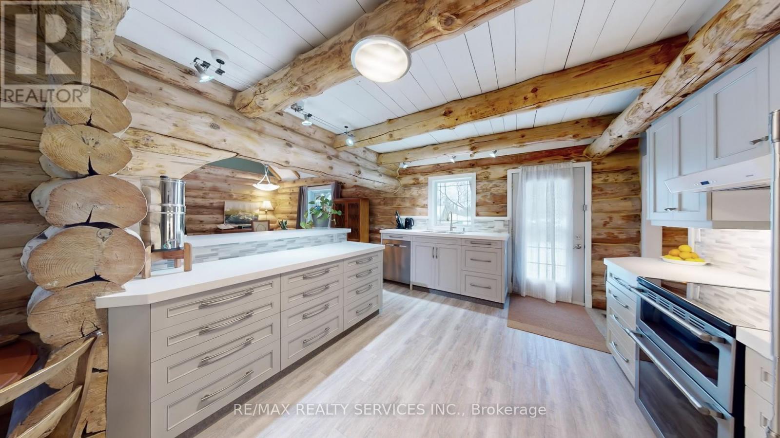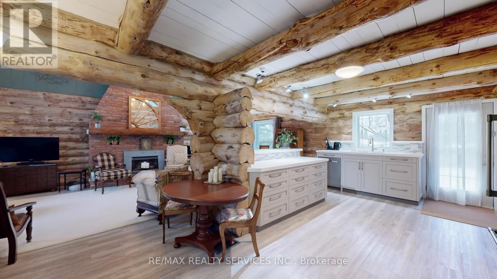 Modern log home situated on 66 ft. lot on quiet street in the quaint village of Hillsburgh approximately 1 hr n/w of Toronto. Features large open concept great room with adjoining bright up to date kitchen with lots of counter space & custom cabinets plus main floor 4 pc bath. Second level loft/bedroom overlooks great room. Professionally finished lower level apartment. large above grade windows, bright open concept living room, dining room, kitchen & Spacious bedroom & 4 pcs bath. Main Floor & loft has luxury pine flooring, lower level berber carpet. Professional built cabinets through out. On Demand hot water 2020, water softner 2021, rebuilt Insulated roof 2020. 10'x10' storage garden shed & play house. Walk to shopping. (42053628)