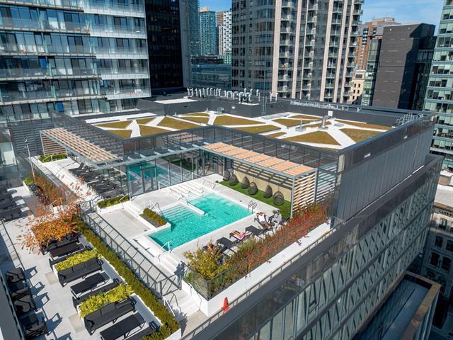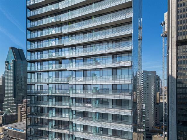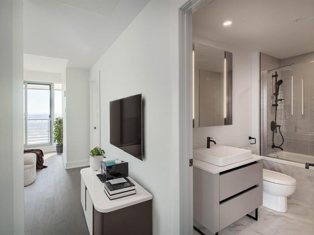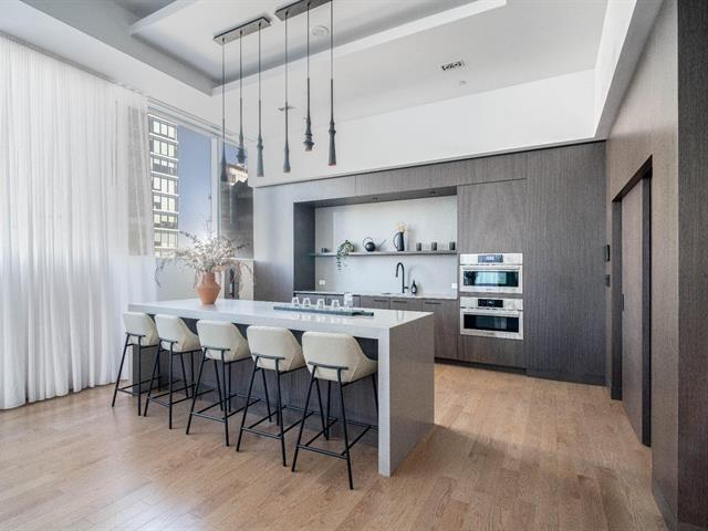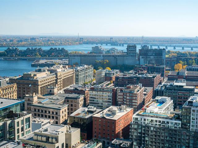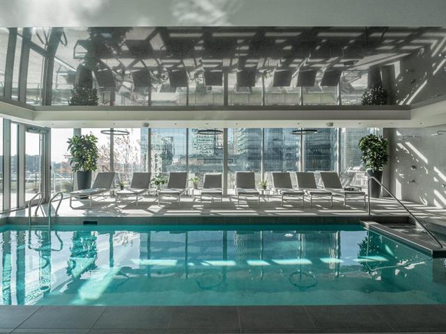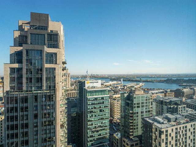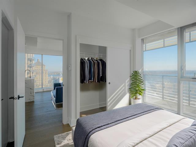 Stunning brand new 2 bedroom, 2 bathroom corner unit boasting spectacular 360 degree city, river and mountain views! Located on the 27th floor of Victoria sur le Parc, in the heart of Old Montreal, this bright and airy unit boasts an open concept kitchen, living and dining area with floor to ceiling windows bathing the space in natural light and offering breathtaking views of the city, the River. Glass doors give access to a large balcony overlooking the St-Lawrence River, an ideal spot to take in the views or to enjoy the summer months. (49013021)