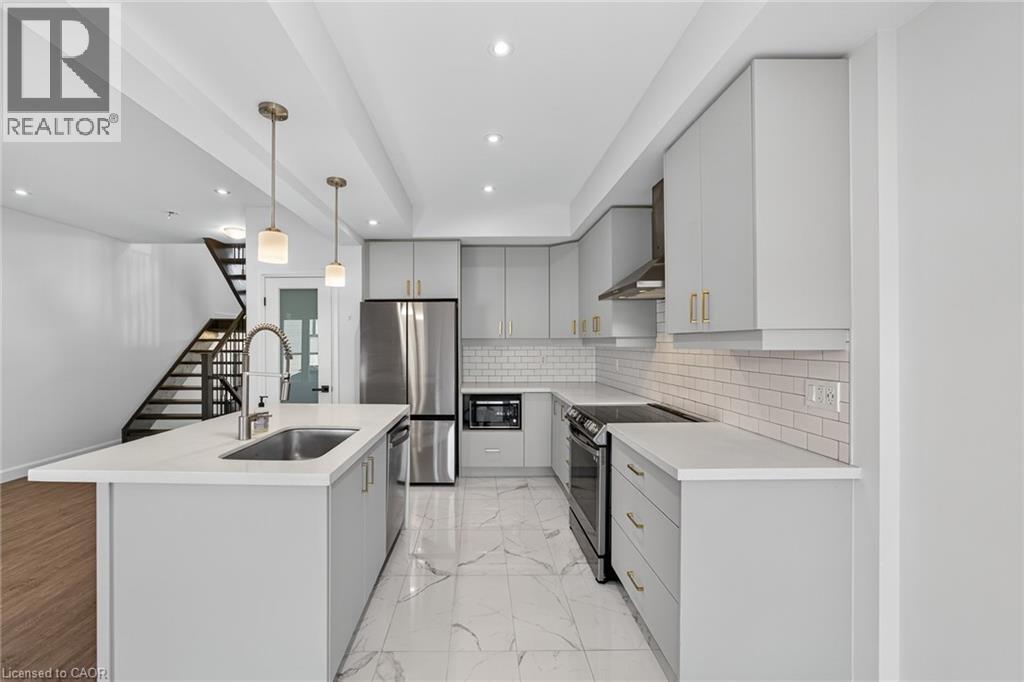 Executively crafted luxury townhome in the heart of Hamilton, showcasing nearly $70,000 in premium builder upgrades and finished to the highest standards from top to bottom. This exceptional home features premium vinyl flooring, a sleek standing glass shower, and a stylish electric fireplace anchoring the main living space. The upgraded kitchen impresses with extended cabinetry, an open hood range, and Level 3 quartz countertops, seamlessly paired with a striking modern open-riser staircase. The main floor is thoughtfully equipped with a TV mount and HD TV, Google Nest thermostat, and existing window coverings, offering both comfort and convenience. The walkout basement presents outstanding future rental or in-law suite potential, adding versatility and long-term value. Step outside to a beautifully finished backyard featuring a cozy fire pit, ideal for entertaining or unwinding year-round. Located in a highly desirable neighborhood with an excellent walk score, this home is minutes from major highways, McMaster University, shopping centres, parks, banks, and restaurants, and is surrounded by top-rated schools—making it an ideal place to call home. (70111178)