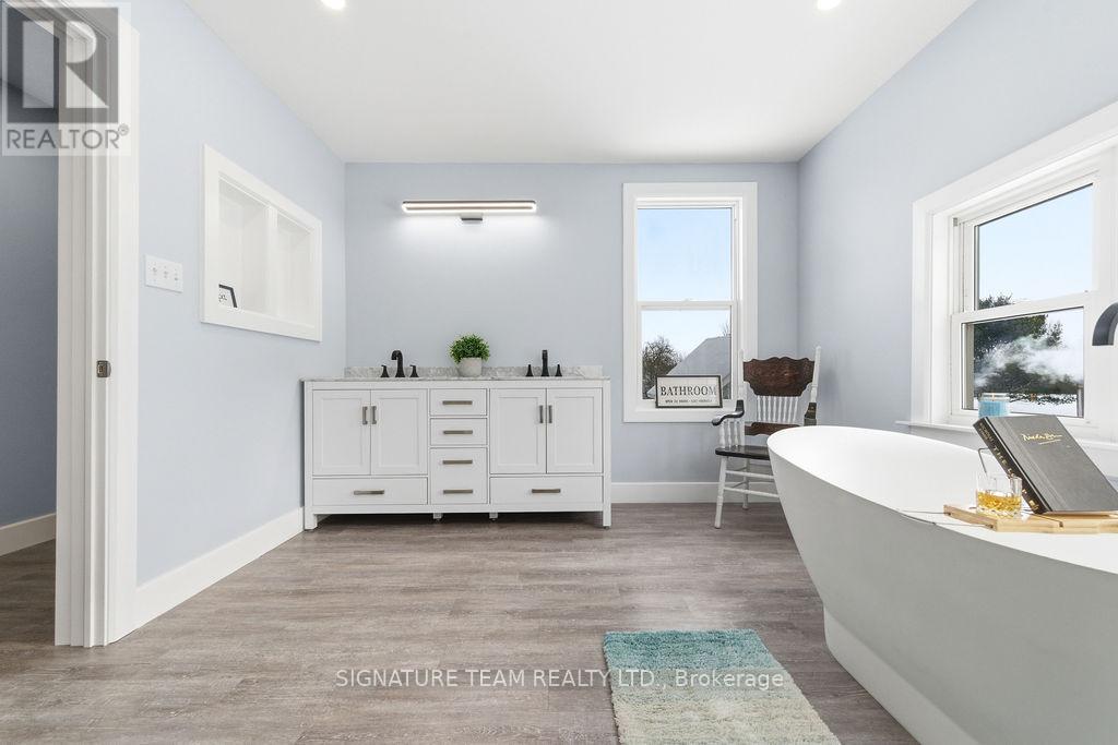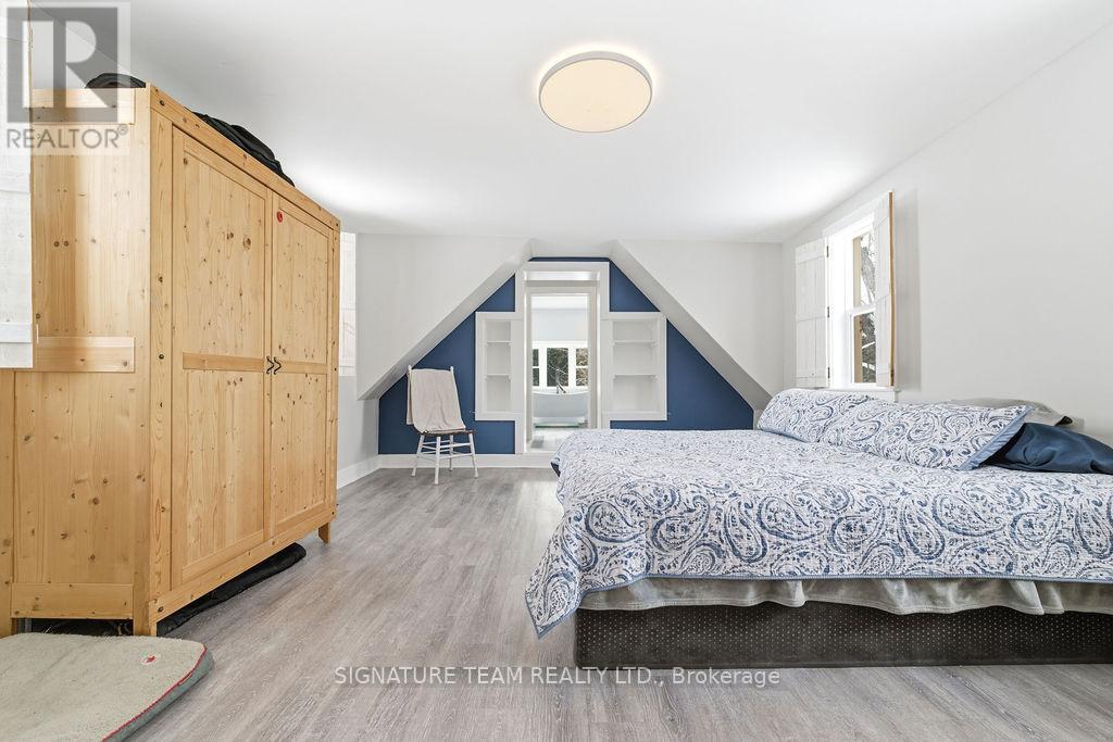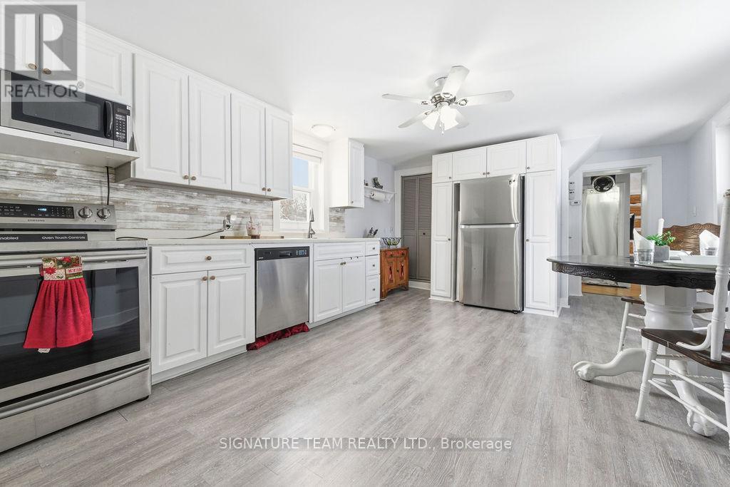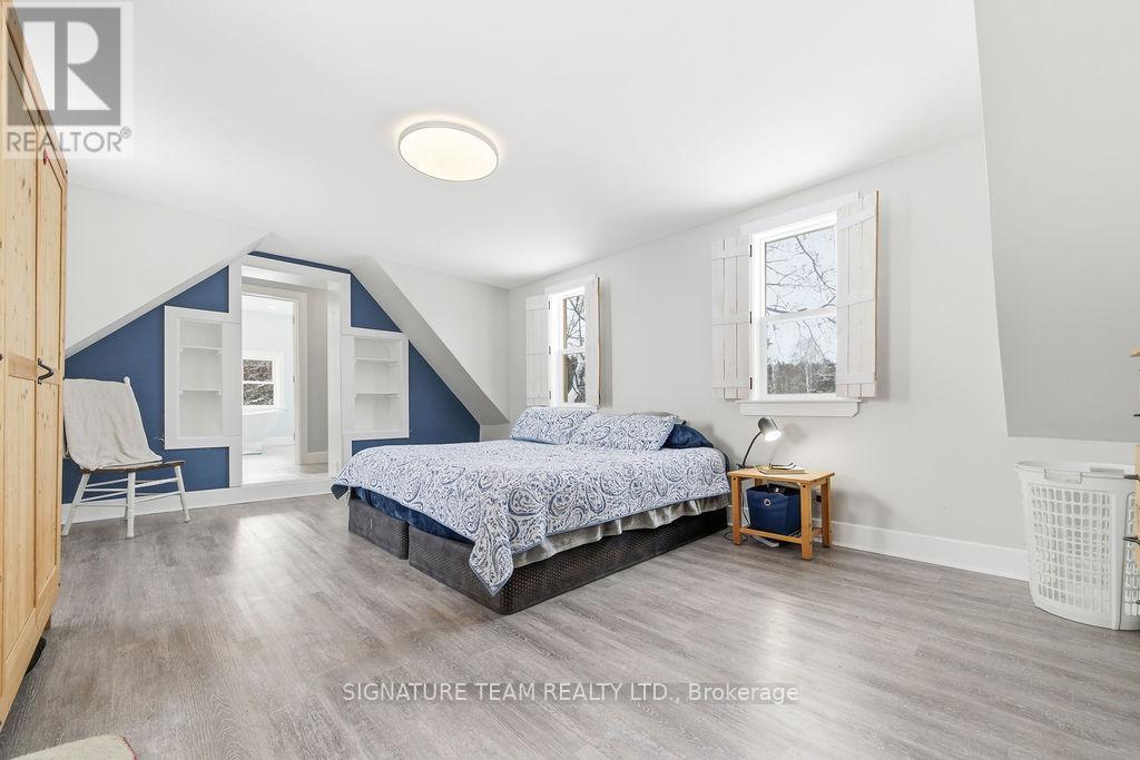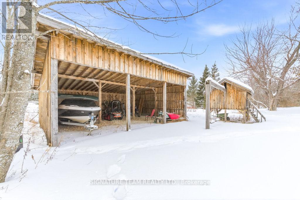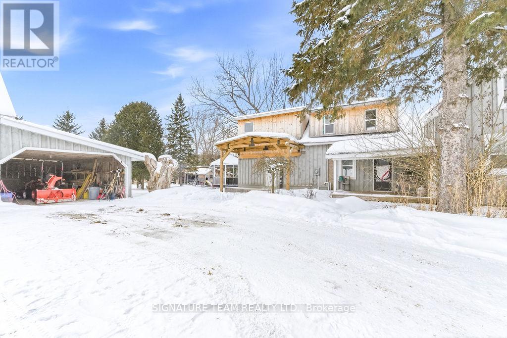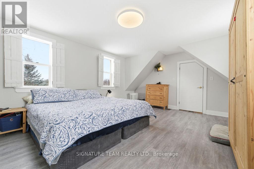 Located just minutes from the quaint village of Eganville in the heart of the Ottawa Valley at Kellys Corner, this 4-bedroom, 3-bathroom century home is set among rolling farmland and rural properties on a 1.1 acre lot. Filled with natural light and character, the original section of the home is believed to date back to the late 1800s and features log-frame construction. This space offers a welcoming living room [w oak flooring] and a main-floor den/bedrm, both enjoying beautiful countryside views. The kitchen addition provides a generous eat-in layout w a coffee bar and a second staircase (currently closed off upstairs) used as a pantry. A secondary exterior door leads directly to the covered deck and BBQ area - ideal for everyday living and entertaining. The most recent addition includes a spacious mudroom entry with full laundry and a convenient 2-piece bath. Upstairs, you'll find two well-sized secondary bedrms, each with closets plus the primary bedrm, located above the newest addition, bright and inviting, featuring handcrafted wooden shutters, his-and-hers walk-in closets, and a stunning newly built 5-piece ensuite. The ensuite is filled with natural light and offers countryside views, a freestanding tub, separate shower, and double vanity. Outside, a barn-style outbuilding w car port, has been repurposed and includes a heated workshop, finished modern loft with drywall, lighting, and electrical (previously used as a home gym and ideal for a studio!) and wood storage. Additional outdoor features include cover side-porch and front-porch, 3-stall lean-to, gazebo + a patio-stone fire pit area. Set within a rural farming community, the property is surrounded by an apiary, a neighbouring Mennonite farm and other rural homes - offering a peaceful setting with a strong sense of place and community spirit. (42054438)