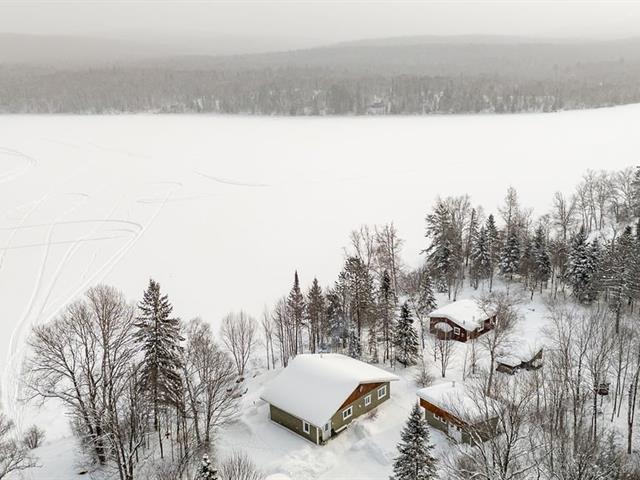 BORD DE L'EAU NAVIGABLE - Magnifique maison construite en 2004, érigée sur une dalle de béton avec plancher chauffant au glycol, offrant confort et efficacité toute l'année. Donnant saur l'eau, elle séduira les amateurs de sports nautiques et de pêche grâce à ses poissons abondants. L'intérieur propose deux chambres, des plafonds de neuf pieds, un foyer chaleureux et une fenestration généreuse donnant sur le lac et les montagnes. Le terrain de près de 26 000 pieds carrés comprend un bâtiment supplémentaire, un atelier et deux sheds. Propriété disponible en moins de deux mois. Un cadre paisible et recherché, idéal comme résidence ou refuge.!! (49620984)
