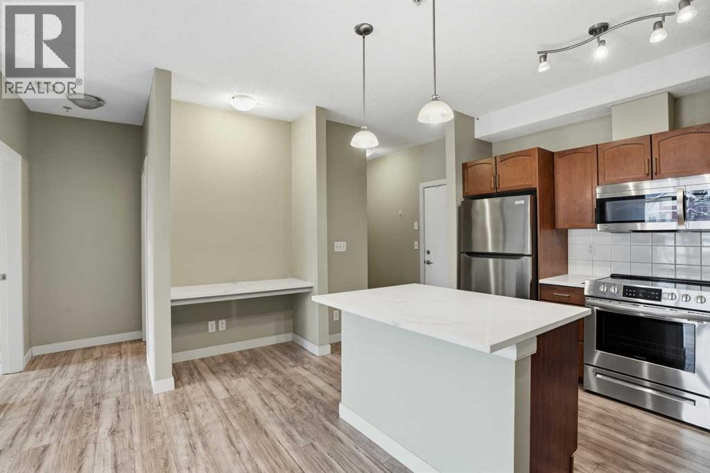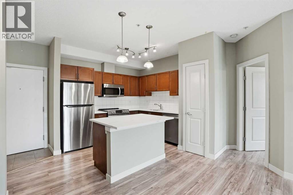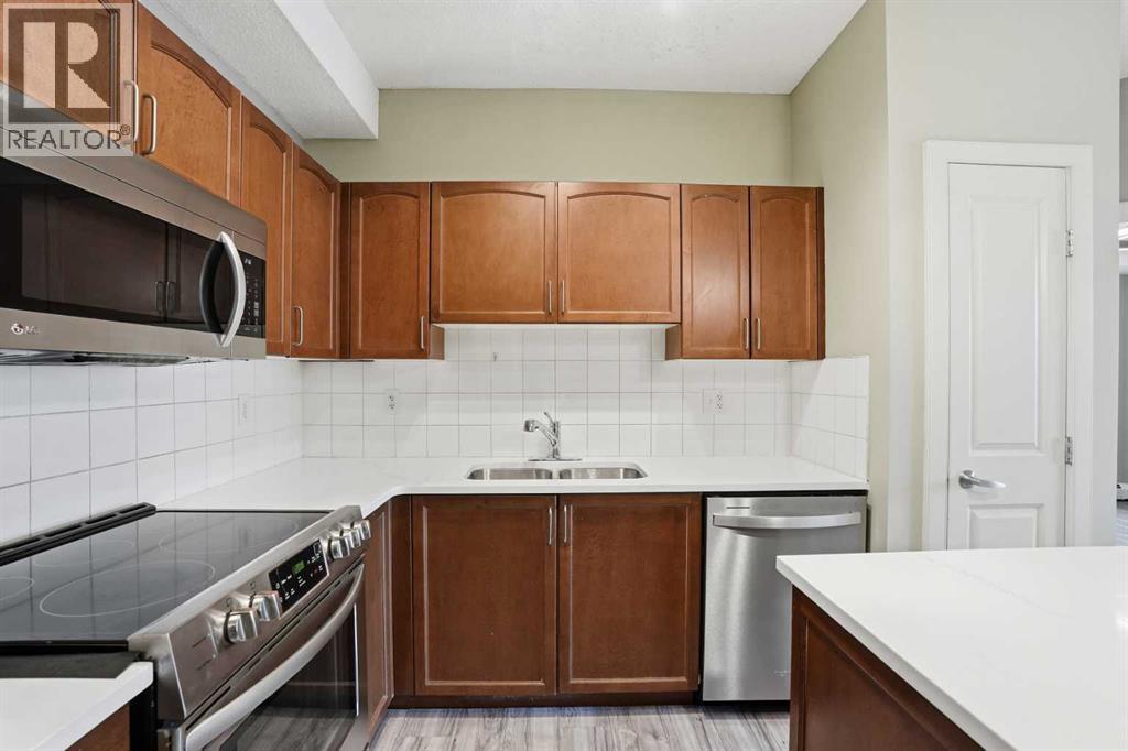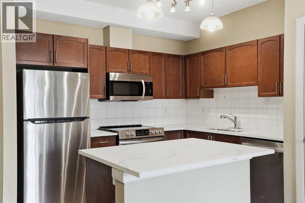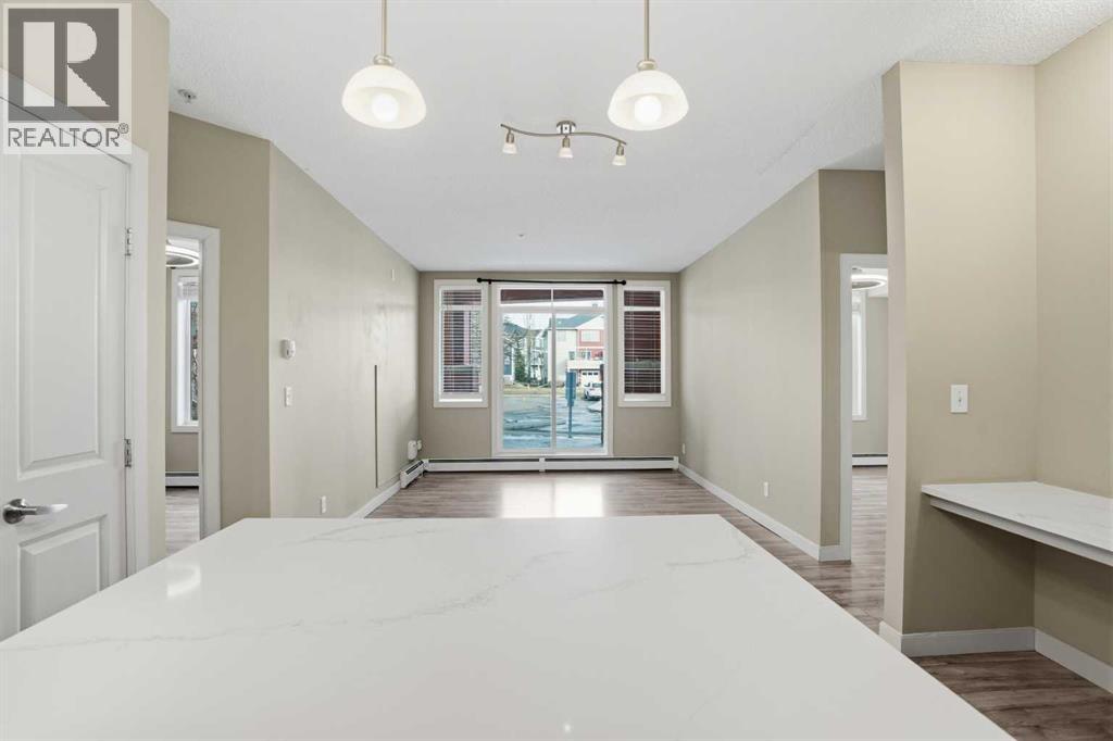 Located on the Country Hills Village Pond | Gorgeous Main Level Apartment | 2 Bedrooms | 2 Bathrooms with New Sinks & Faucets | Open Floor Plan | Bright with Natural Light | Brand New Quartz Countertops | Stainless Steel Appliances | Kitchen Island | Built-in Work Station | Great Storage | In-Unit Laundry | Underground Titled Parking | Secure Entry Building | Visitor Parking. Welcome to this stunning 2 bed, 2 bath main level apartment boasting 847 SqFt with an open floor plan kitchen, dining and living areas. The front door to your home opens to a tiled foyer with closet storage and past this is your in unit laundry. The open floor plan with high ceilings and large windows throughout the kitchen, dining and living rooms compliments the size of the space. The kitchen is outfitted with new quartz countertops, stainless steel appliances and great cabinet storage. The open concept living means you can choose where you'd like your dining table to go! The living room is comfortable and bright and is paired with sliding glass doors to your patio. The two bedrooms are located on either side of the living room giving additional privacy. The primary bedroom has a walk-through closet to a 3pc ensuite bath. The 2nd bedroom is a great size and just outside the door is the 4pc bath with a tub/shower combo. This unit comes with a titled underground parking stall that keeps your vehicle weather protected year round! Step outside and you’re just moments away from a serene pond, picturesque walking paths, a nearby golf course, public transit, and a variety of shopping and dining options. You’ll also love the easy access to Deerfoot Trail, Stoney Trail, and the Calgary International Airport. Whether you're a first-time buyer, investor, or downsizer, this home offers comfort, convenience, and excellent value in a well-maintained building with low condo fees. Book your showing today and experience everything life in Country Hills Village has to offer! (31589770)