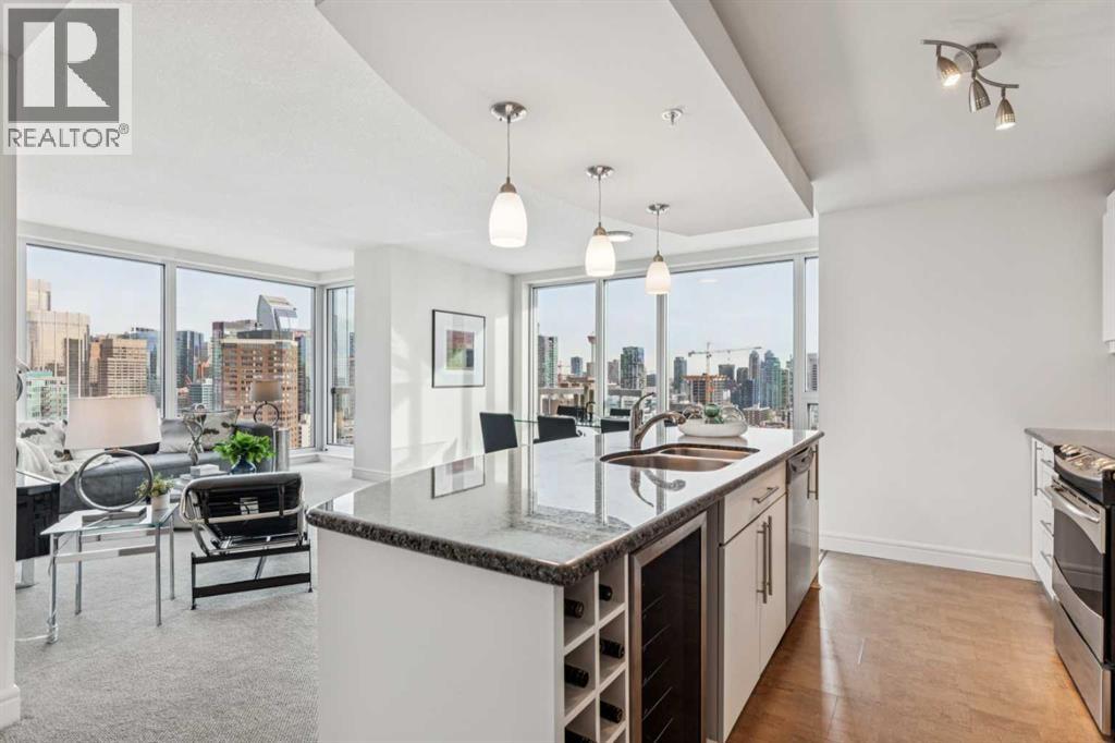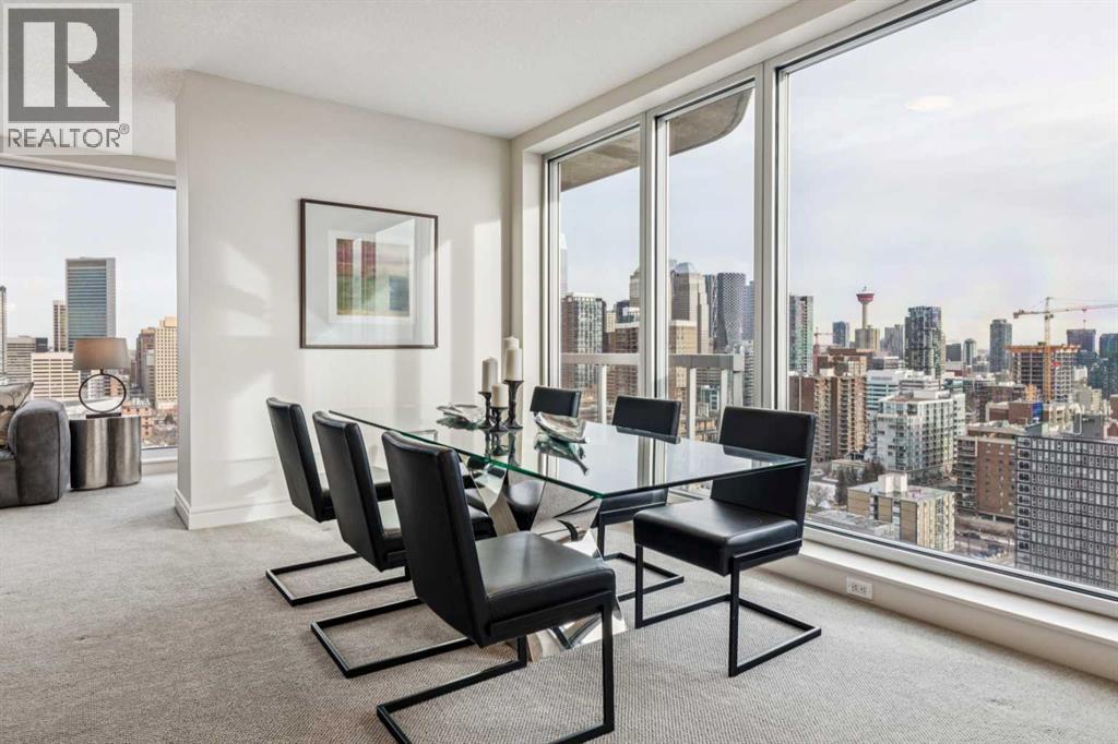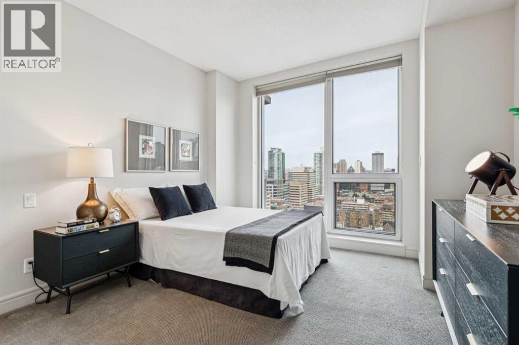 Experience luxury living at this high-floor, stunning corner unit that’s part of the exclusive “Penthouse Collection” at The Montana. This is arguably this most desirable location in the Beltline…just off 17th Avenue and 8th Street…surrounded by endless amenities, shops services, restaurants, cafes and fitness…a true lifestyle destination. This “Georgia” floorplan offers a generous 1289 square feet including 2 bedrooms, a den-office and 2 full baths. Floor-to-ceiling windows frame incredible downtown views that include all the iconic buildings. 9’ ceilings, contemporary architectural details, updated lighting and fresh paint throughout. Flexible and open-concept layout including a generous seating area, a dining area that can accommodate a large table, a work-from-home space tucked around the corner and a stylish kitchen with excellent storage (double-door pantry), fresh white cabinetry, granite counters, large centre island with extended counter for stools and stainless appliances. Balcony with panoramic view and gas for BBQ. Exceptional primary suite with a large bedroom that enjoys morning light, power window shades, Restoration Hardware drawer units, a generous walk-through closet and a 4-piece ensuite with soaking tub-shower combination. Good second bedroom next to a 3-piece bath with shower. Laundry room with storage. Extra-wide titled parking stall and assigned storage locker. The Montana has a unique window construction…the 3” thick “vision wall” system for superior soundproofing and energy efficiency. Central air conditioning. Building amenities include a newly renovated fitness centre, 5-star concierge service, visitor parking and 3 high-speed elevators with secured floors. Perfect for downsizers and those that appreciate a little extra space. (31587491)