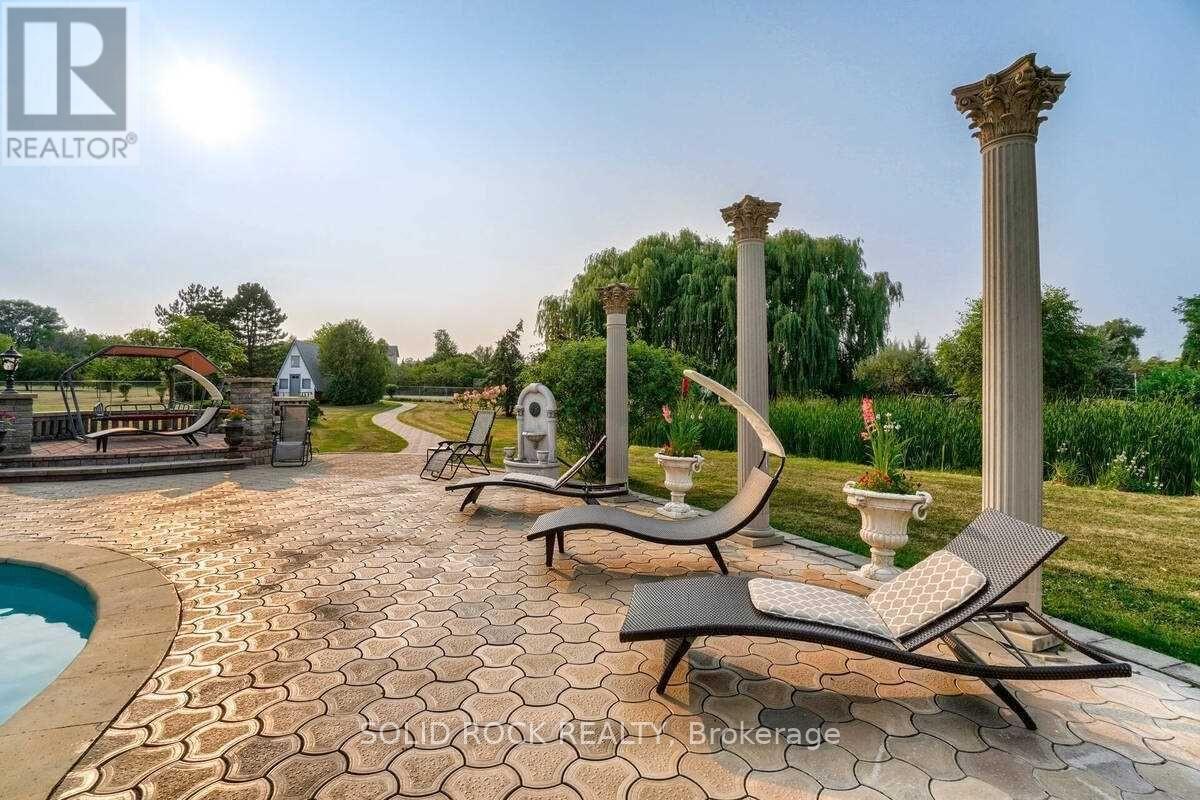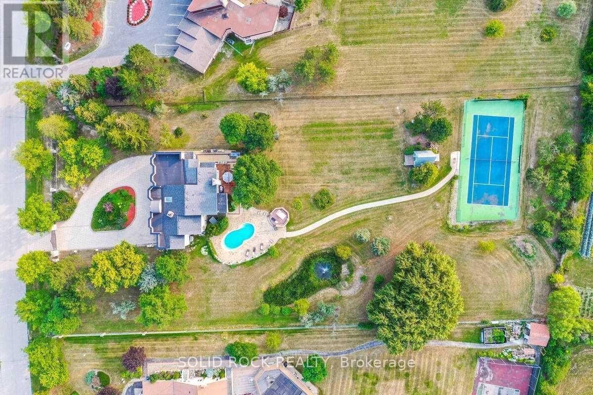 An extraordinary gated estate residence set within one of Brampton's most exclusive and prestigious neighbourhoods. Introduced by a grand front gate and privately positioned on just under two acres of meticulously landscaped grounds, this one-of-a-kind property offers true estate living with a rare combination of privacy, scale, and architectural distinction. Resort-style amenities include a private tennis court, in-ground pool, and a commanding exterior presence. Upon entry, the grand foyer immediately sets an elegant and impressive tone, showcasing the home's meticulously designed architecture and refined craftsmanship throughout. Offering five generously sized bedrooms and four beautifully appointed bathrooms, the residence is further enhanced by timeless details such as wrought iron railings, a Juliet balcony, 5 fireplaces and thoughtfully curated design elements at every turn. The custom, dream-style kitchen with breakfast nook seamlessly connects to expansive principal rooms, including a grand family room and separate formal living and dining rooms, ideal for both sophisticated entertaining and everyday living. The primary suite serves as a true private retreat, featuring an impressive six-piece ensuite and a private balcony overlooking the serene estate grounds. Completing the home is a fully finished lower level offering just under 2,000 square feet of additional living space, complete with a separate kitchen, bathroom, and walk-up entrance, providing exceptional flexibility for extended family living, private guest accommodations, or future possibilities. A rare and remarkable offering for the most discerning buyer seeking privacy, prestige, and an elevated estate lifestyle in one of Brampton's most sought-after enclaves. Taxes estimated as per city's website. Property is being sold under Power of Sale. Sold as is, where is. Seller makes no warranties or representations on property history, taxes or and condition. (42055592)