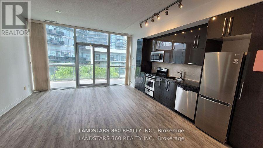Monarch Built Luxurious Water Front Condo. Bright & Spacious 1Br+ Den unit, 680 sf +165 sf Balcony. Bedroom with full width Floor to Ceiling window & large closet. One(1) Parking + One(1) Locker, Parking spot is next to the Elevator Lobby. Looking into Super Quiet Inner Garden Court. 9ft Ceiling . Modern Design Finishes with Vinyl laminate Flooring. Well kept and just move in. Steps to Bike & Walking Trail/Path along the Lake. Excellent Amenities with 24hrs Concierge. East Access to Gardiner Express/Hwy 427/401 & Lakeshore Rd Ttc, Supermarket, Shops, Cafe and Restaurants nearby. (42055617)