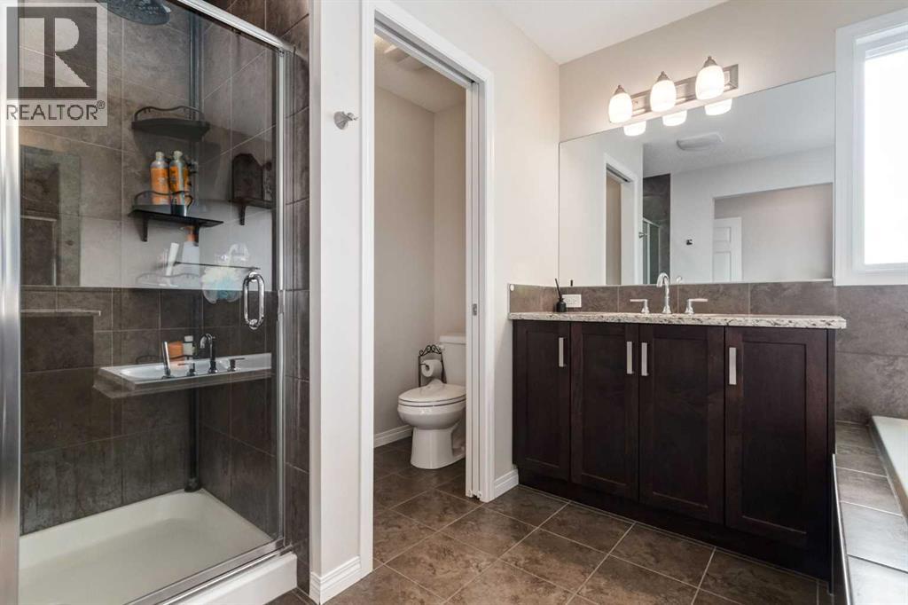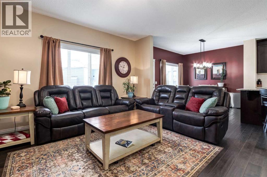26 Mount Rae Terrace is the perfect family-friendly home to raise a family. The welcoming entry features a tiled foyer paired with the warmth of hand-scraped hardwood flooring, creating an inviting first impression for family & guests. The walk-through mudroom acts as an extension of the kitchen, featuring a stylish coffee bar, pantry with custom shelving, plus the everyday convenience of custom shoe shelving, built-in bench seating & coat hooks. Direct access to the heated garage with gas heater adds exceptional functionality. The chef’s kitchen features extended cabinetry, ample counter space, granite countertops, abundant lower drawers & full-height uppers, with new custom lighting in the kitchen & dining area. A large centre island offers seating for two, wine racks & cookbook shelving. Gas cooktop & stainless steel built-in oven/microwave complete the space. The dining area & family room are open to the kitchen & highlighted by a stone-surround fireplace & large windows overlooking the massive east-facing backyard. Enjoy the expansive composite deck with new privacy screen, ideal for outdoor entertaining, with added trees enhancing privacy. Upstairs, all three children’s bedrooms include walk-in closets. The main bath features dual sinks, granite counters & a pocket door separating the toilet & bathing space from the wash area, allowing multiple children to get ready at once. The laundry room includes storage shelving, a raised custom pedestal for front-load washer & dryer & a folding shelf. The primary suite offers west-facing windows with mountain views, a walk-through closet with custom built-ins & an ensuite with dual sinks, high-profile cabinetry & a separate shower. The finished basement includes a refreshed recreation room with wood slat ceiling, central gym space & rough-ins for a future bathroom. New central air conditioning adds year-round comfort. New custom lighting & granite finishes complete this exceptional family home. (31593270)