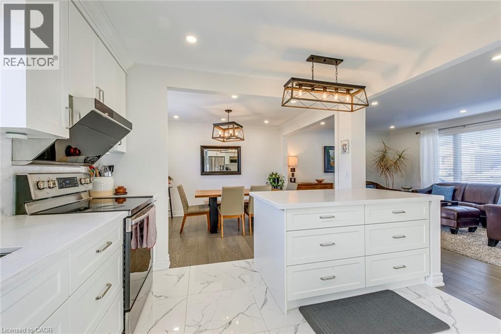 Welcome to this beautifully renovated detached sidesplit located on a quiet, family-friendly crescent in desirable West Oakville. This bright and modern home features an updated kitchen with custom white cabinetry, quartz countertops, a large centre island, stainless steel appliances, and designer lighting, flowing seamlessly into the open-concept dining and living areas highlighted by wide-plank hardwood flooring, pot lights, and oversized windows. The upper level offers three well-proportioned bedrooms and updated bathrooms finished in timeless neutral tones, while the lower level provides a cozy family room with electric fireplace and large above-grade windows, ideal for a media room, home office, or additional living space, plus a partially finished basement for storage or flexible use. Additional features include central air conditioning, forced-air gas heating, landscaped front yard with walkway, in-ground sprinkler system, finished laundry area, private driveway, and attached garage. Conveniently located minutes to Bronte GO Station, QEW and Highway 403, Bronte Village, parks, schools, shopping, and the Oakville waterfront, this move-in-ready home offers comfort, style, and an exceptional neighbourhood for families or professionals alike. (70112315)