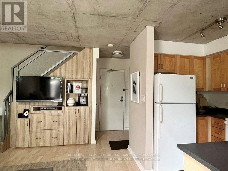 Experience elevated urban living in this remarkable 2-Level Loft! Welcome to a unique blend of sophistication & functionality in this exceptional 2-level loft. Offering 1 bed + versatile den, bathroom + powder room & soaring 16-foot ceilings, this loft boasts approximately 800 sq/ft of thoughtfully designed living space. The second floor is your sanctuary, featuring a spacious Primary Bedroom that can comfortably fit a King Size Bed, a 2nd-floor laundry, and an open-concept den with a custom-built desk & storage for all your needs. Your own south facing private balcony where sizzling BBQ feasts are not only welcome but encouraged. Heat, Hydro and Water are included in the lease, making budgeting a breeze! You will also enjoy the convenience of one parking space, a locker for additional storage & a private bike rack. *Photos from prior listing & New White Marbled Kitchen Countertop Installed* (42056188)