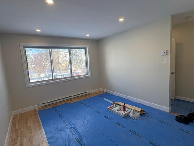 Impeccable 4 ½ avec cour et stationnement, entièrement rénové à neuf et très bien isolé. Puits de lumière, comptoirs de granite et planchers de bois franc. Situé dans un duplex avec des locataires de longue durée. Deux balcons. Nous recherchons des locataires très propres, sans animaux et non-fumeurs, avec revenu d'emploi et bon dossier de crédit. Très grand logement 4,5 entièrement refait a neuve - cuisine, sale de bain, 2 chambres, planchers en bois franc et céramique. Proche de tout - 5 écoles primaires et secondaires, 5 parc pour les enfants, 4 garderies, parc rivière St. Laurent. Access au parc - activités 3 saisons . (57147679)