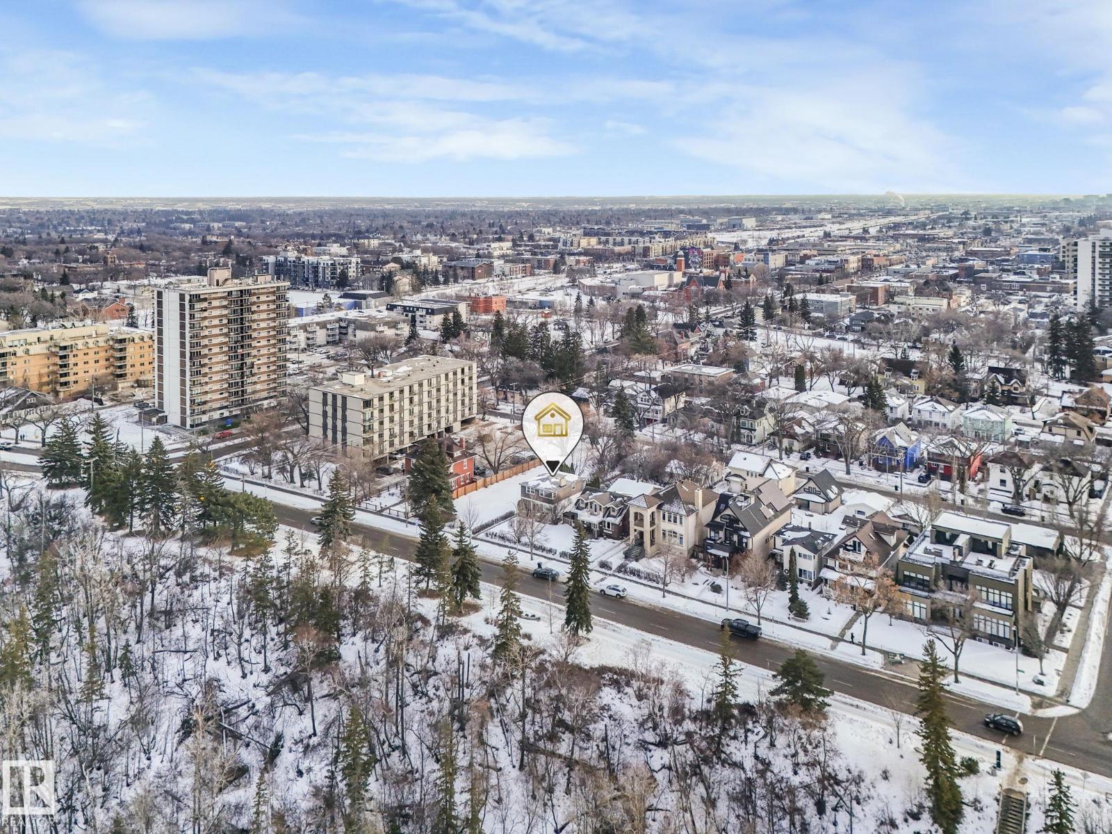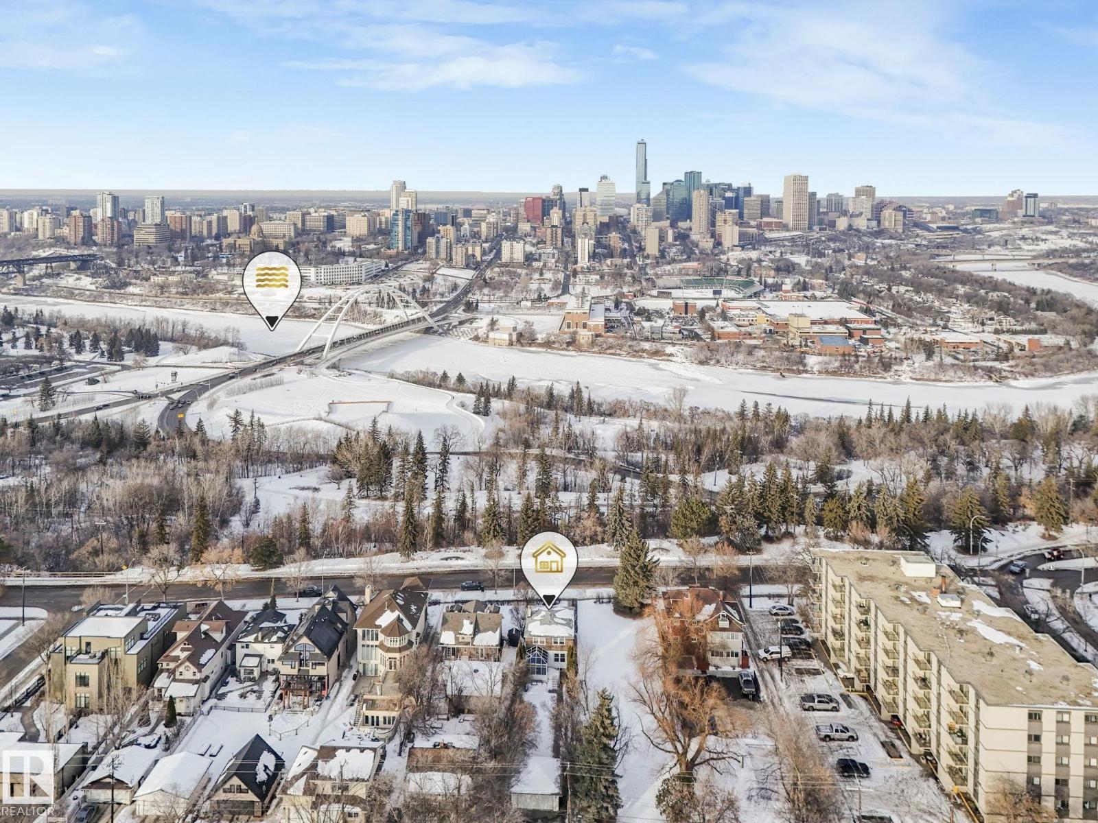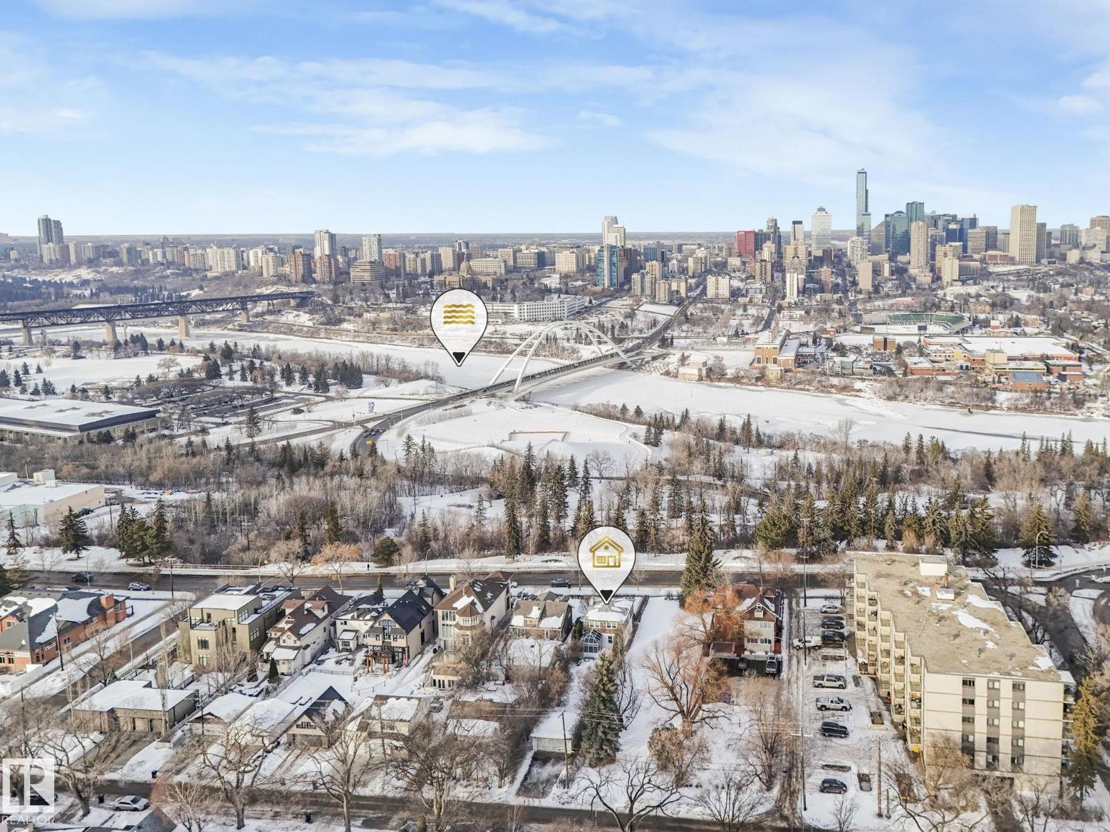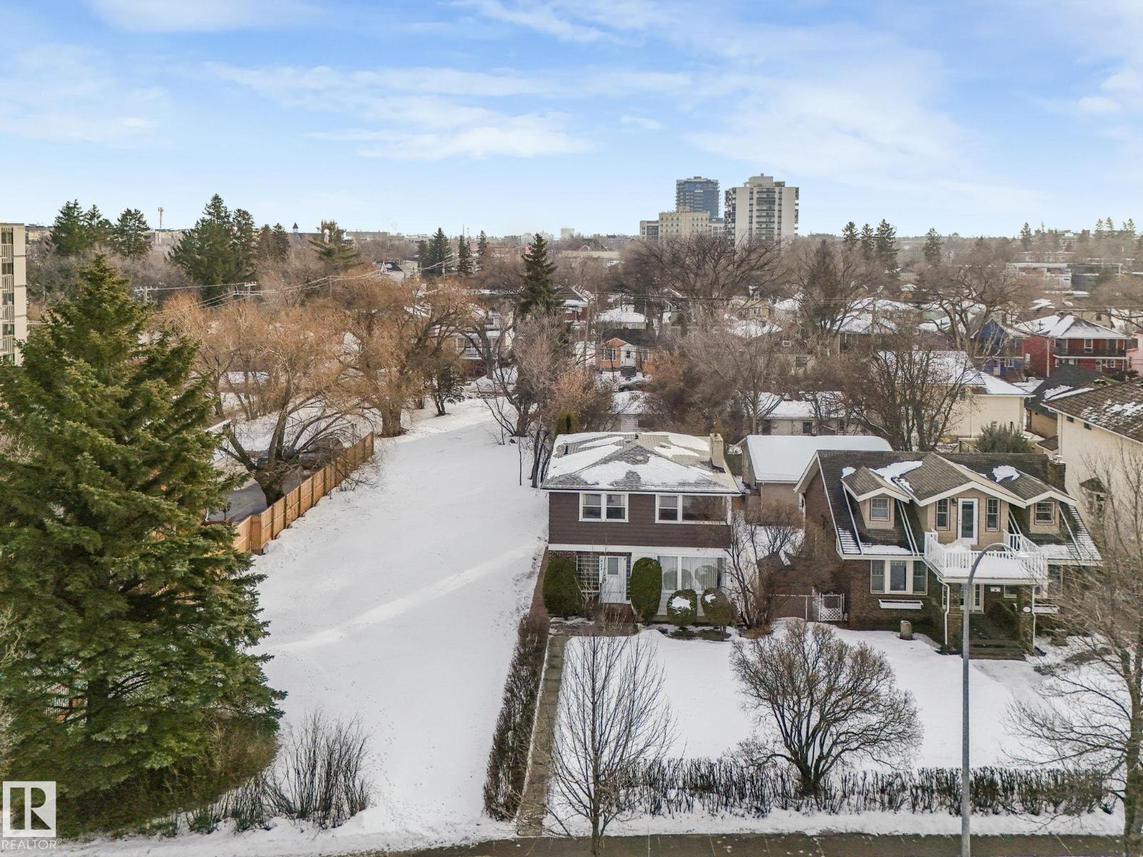 This is the dream building site that you have been waiting for! This 33 X 200 ft lot is facing North on Saskatchewan Drive with an unparalleled view of the river valley & Downtown! Enjoy the changing lights of High Level & Walterdale Bridges & have a front row seat for Canada Day Fireworks! This original Family owned 1824 Ft2 Two Story was built in 1945. Super Solid and features include 4 large bdrms upstairs with great closet space for era plus 3 pce bath and Hardwood floors! Elegant Hardwood staircase greets you from front entry. Large formal Living and dining rms with original hardwood flooring. Kitchen is spacious with European white cabinets & lge windows overlooking back yard. Sliding door to bright 3 season sunroom to enjoy south sun! Bsmt is undeveloped with large windows and updated furnace and HW tank. Large south facing back yard with 20 X 20 dble garage with opener. Walk to Whyte Ave & U of A! Often voted Edmontons favorite and most walkable neighbourhood Old Strathcona is the place to be! (33782401)