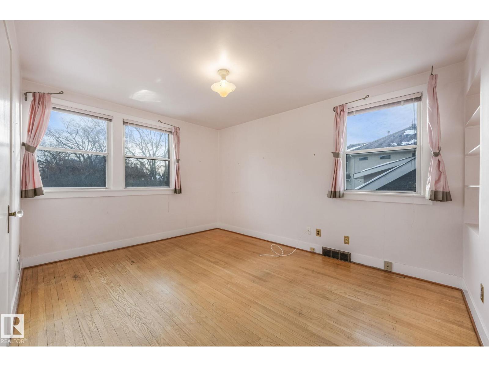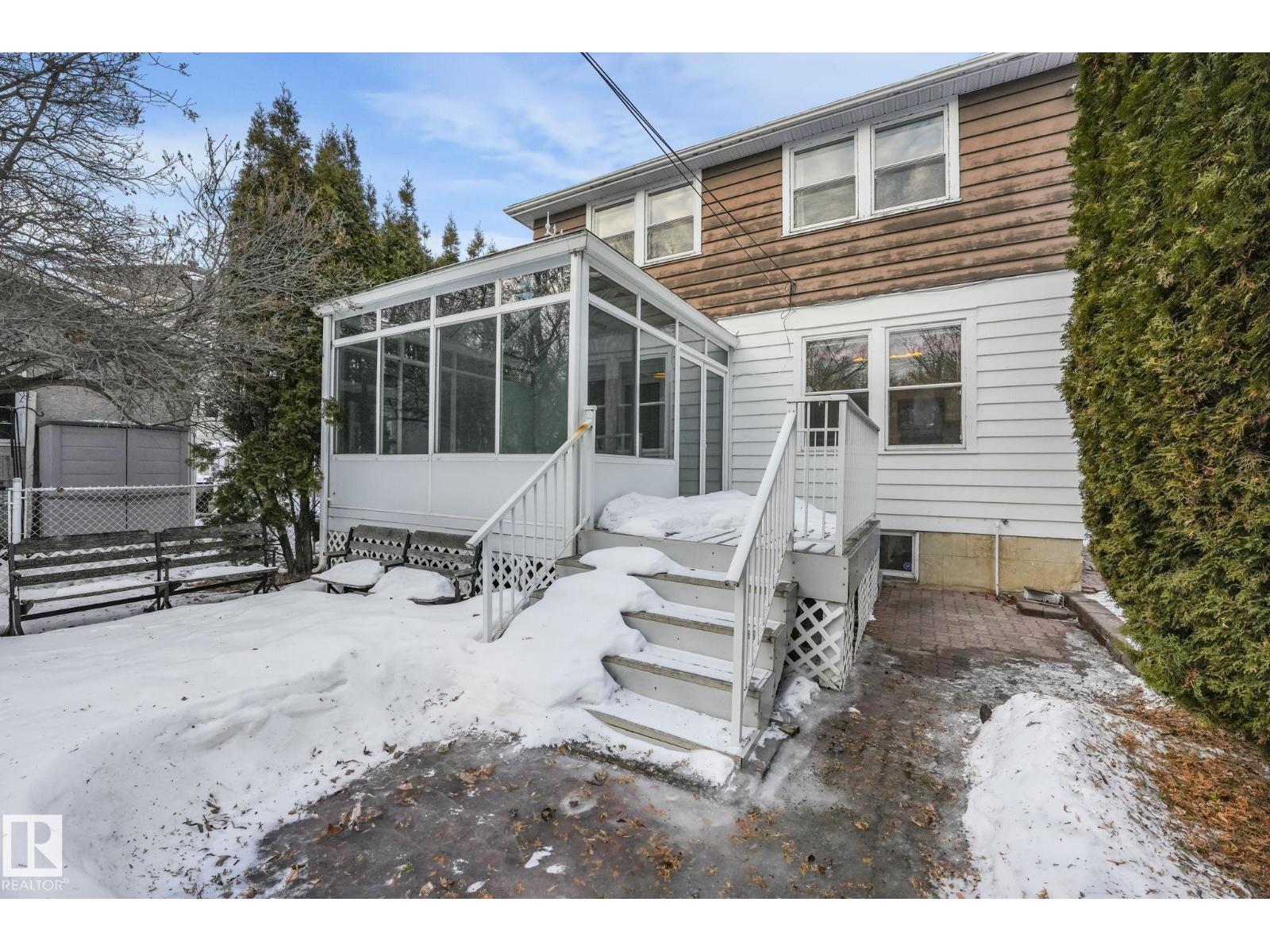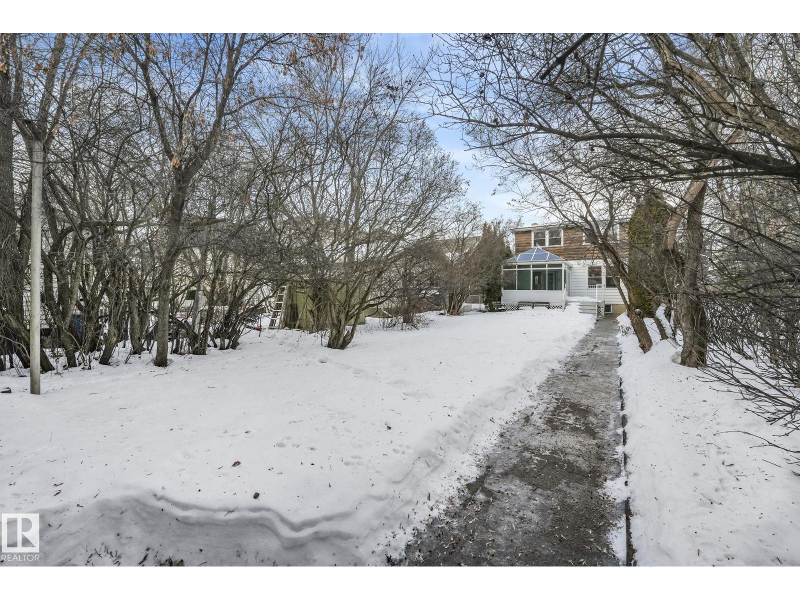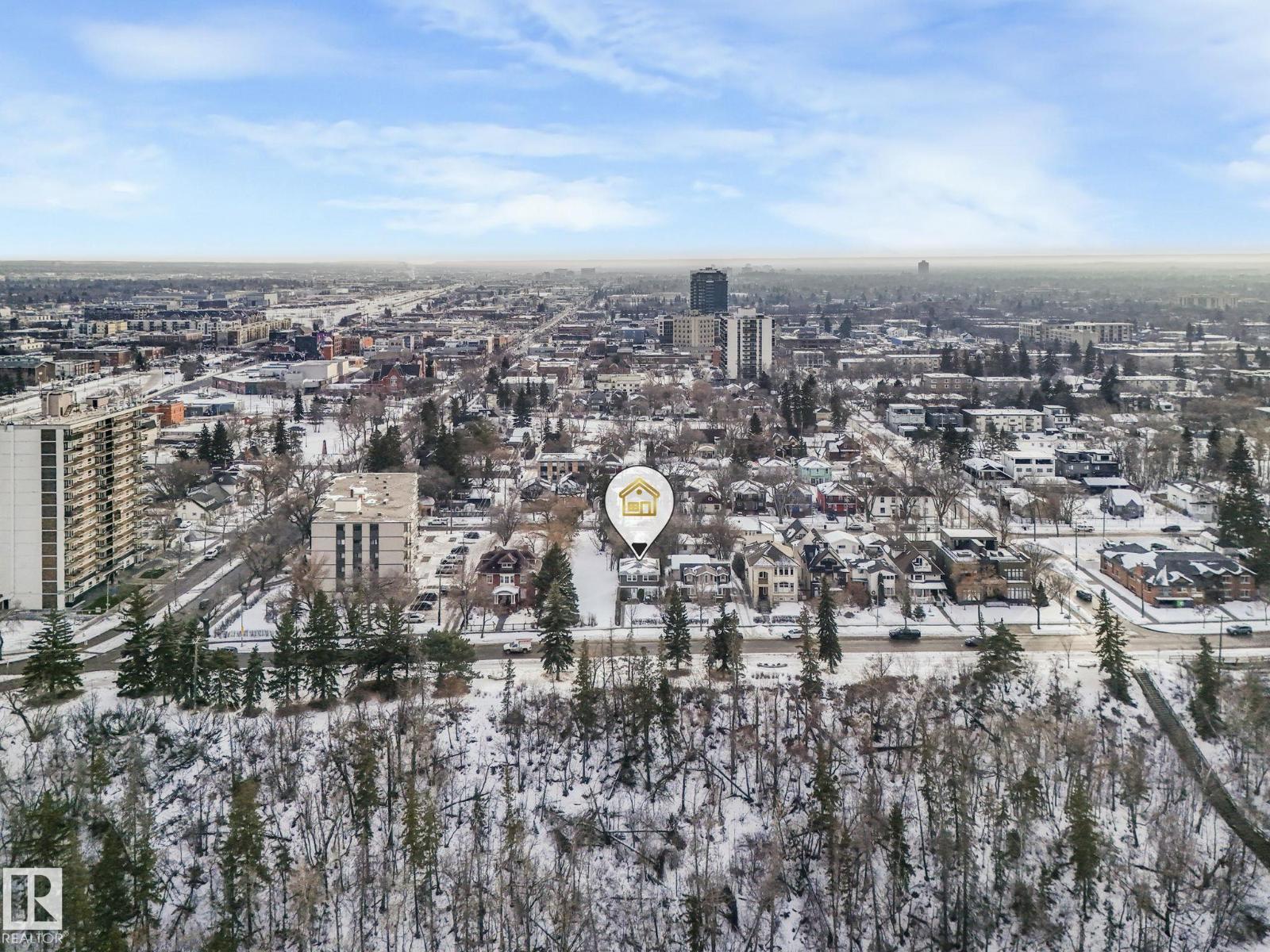 This is the dream building site that you have been waiting for! This 33 X 200 ft lot is facing North on Saskatchewan Drive with an unparalleled view of the river valley & Downtown! Enjoy the changing lights of High Level & Walterdale Bridges & have a front row seat for Canada Day Fireworks! This original Family owned 1824 Ft2 Two Story was built in 1945. Super Solid and features include 4 large bdrms upstairs with great closet space for era plus 3 pce bath and Hardwood floors! Elegant Hardwood staircase greets you from front entry. Large formal Living and dining rms with original hardwood flooring. Kitchen is spacious with European white cabinets & lge windows overlooking back yard. Sliding door to bright 3 season sunroom to enjoy south sun! Bsmt is undeveloped with large windows and updated furnace and HW tank. Large south facing back yard with 20 X 20 dble garage with opener. Walk to Whyte Ave & U of A! Often voted Edmontons favorite and most walkable neighbourhood Old Strathcona is the place to be! (33782401)