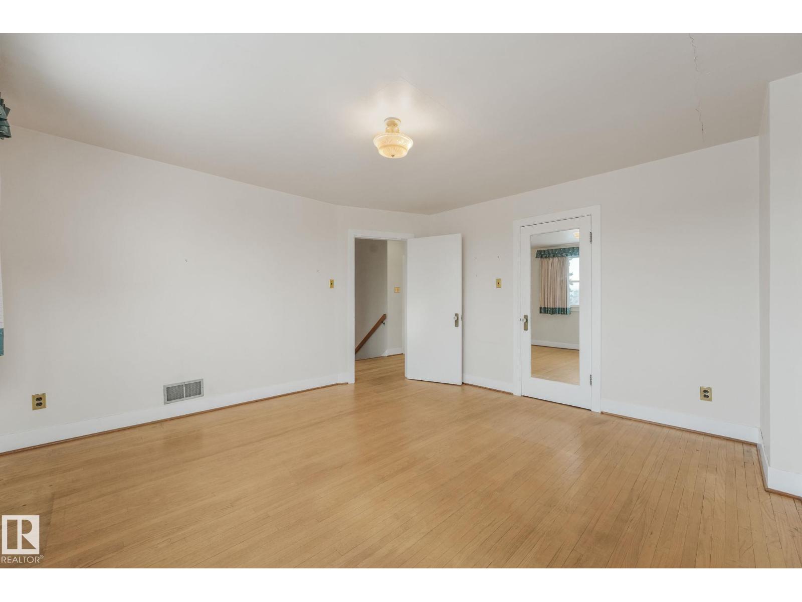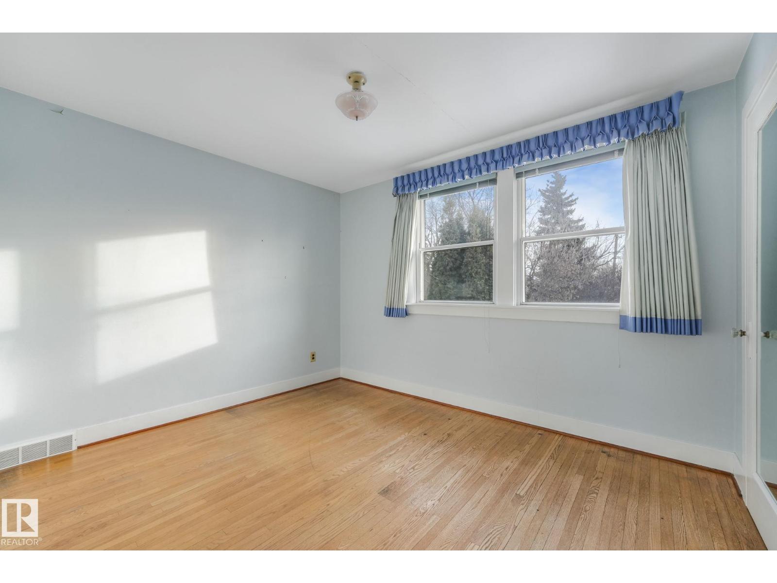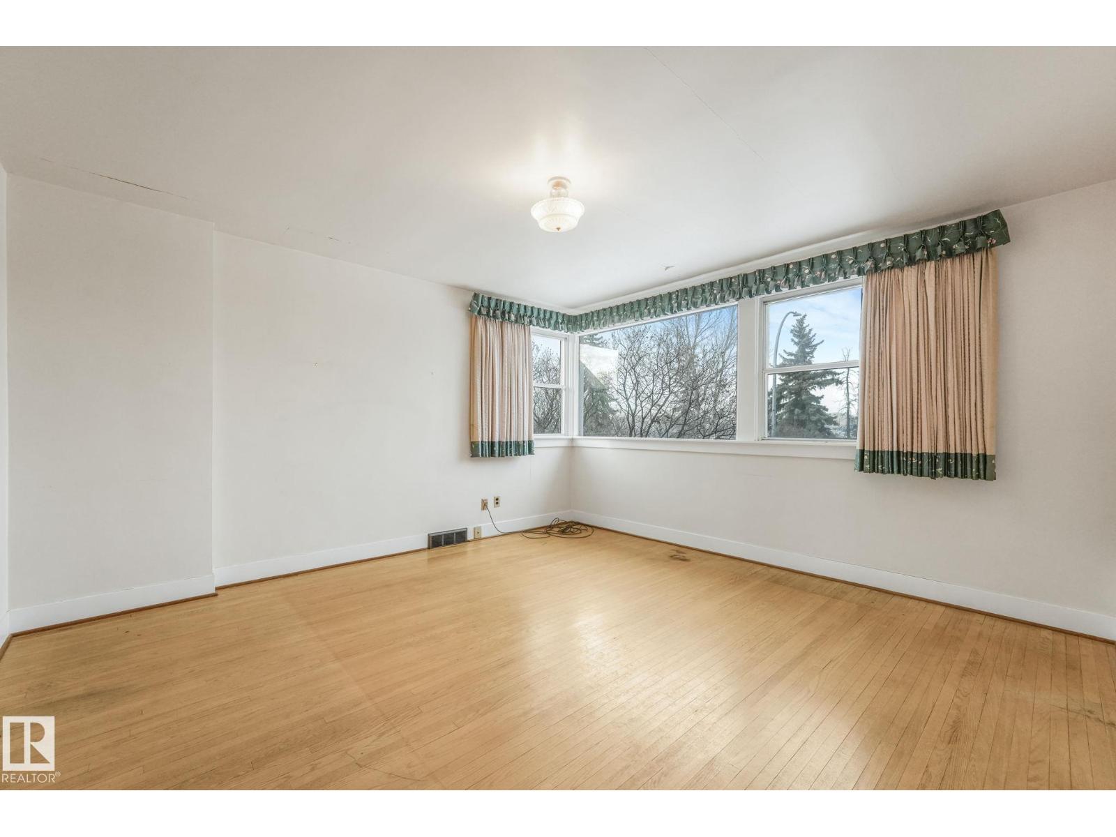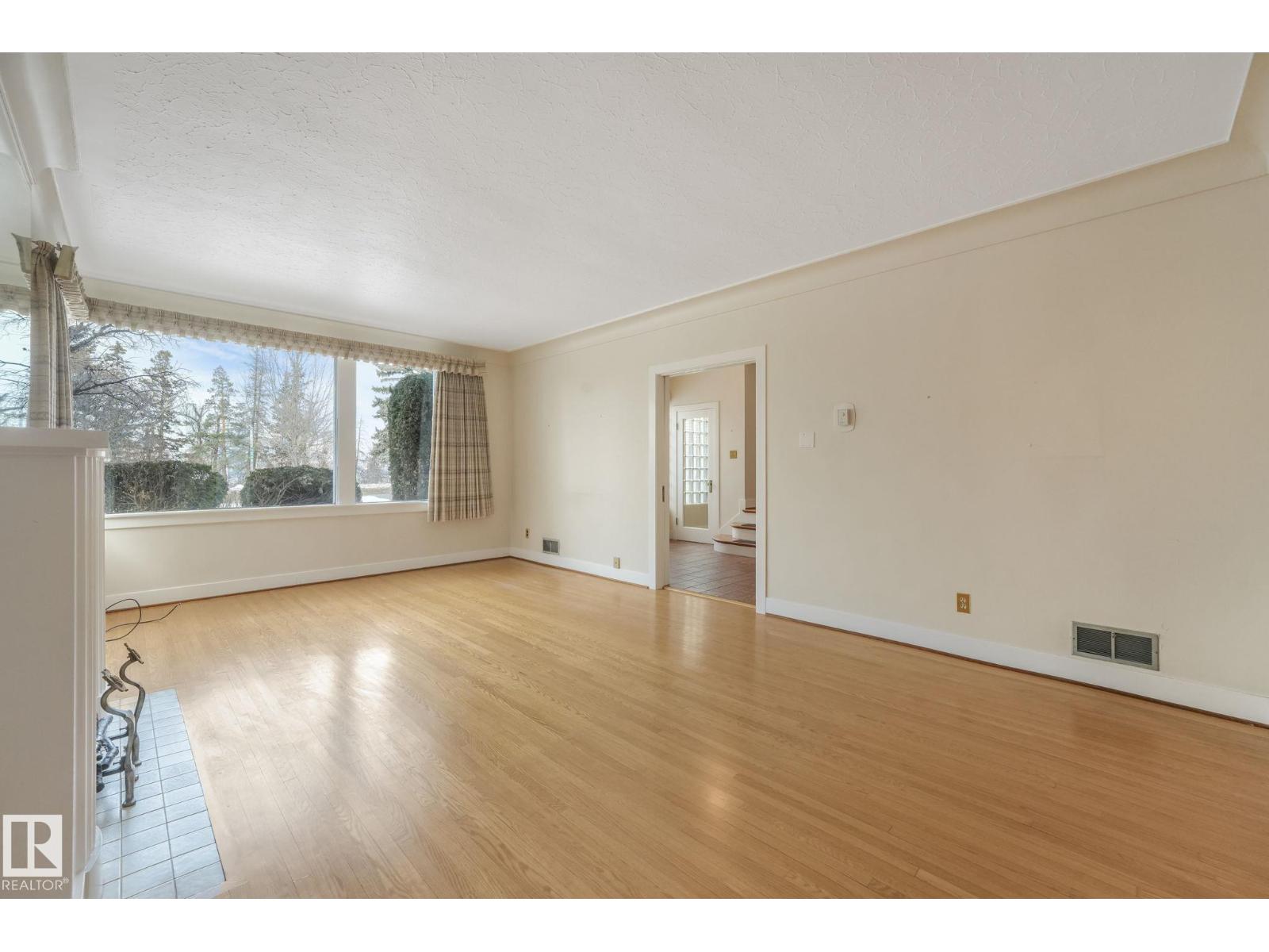 This is the dream building site that you have been waiting for! This 33 X 200 ft lot is facing North on Saskatchewan Drive with an unparalleled view of the river valley & Downtown! Enjoy the changing lights of High Level & Walterdale Bridges & have a front row seat for Canada Day Fireworks! This original Family owned 1824 Ft2 Two Story was built in 1945. Super Solid and features include 4 large bdrms upstairs with great closet space for era plus 3 pce bath and Hardwood floors! Elegant Hardwood staircase greets you from front entry. Large formal Living and dining rms with original hardwood flooring. Kitchen is spacious with European white cabinets & lge windows overlooking back yard. Sliding door to bright 3 season sunroom to enjoy south sun! Bsmt is undeveloped with large windows and updated furnace and HW tank. Large south facing back yard with 20 X 20 dble garage with opener. Walk to Whyte Ave & U of A! Often voted Edmontons favorite and most walkable neighbourhood Old Strathcona is the place to be! (33782401)
