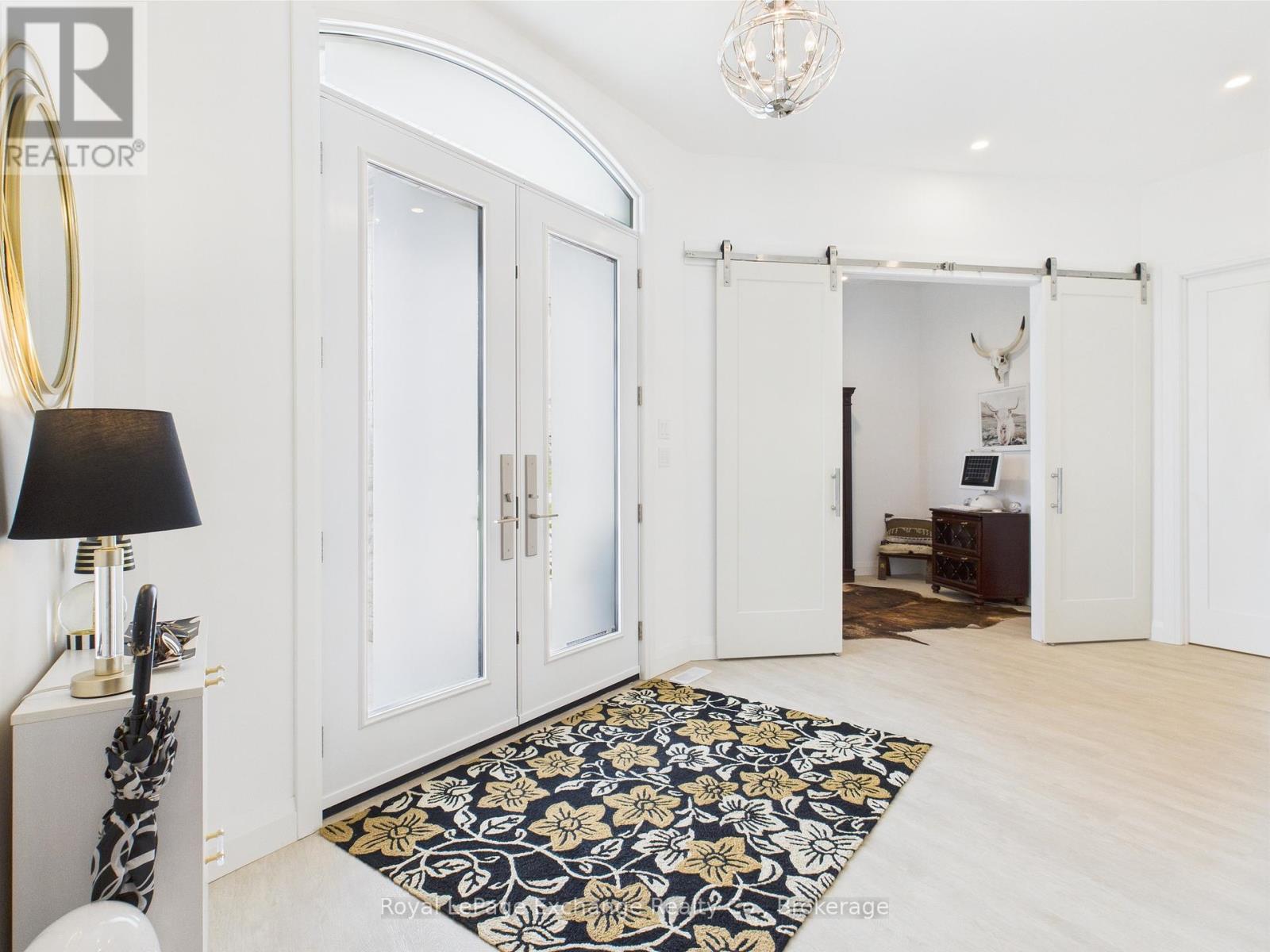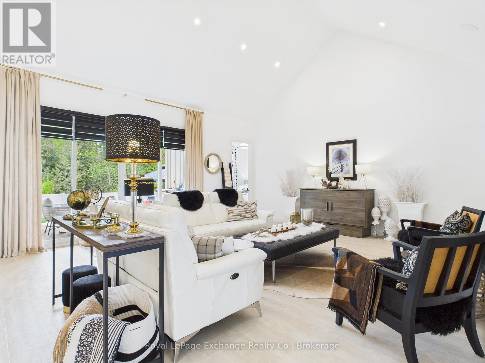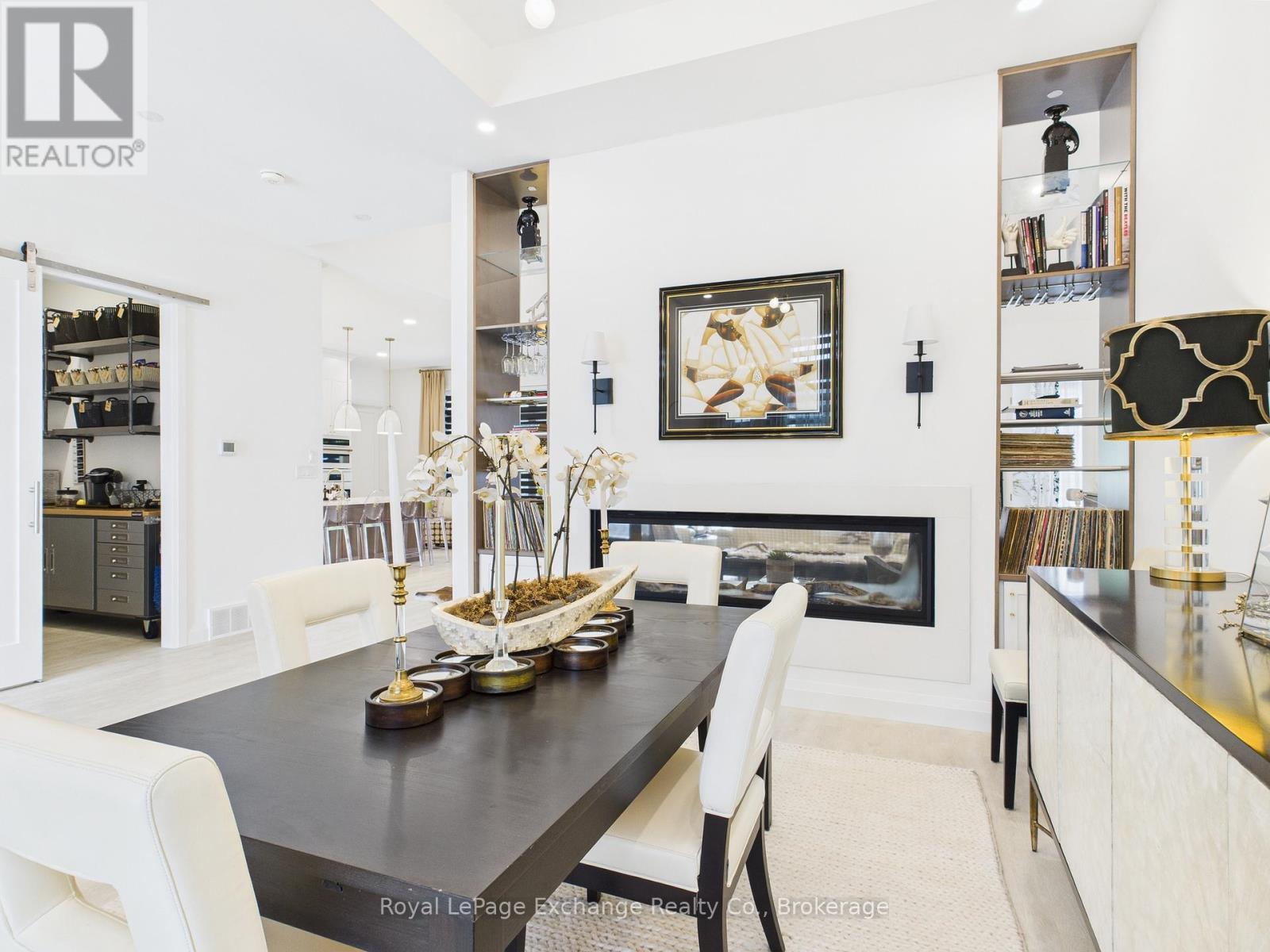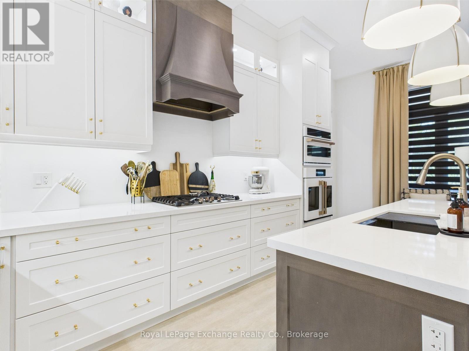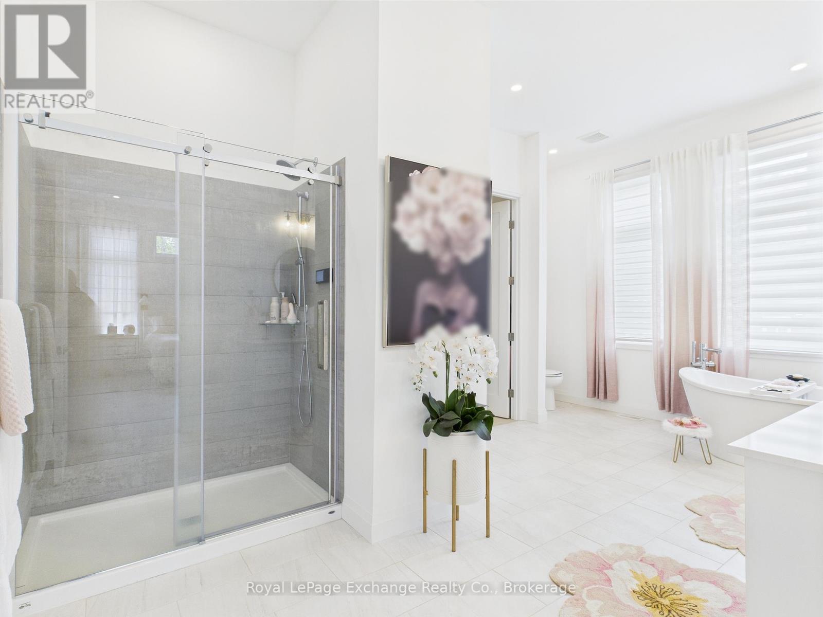 Experience luxury, comfort, and modern design in this executive bungalow just a short walk from the shores of Lake Huron in Point Clark. Exceptional curb appeal highlights the stone and brick façade, welcoming covered porch with extra-height front door, and triple-car garage complete with EV charger.Inside, the grand foyer opens to soaring 10' ceilings, an open-concept layout filled with natural light, and stylish LVP flooring. The dining room features a tray ceiling and dual-sided fireplace shared with the great room, which offers a cathedral ceiling, ceiling speakers, patio doors, and included 80" LG TV. The chef-inspired kitchen boasts extended-height cabinetry, quartz countertops, a large island, Café appliances, and a walk-in pantry.The primary suite is a private retreat with a spa-like ensuite and spacious walk-in closet. Two additional bedrooms each feature walk-in closets and private ensuites. Step outside to a fenced backyard oasis with covered porch, ceiling speakers, lounge areas, and a swim spa. Smart home features complete this exceptional property near the lake. (42057077)