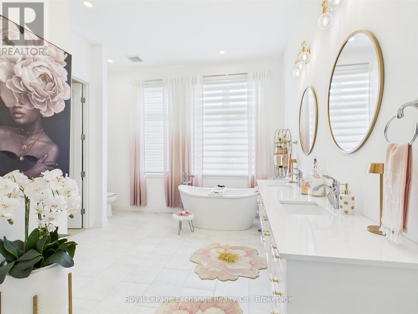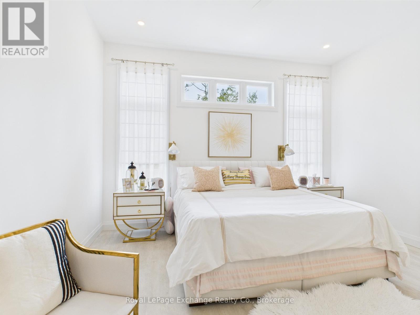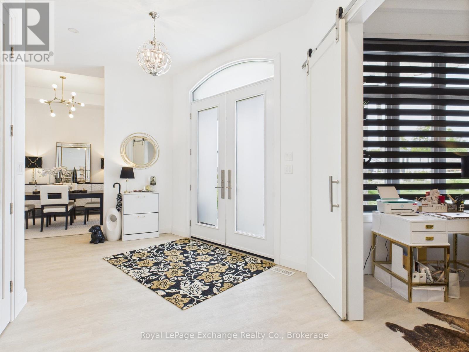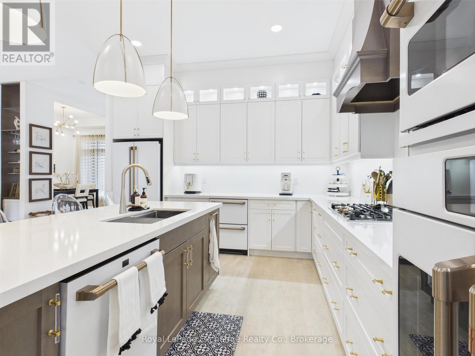 Experience luxury, comfort, and modern design in this executive bungalow just a short walk from the shores of Lake Huron in Point Clark. Exceptional curb appeal highlights the stone and brick façade, welcoming covered porch with extra-height front door, and triple-car garage complete with EV charger.Inside, the grand foyer opens to soaring 10' ceilings, an open-concept layout filled with natural light, and stylish LVP flooring. The dining room features a tray ceiling and dual-sided fireplace shared with the great room, which offers a cathedral ceiling, ceiling speakers, patio doors, and included 80" LG TV. The chef-inspired kitchen boasts extended-height cabinetry, quartz countertops, a large island, Café appliances, and a walk-in pantry.The primary suite is a private retreat with a spa-like ensuite and spacious walk-in closet. Two additional bedrooms each feature walk-in closets and private ensuites. Step outside to a fenced backyard oasis with covered porch, ceiling speakers, lounge areas, and a swim spa. Smart home features complete this exceptional property near the lake. (42057077)