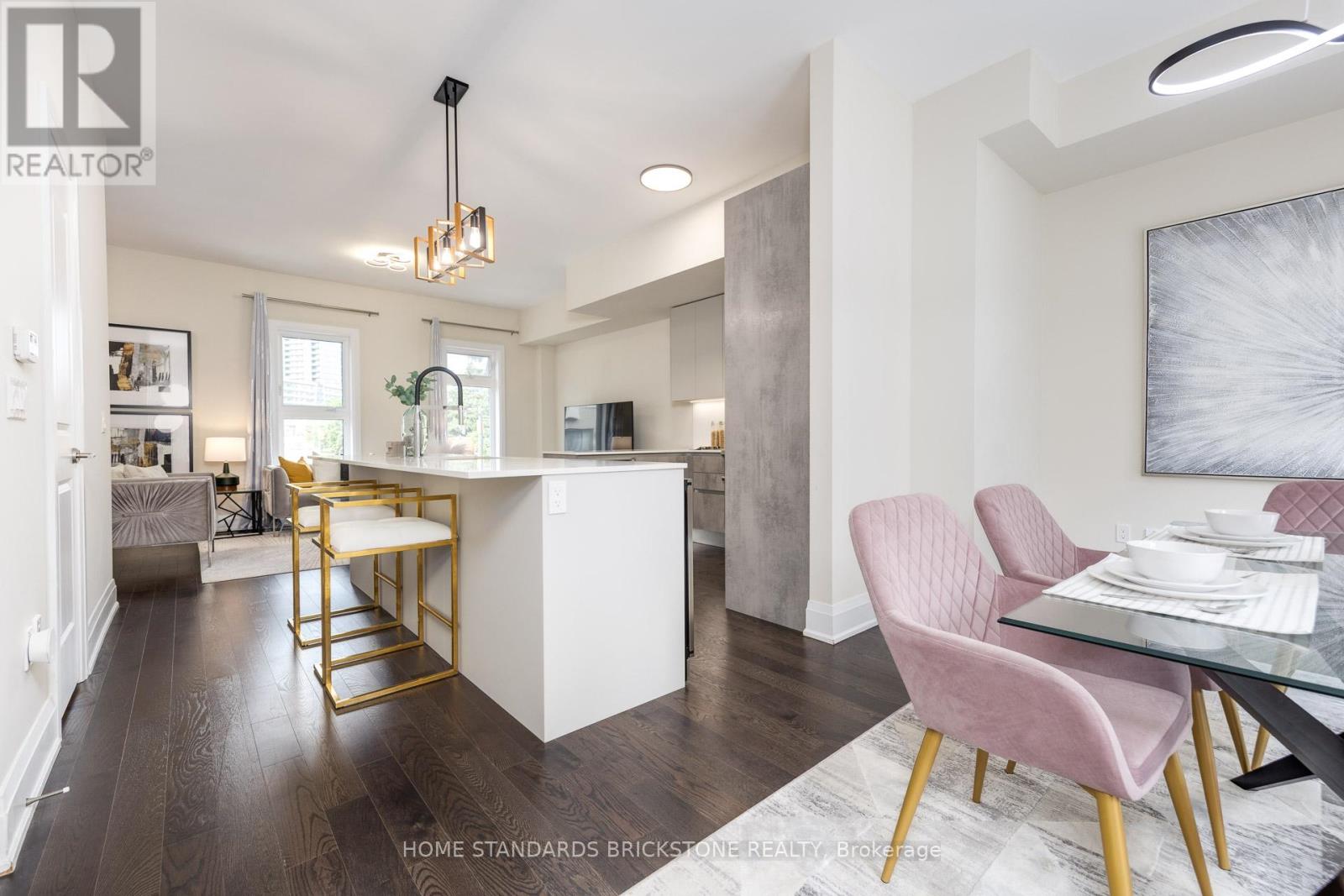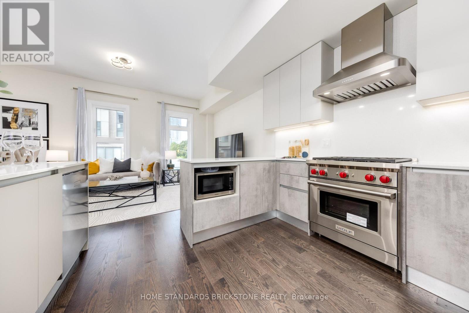 Welcome to this extraordinary luxury townhome offering nearly 3,000 sq. ft. of meticulously designed living space, crafted by the renowned Wycliffe Homes. This move-in ready residence showcases superior finishes, thoughtful upgrades, and a coveted location that blends convenience with elegance. Step inside to an impressive open-concept layout featuring a custom Scavolini kitchen with professional-grade stainless steel appliances, including a Wolf range, bar fridge, and premium fixtures. Sleek quartz countertops, designer cabinetry, and high-end plumbing details create a modern yet timeless cooking and entertaining experience. The spacious living room flows seamlessly into the dining area and eat-in kitchen, with direct walkout access to the backyard perfect for hosting family and friends. Soaring 10-ft ceilings on the main floor and 9-ft ceilings on the second and third levels add volume and light throughout. Hardwood flooring extends across the top levels with no carpet anywhere, ensuring a clean and sophisticated look. The luxurious primary suite offers a spa- inspired 5-piece ensuite and a generous walk-in closet, providing the ultimate retreat. A rare and valuable feature is the private residential elevator, offering effortless access from the third floor down to the finished basement. With an upgraded circuit board sourced from Chicago, this elevator offers unmatched convenience compared to others in the area. Additional highlights include a 2-car garage and a finished lower level, adding flexible living space for work, recreation. Ideally situated just steps from Promenade Mall, places of worship, parks, and the public library, with top-rated schools nearby, this exceptional home offers the perfect blend of lifestyle and location. (42057157)