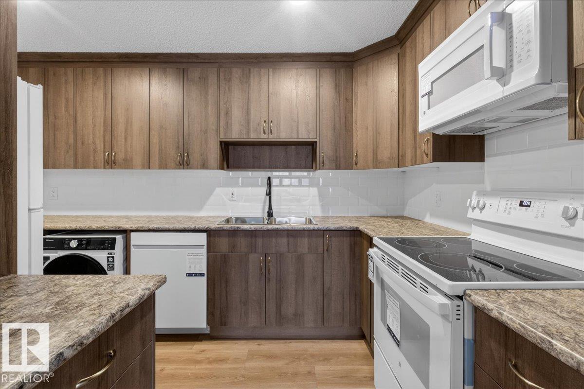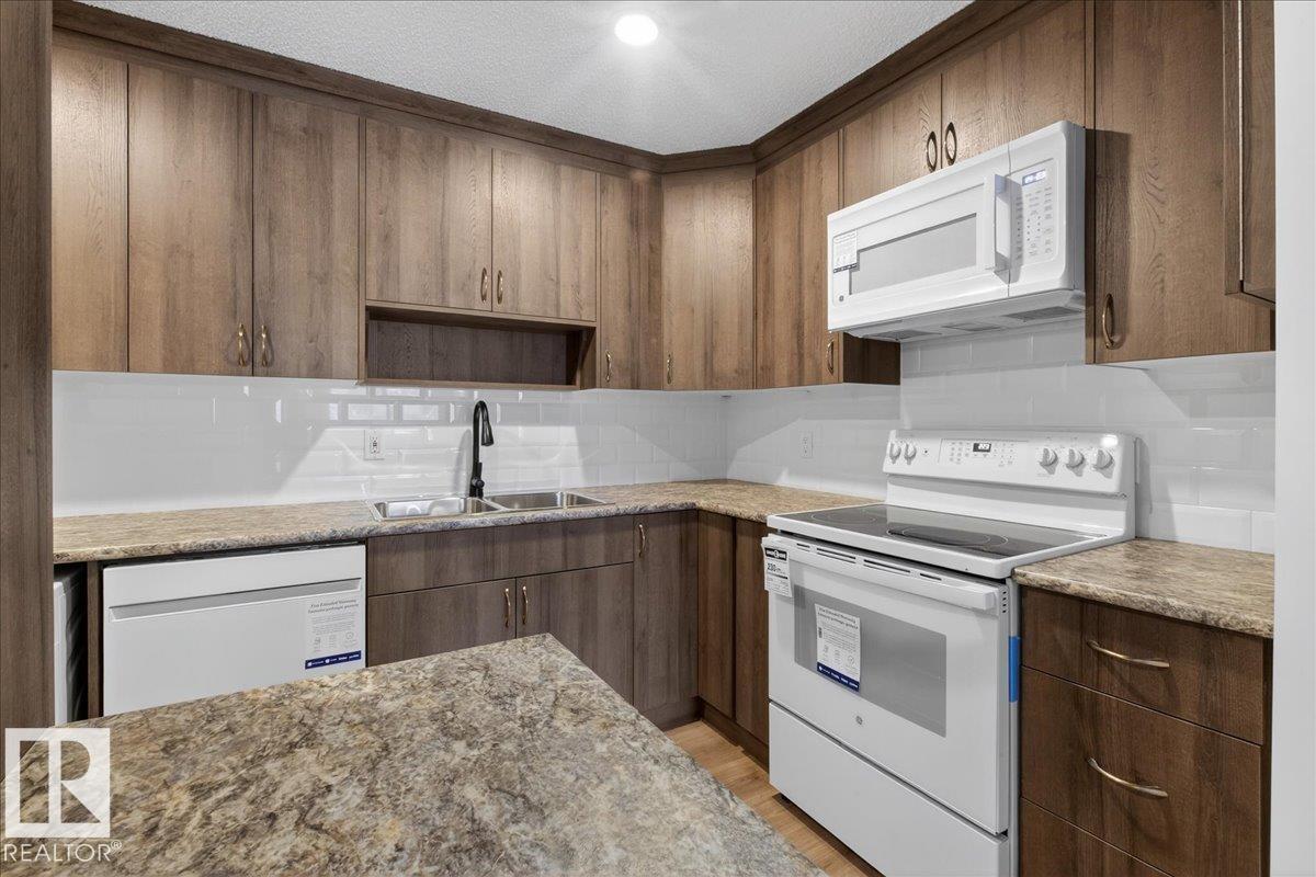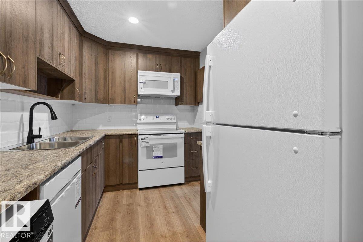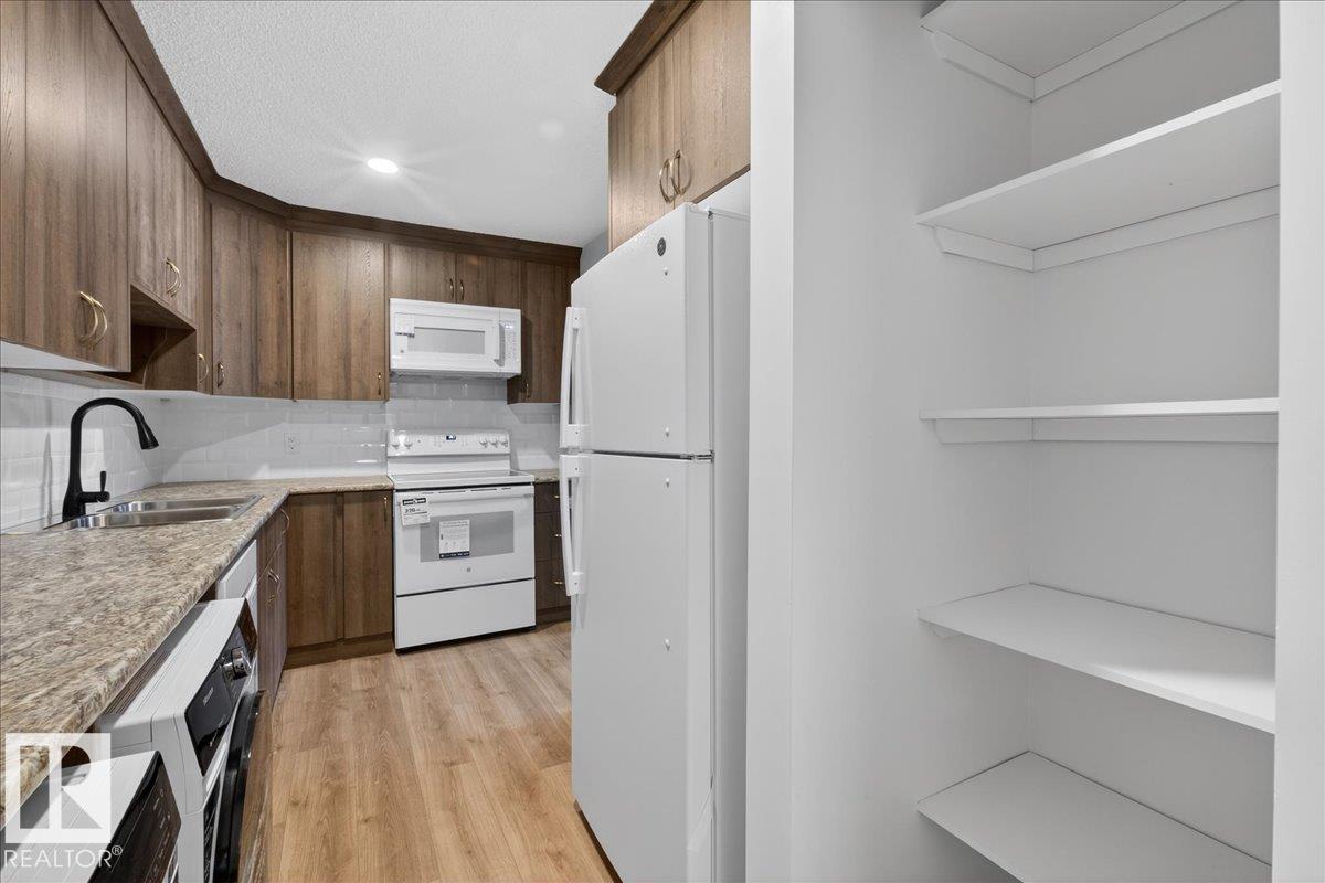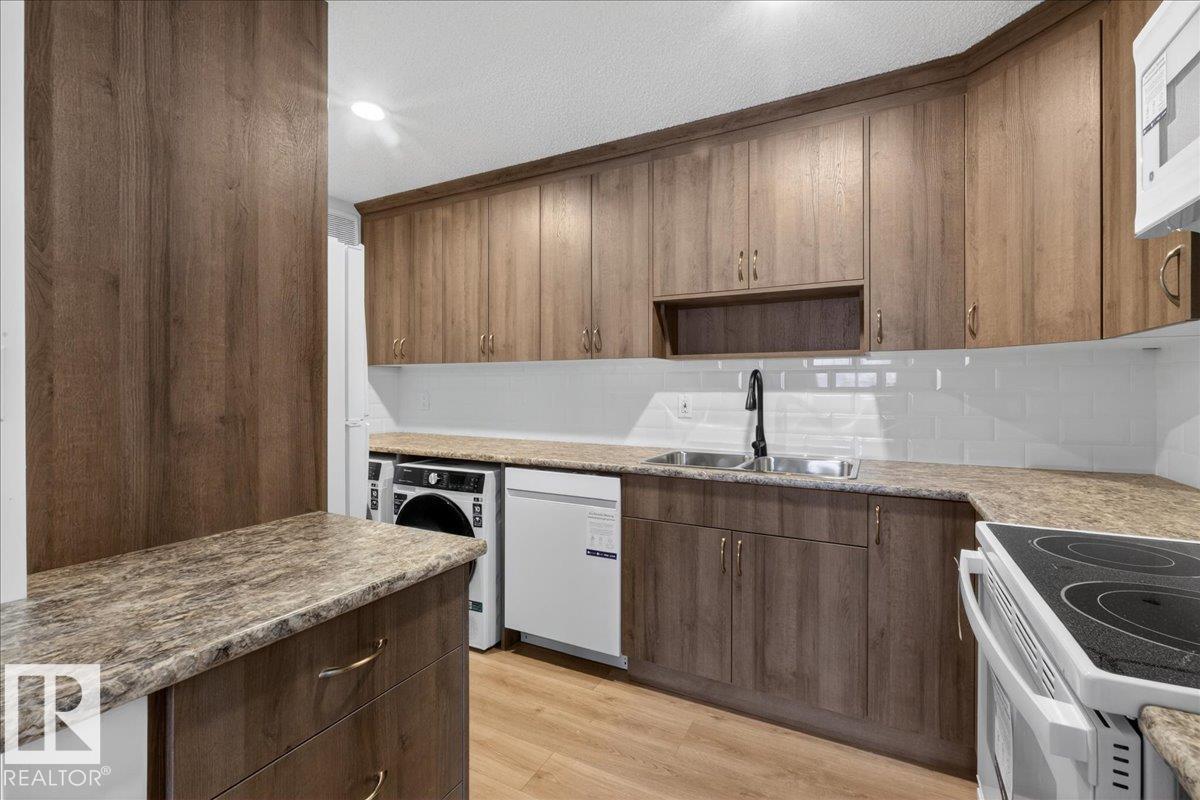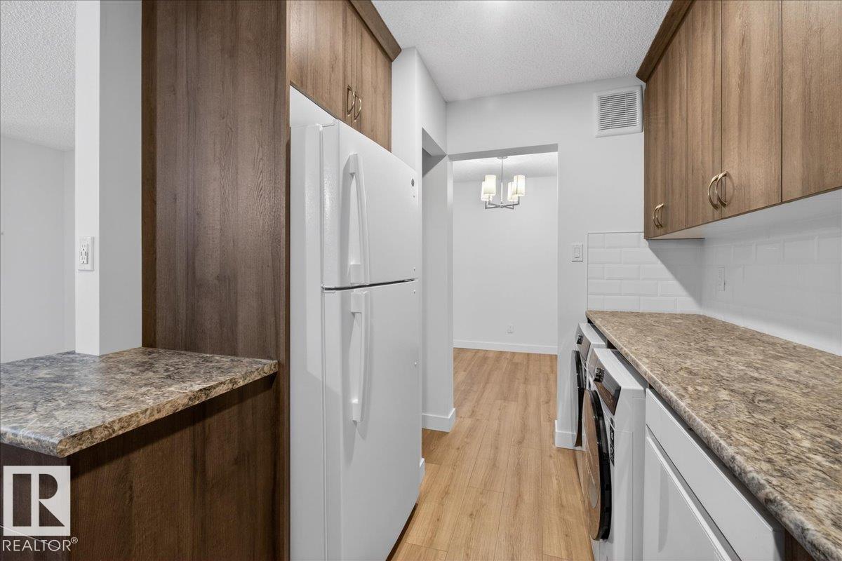 Welcome to this beautifully renovated 2 bed, 1 bath condo in the heart of St. Albert. Refreshed from top to bottom, this move-in-ready home features durable laminate flooring, fresh contemporary paint, and a bright, fully updated kitchen, complete with new cabinetry, sleek countertops, and brand-new appliances. The functional layout offers comfortable living and dining spaces, ideal for both relaxing and entertaining. Two generously sized bedrooms provide flexibility for guests, a home office, or growing households, while the updated bathroom offers a clean, modern finish. There is also plenty of storage space. One assigned above ground parking stall right outside the door with underground parking available. This main floor unit has its own exterior door, no stairs or hallways! All walking distance to shopping, restaurants, and public transit, this home delivers exceptional lifestyle convenience. This is an excellent opportunity to own a fully renovated condo in a sought-after St. Albert location. (33782556)
